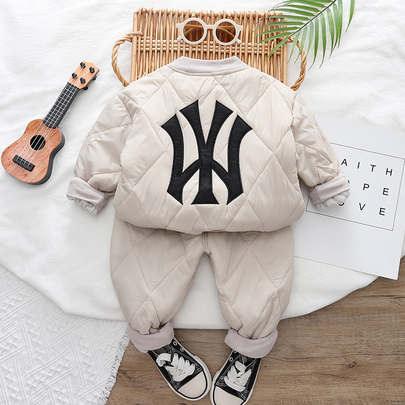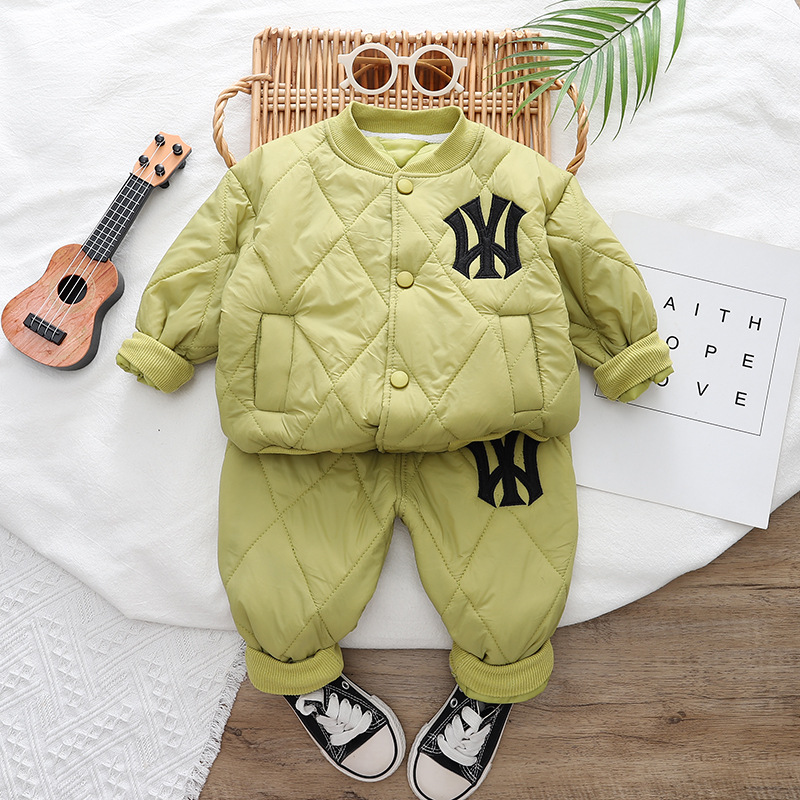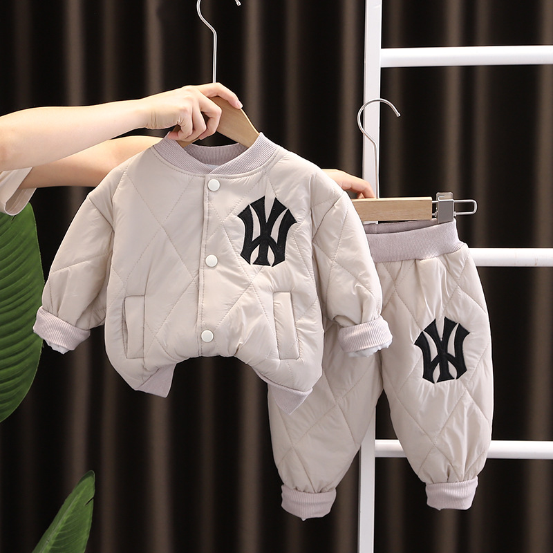 남학생의 가을과 겨울 면화 패딩 의류 세트 서양식 한국 스타일의 아기 겨울 의류 경량 면화 패딩 의류 투피스 세트 아기 아동복 패션