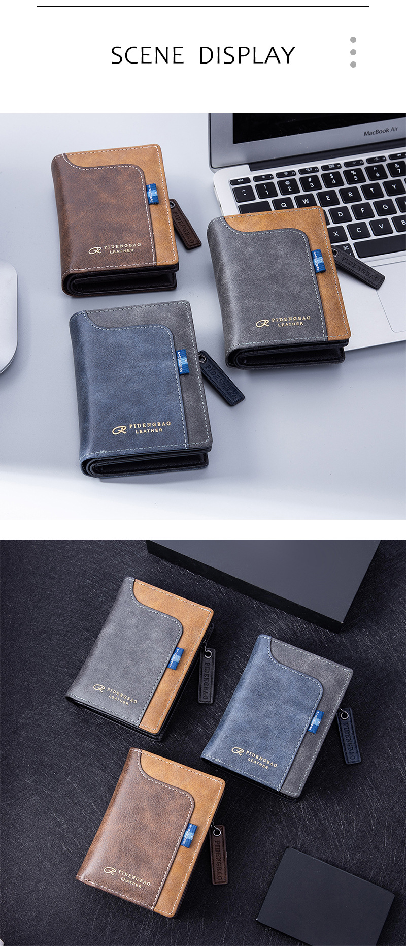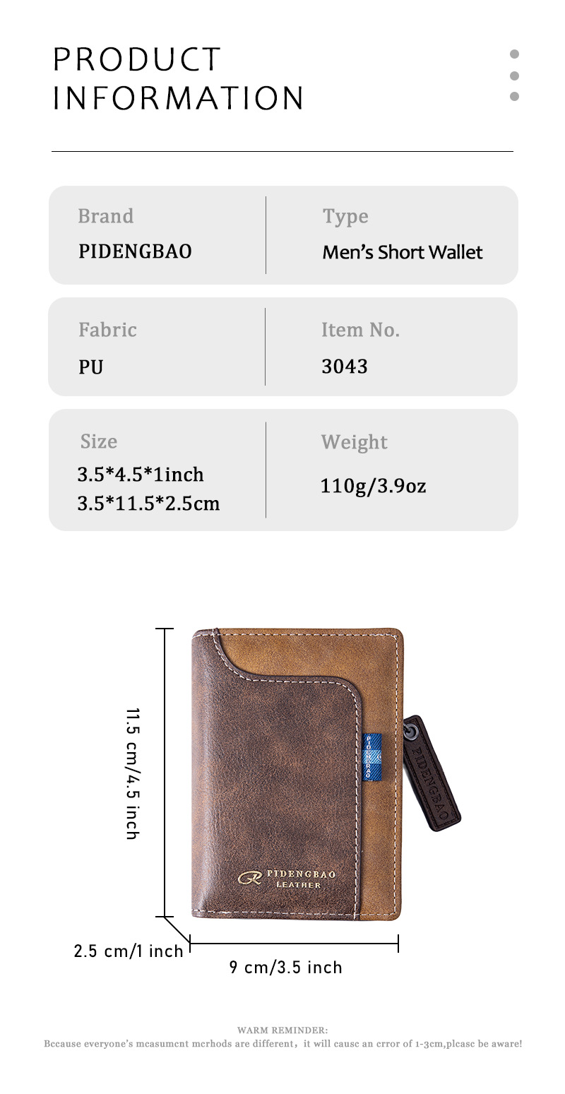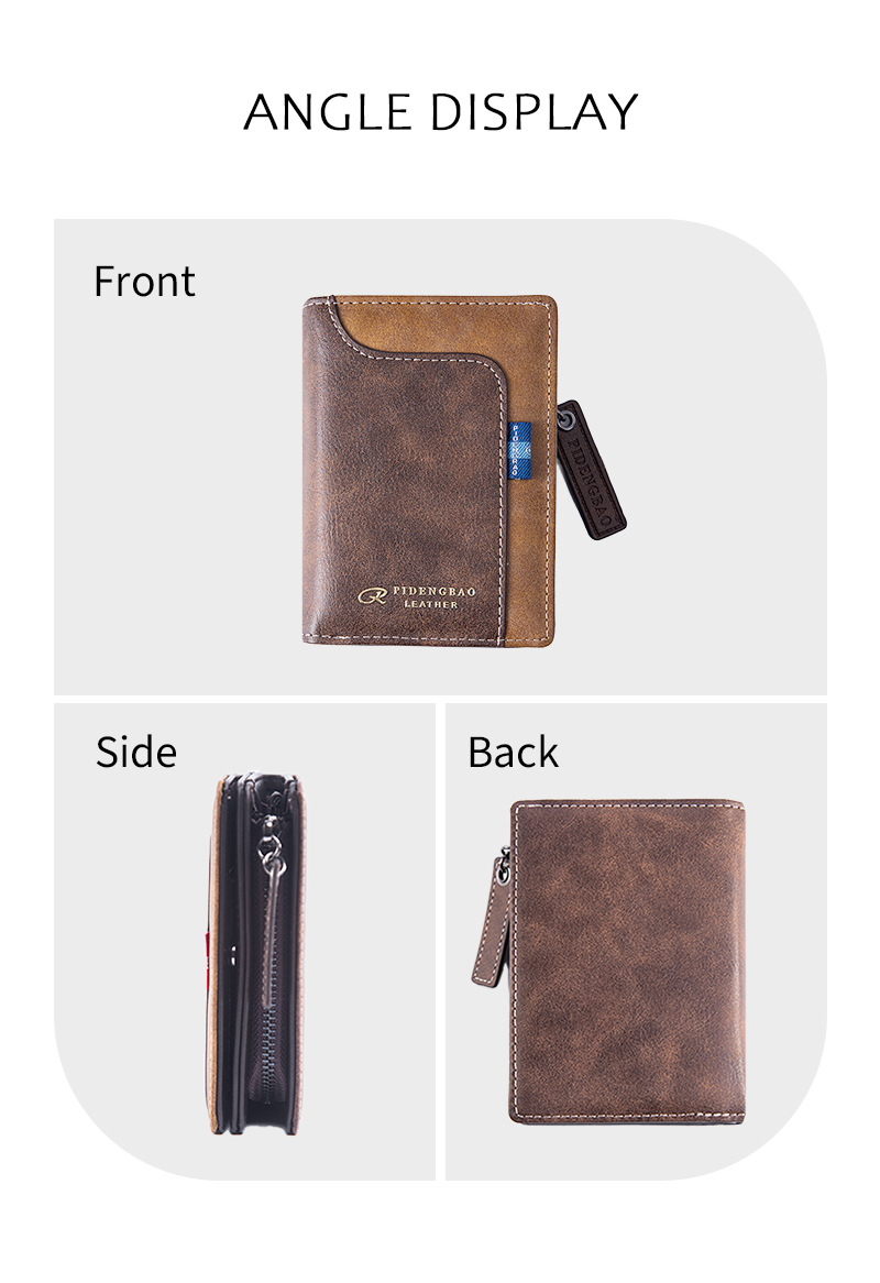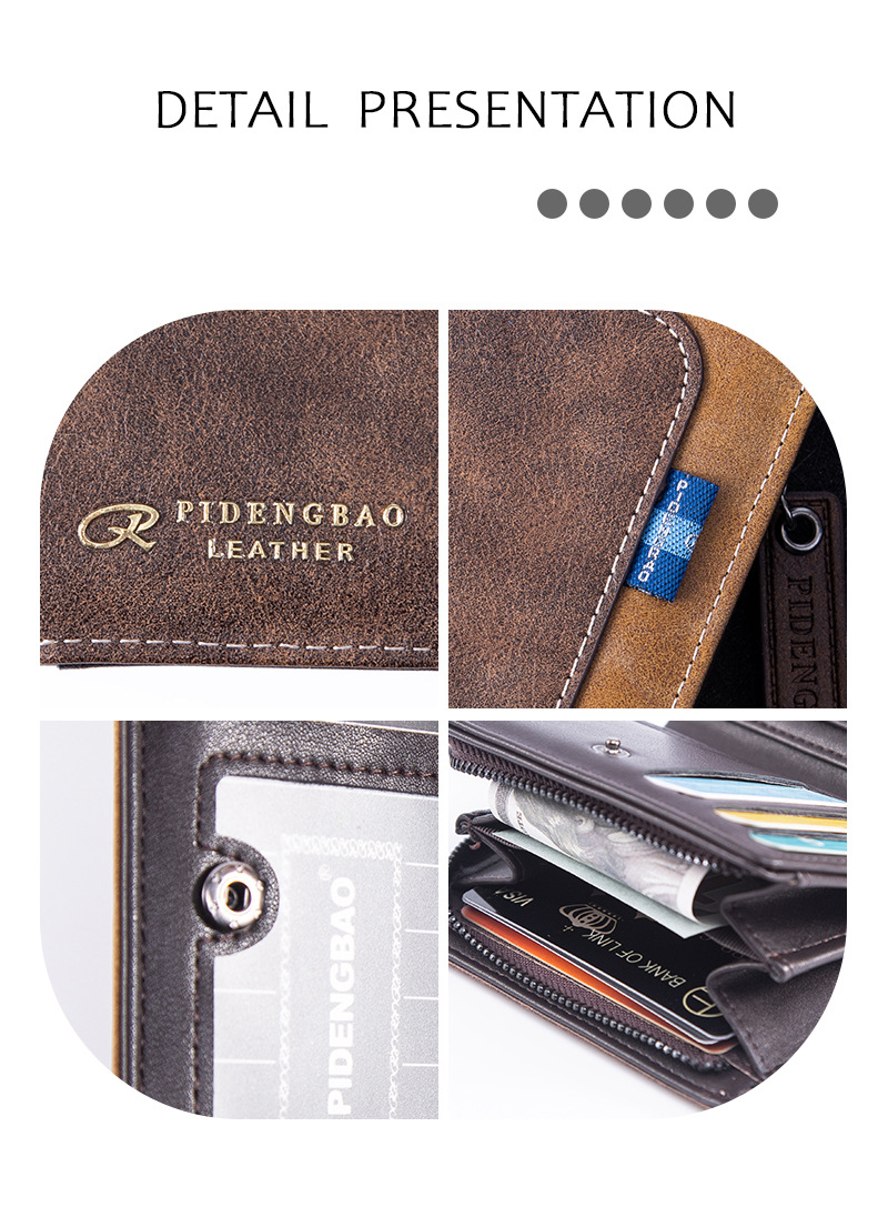 세로형 남성용 지갑, 다기능 대용량 지퍼형 현금 및 카드 일체형 가방, 유럽 및 미국 해외 무역 PU 가죽 지갑스토어 가기