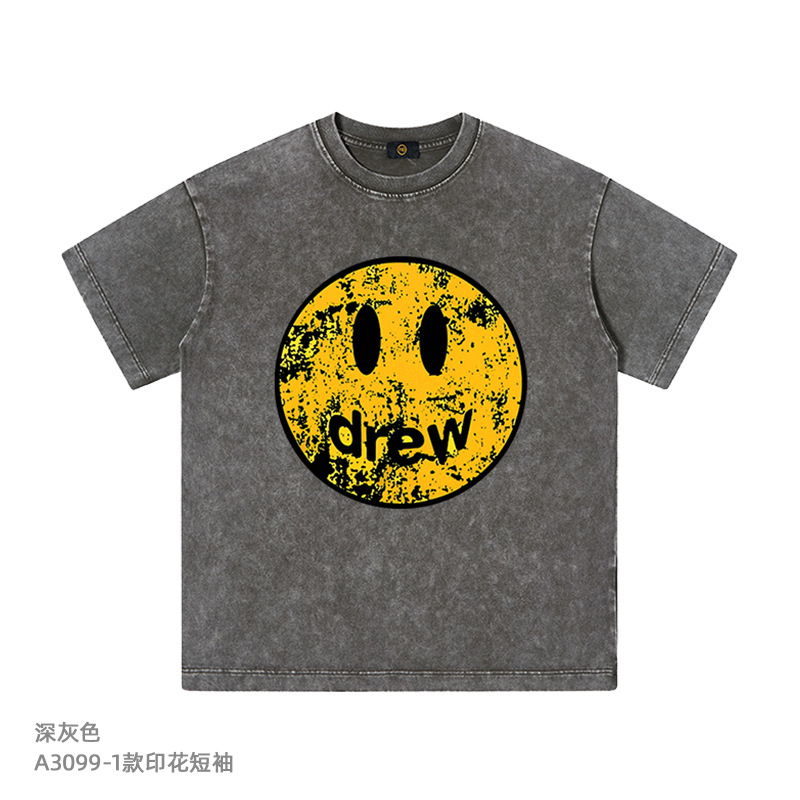 TILANI 아동복 유럽 및 미국 패션 브랜드 250G 오래 된 레트로 스마일리 그래피티 어린이 반팔 T 보이즈 재킷