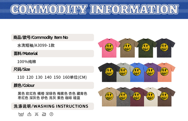 TILANI 아동복 유럽 및 미국 패션 브랜드 250G 오래 된 레트로 스마일리 그래피티 어린이 반팔 T 보이즈 재킷스토어 가기