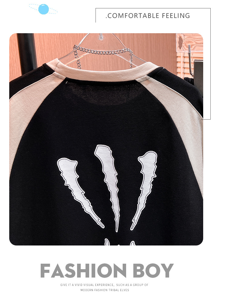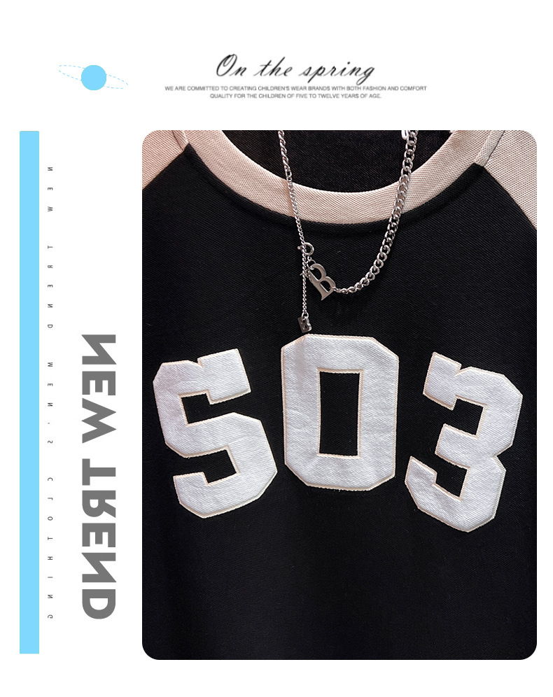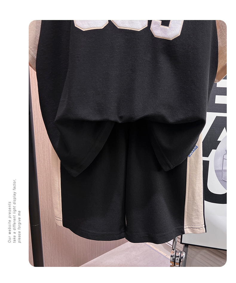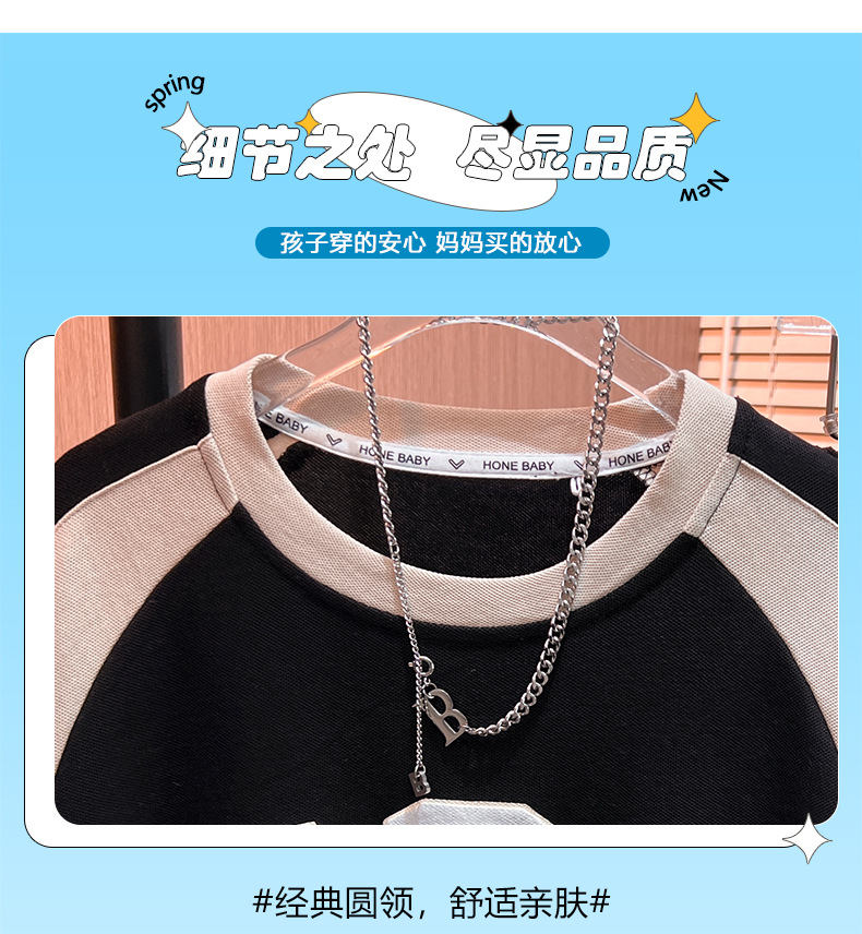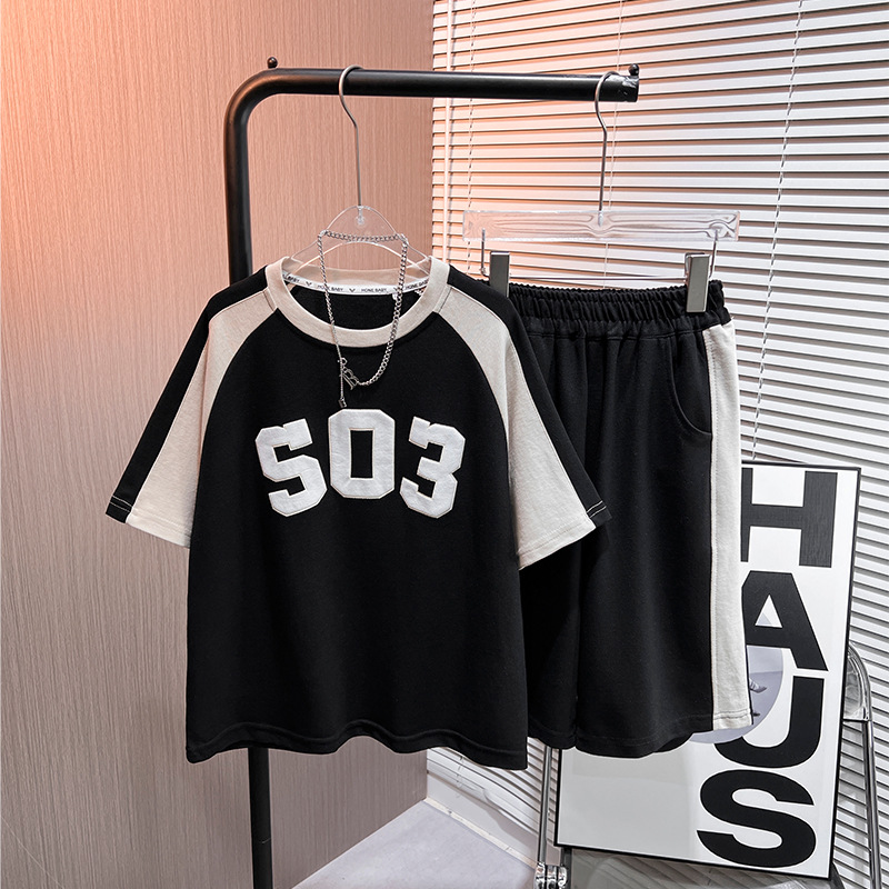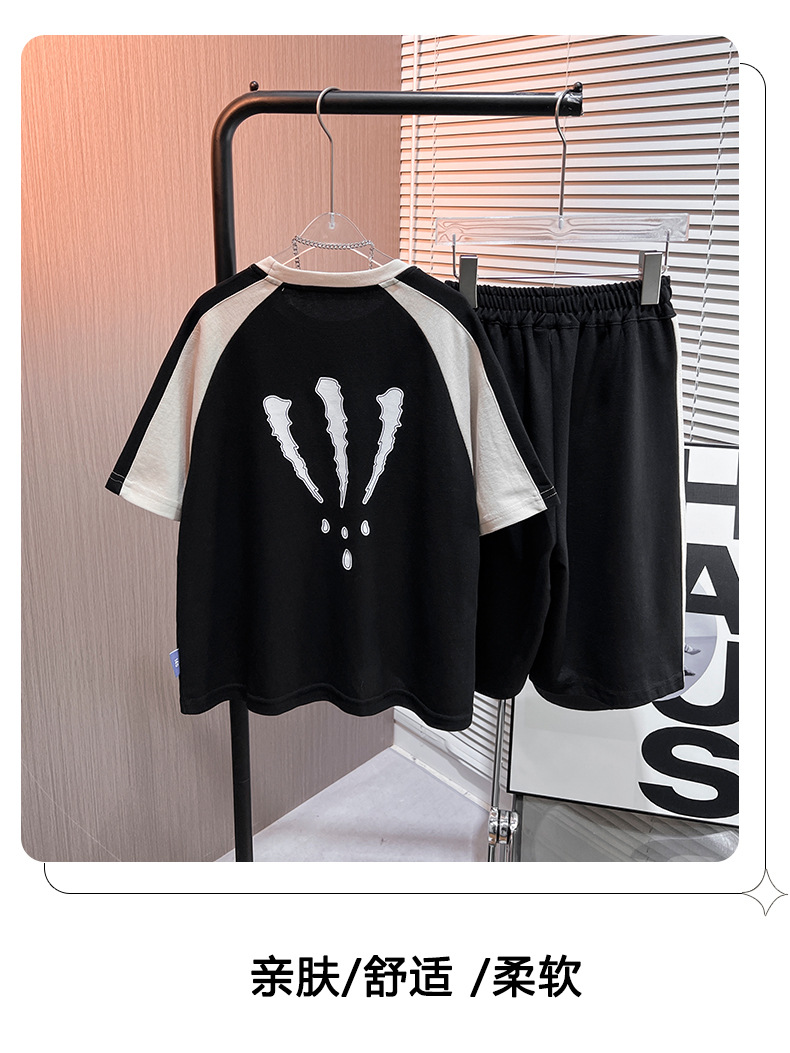 아동복 여름 신상 2026 캐주얼 스포츠 반팔 세트, 중대형 아동용 트렌디한 컬러 블록 라운드넥 티셔츠 투피스 세트스토어 가기