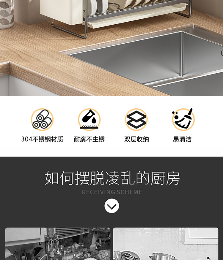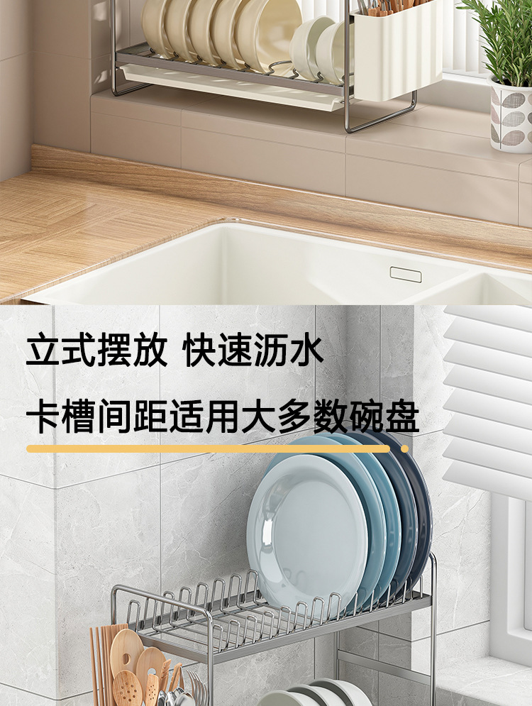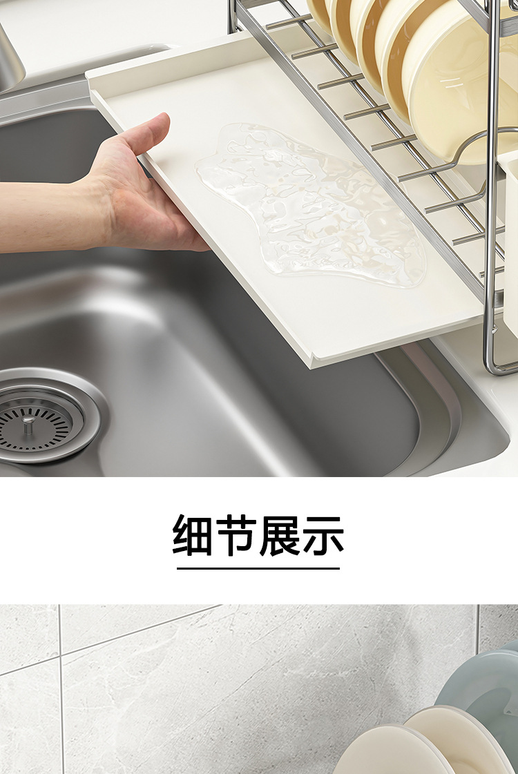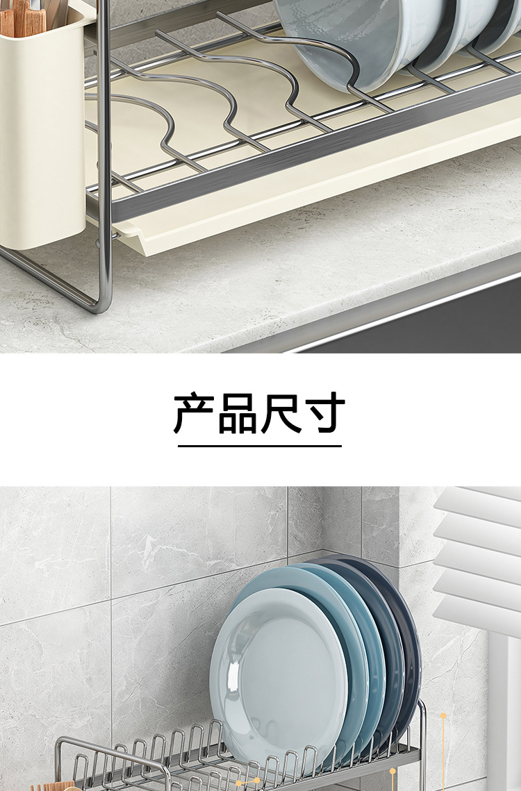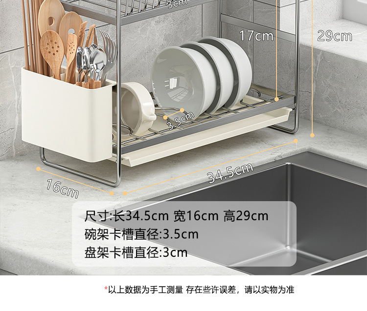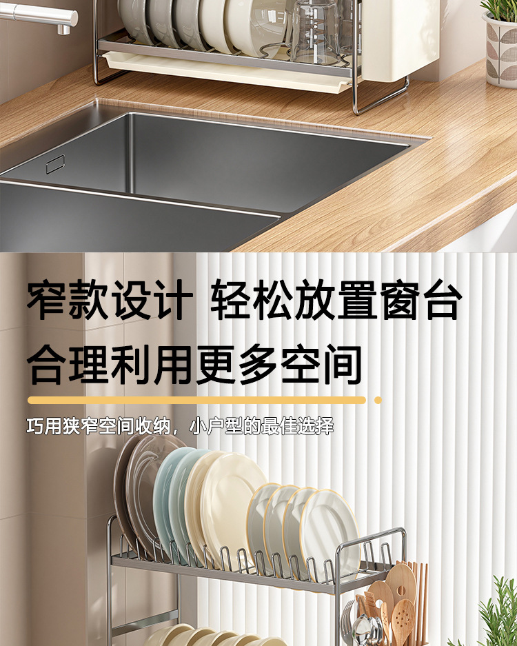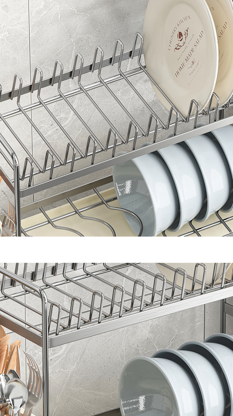 스테인레스 스틸 접시 보관 랙 더블 레이어 주방 싱크 사이드 창 캐비닛 접시 보관 랙 다기능 배수 랙