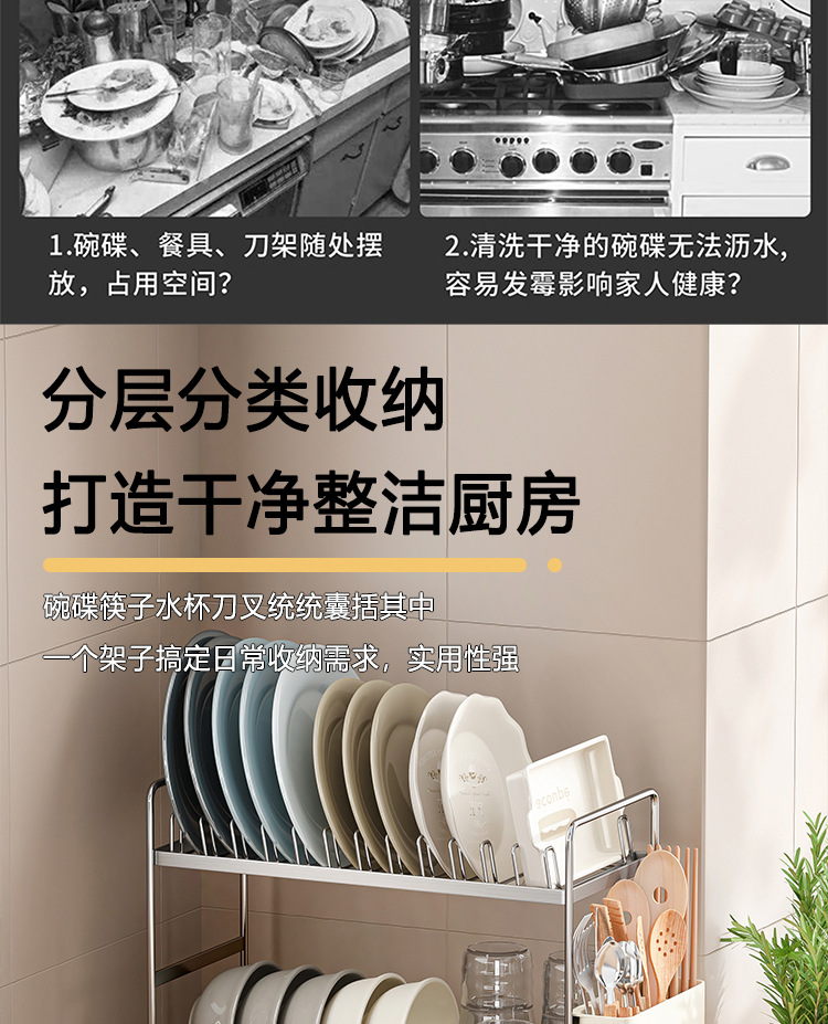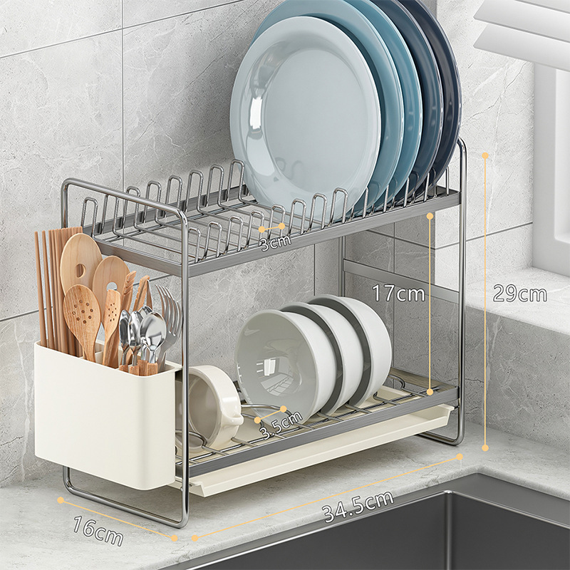 • 젓가락 케이지와 스테인레스 스틸 더블 레이어 접시 랙