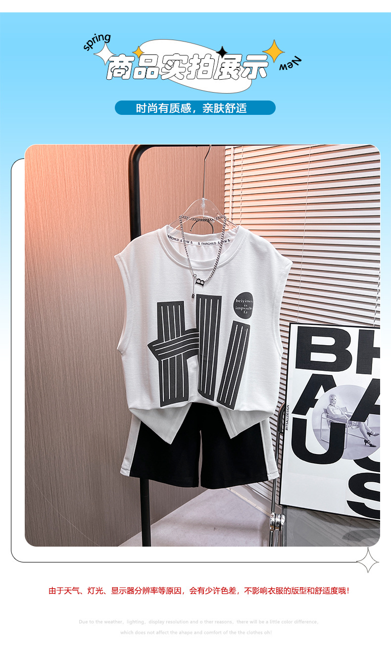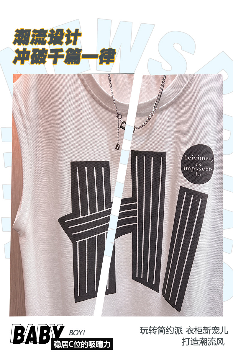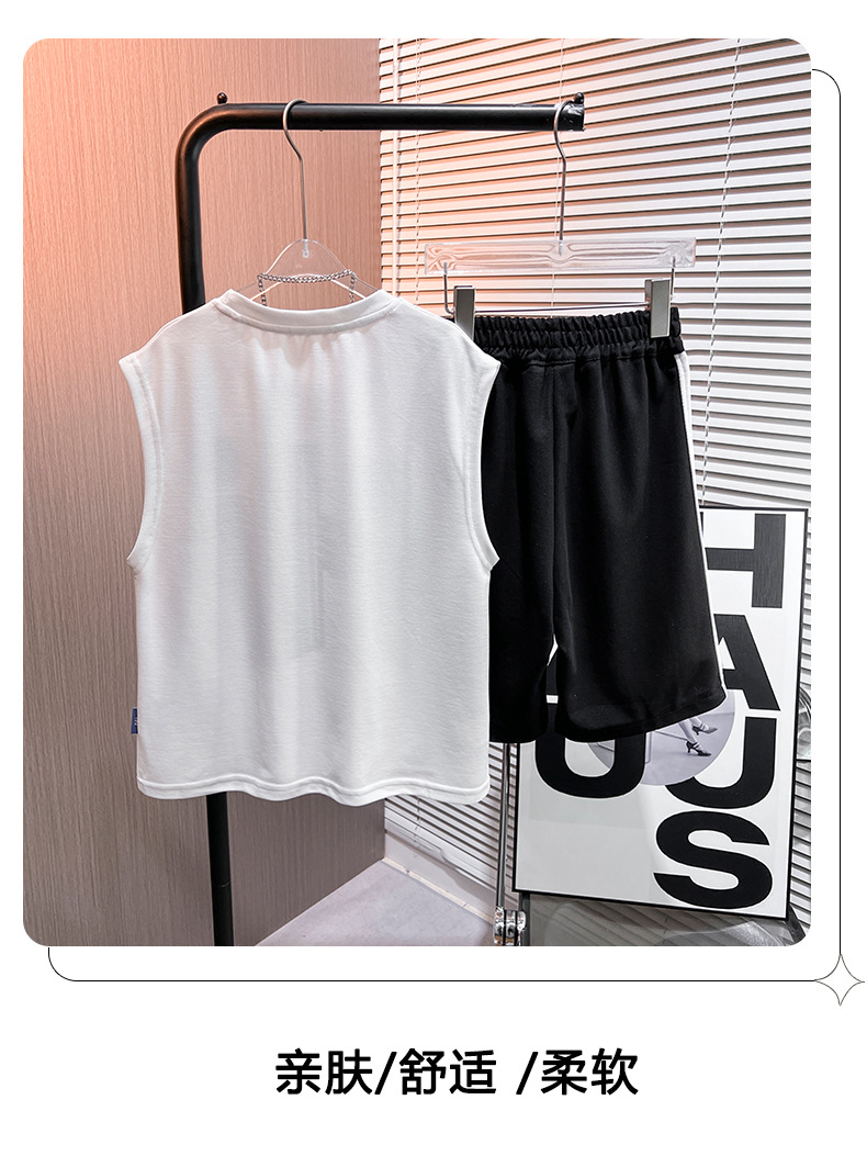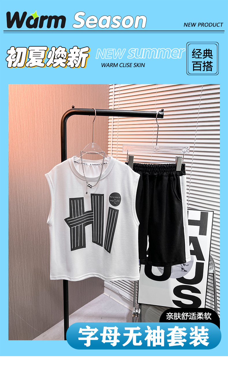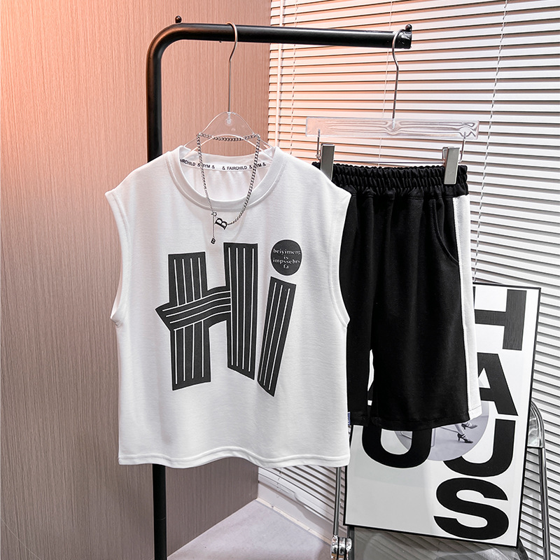 남아 여름 신상 2025 캐주얼 스포츠 민소매 세트 트렌디한 남아용 레터 프린트 풀오버 조끼 세트스토어 가기
