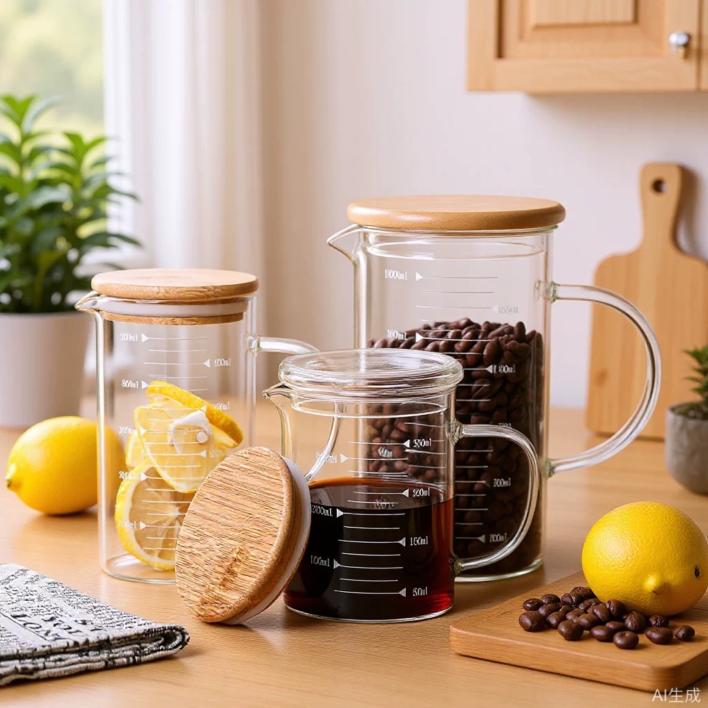 저온 내성 유리 측정 컵 스케일 주방 용품 대용량 물 컵 뚜껑과 손잡이 붕규산염 측정 컵스토어 가기