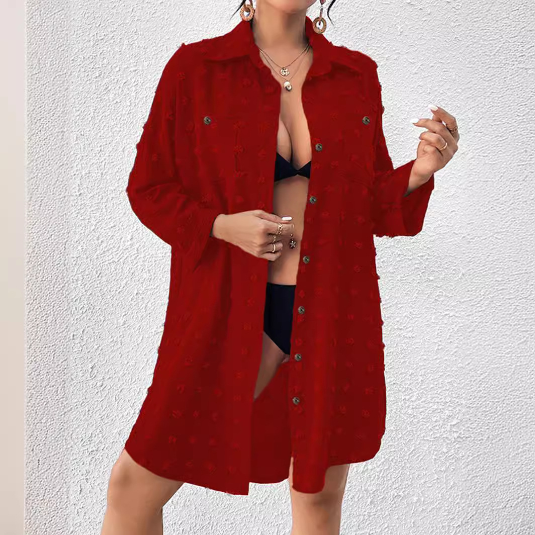 2024 아마존 독립 방송국 유럽과 미국의 새로운 쉬폰 자카드 큰 모피 공 느슨한 캐주얼 카디건 셔츠 여성 의류