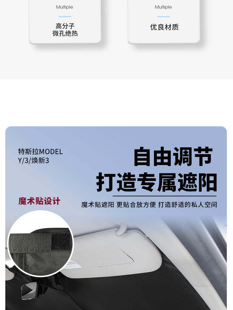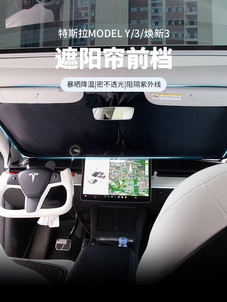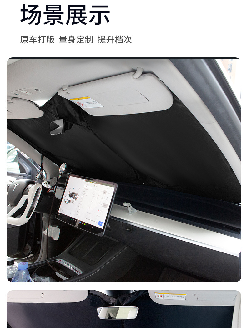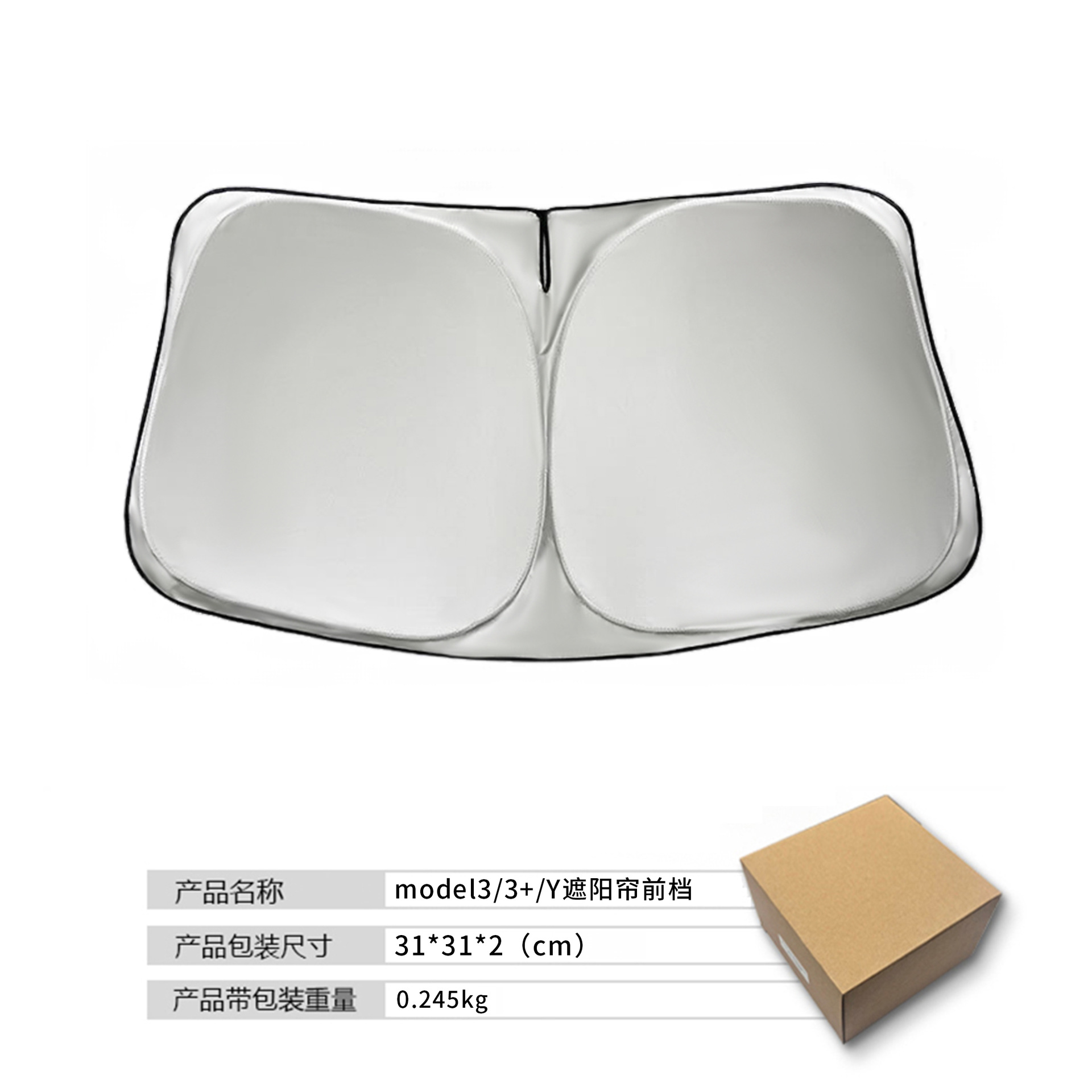 테슬라 신형 모델Y3용 전면 선쉐이드, 은색 자외선 차단 코팅된 천으로 제작된 전면 선쉐이드