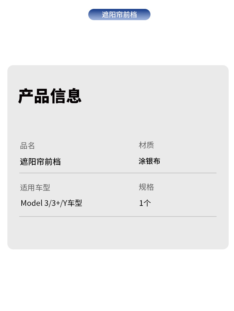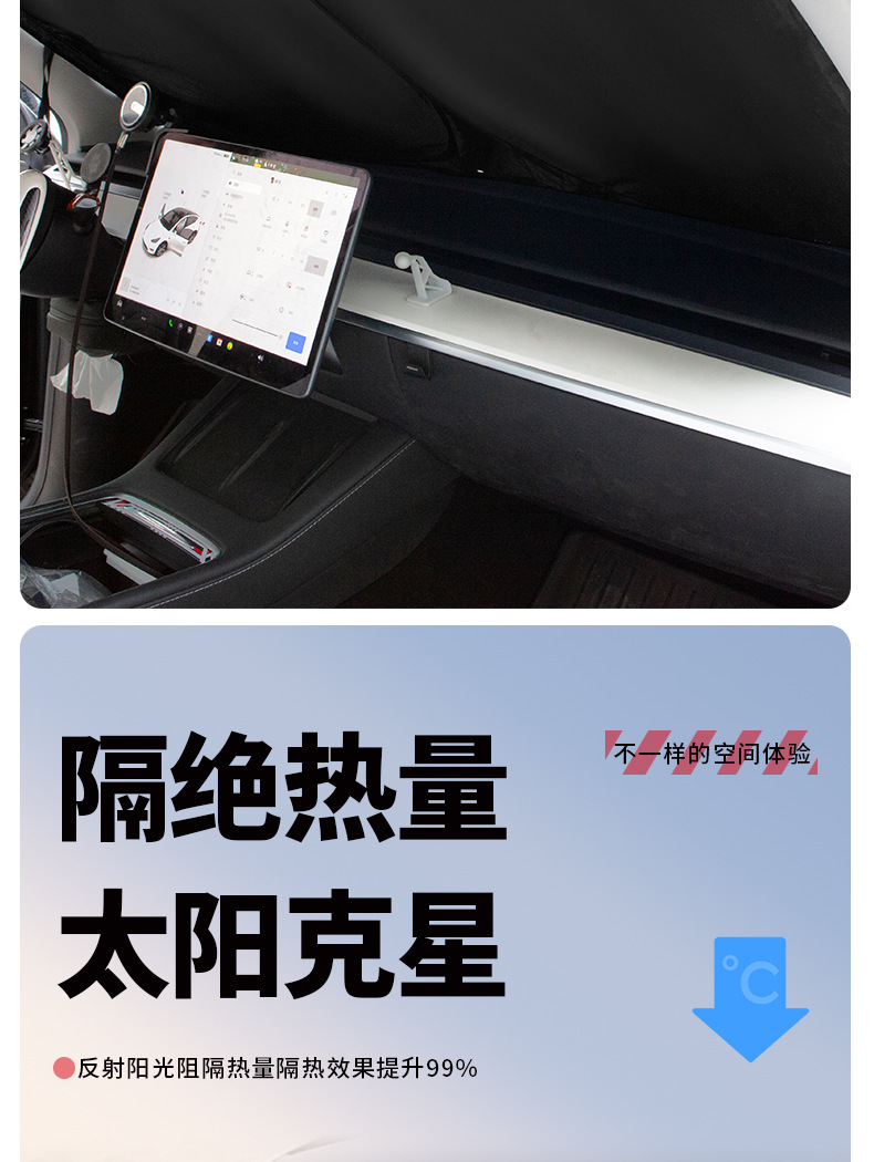 테슬라 신형 모델Y3용 전면 선쉐이드, 은색 자외선 차단 코팅된 천으로 제작된 전면 선쉐이드스토어 가기