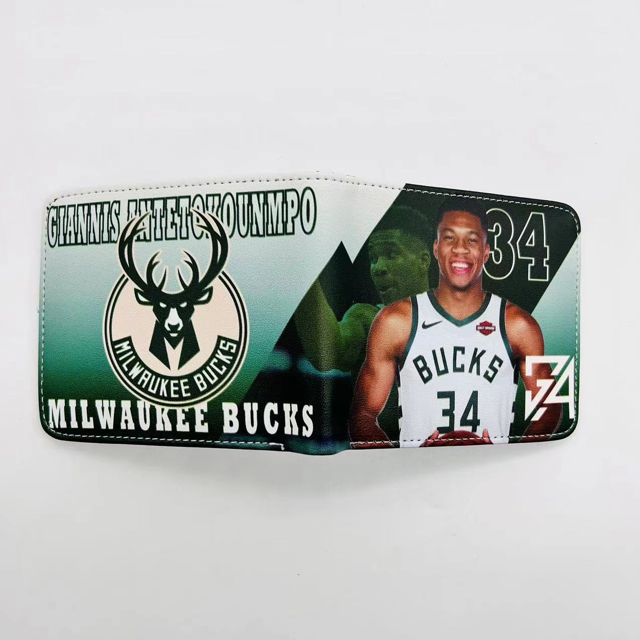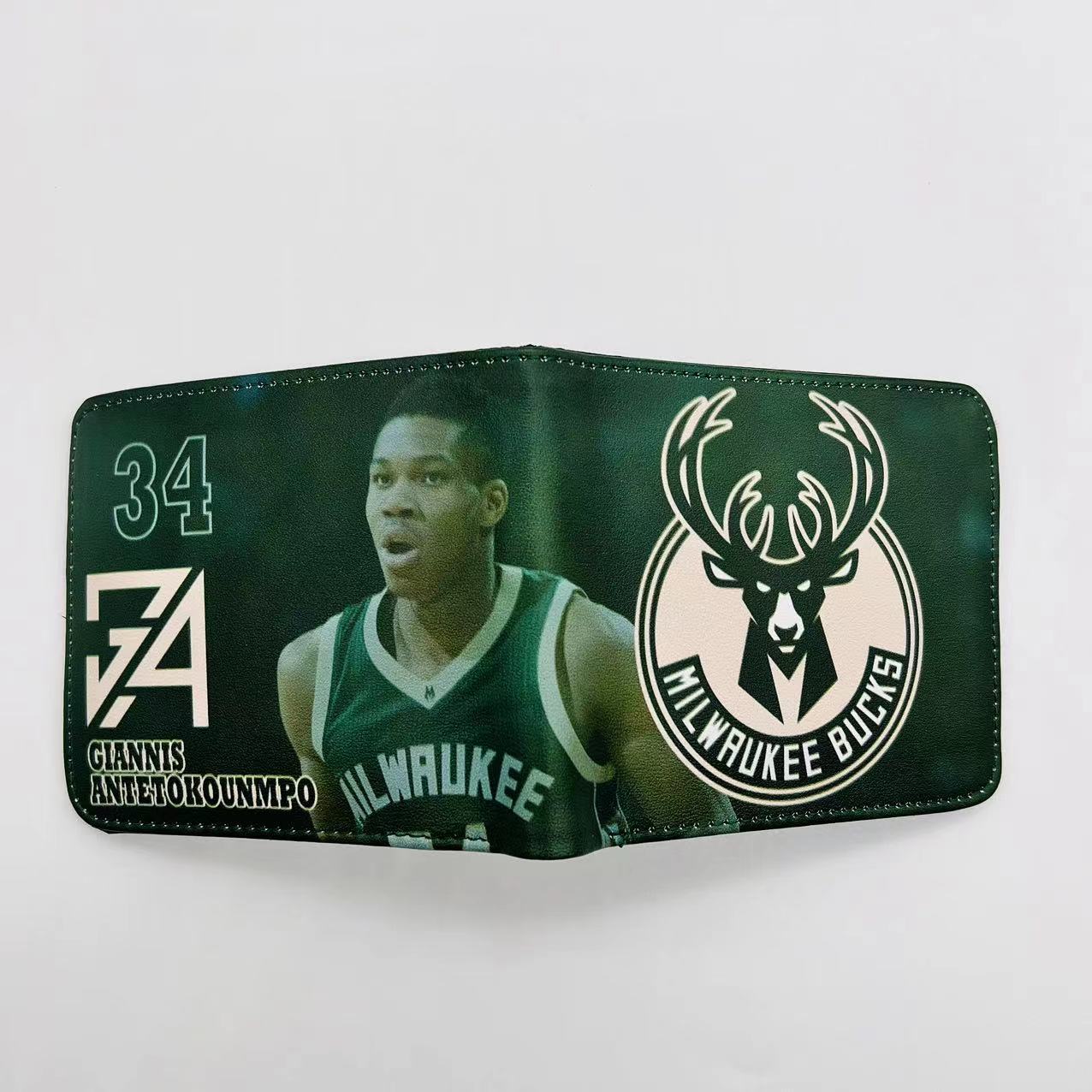 국제 농구 스타 팀 로고 주변 접이식 지갑 풀 컬러 인쇄 짧은 동전 지갑 PU 가죽 지갑스토어 가기