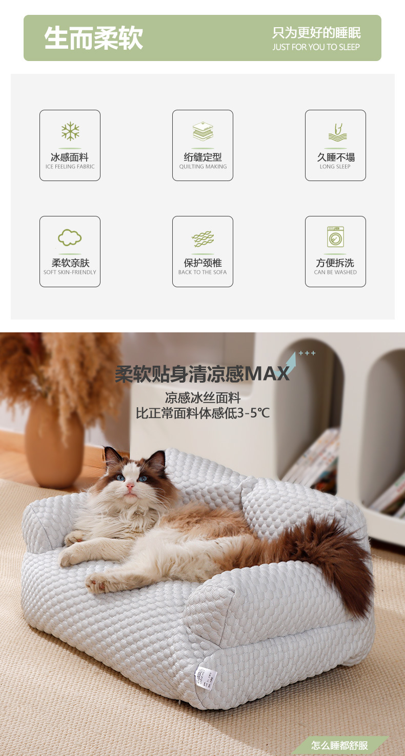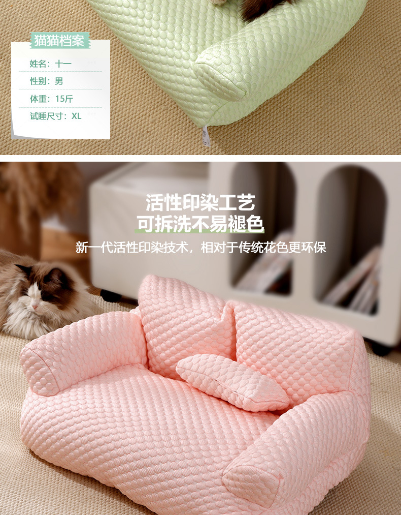 애완 동물 소파 도매 사계절 유니버설 탈착식 및 빨 수있는 고양이 침대 개집 방수 통기성 아이스 실크 애완 동물 용품 고양이 둥지스토어 가기