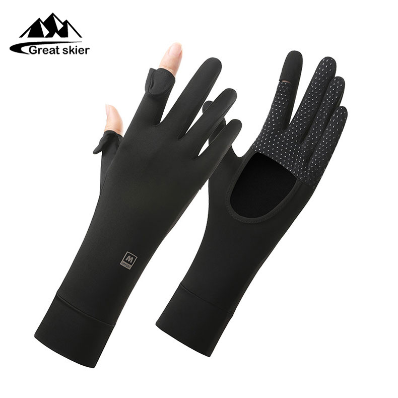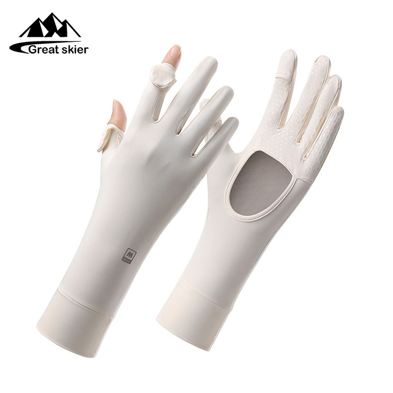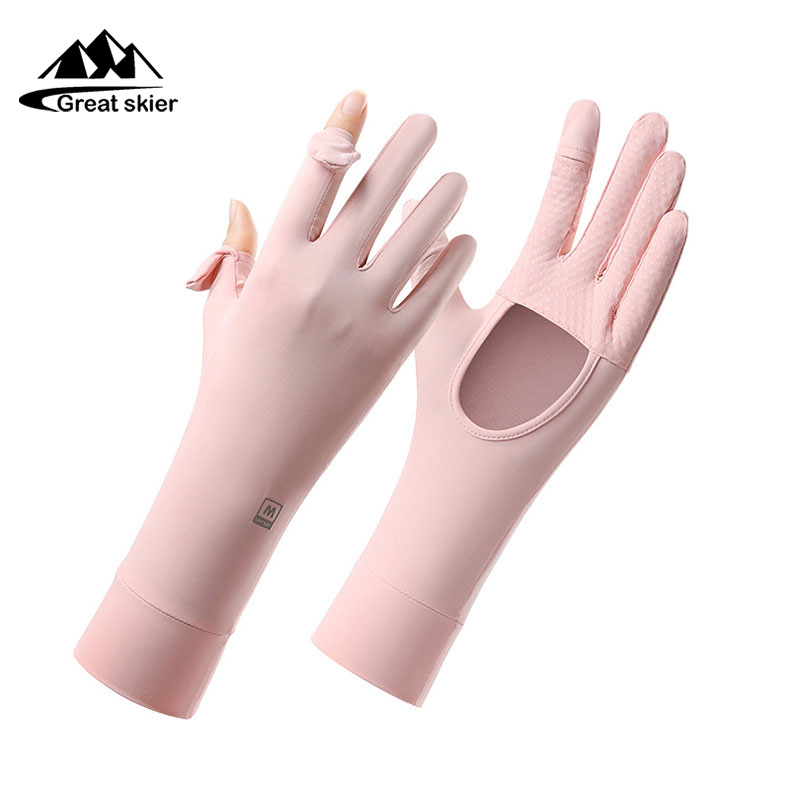 새로운 자외선 차단제 장갑 여성의 속이 빈 손바닥 밖으로 운전 안티 자외선 플립 터치 스크린 얼음 통기성 장갑