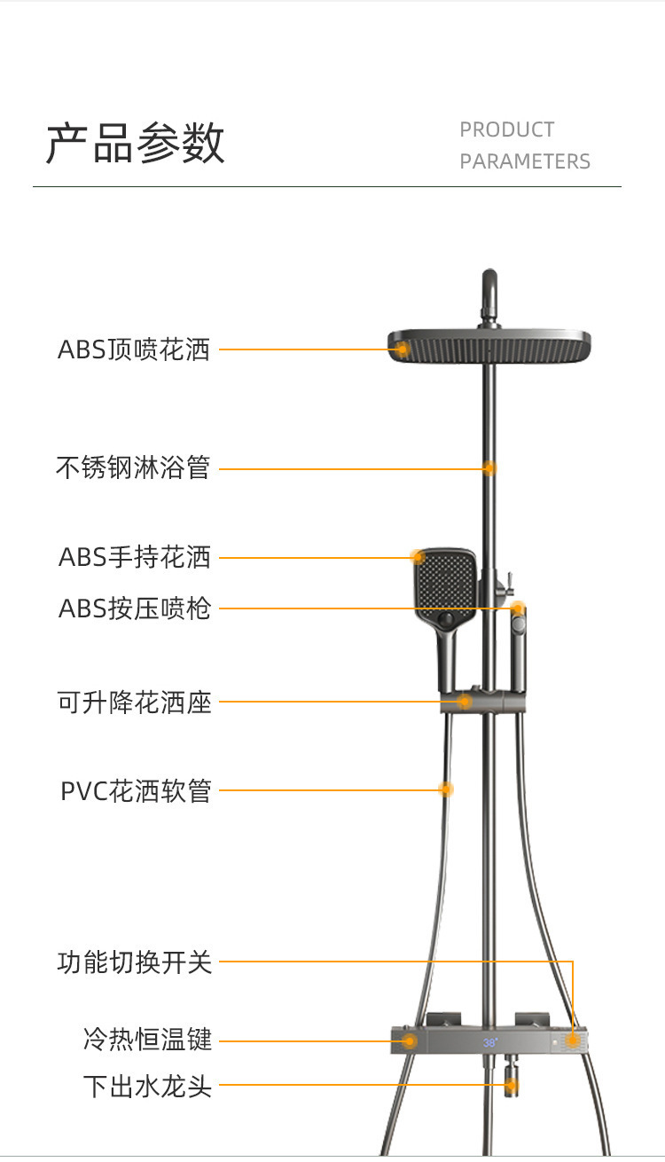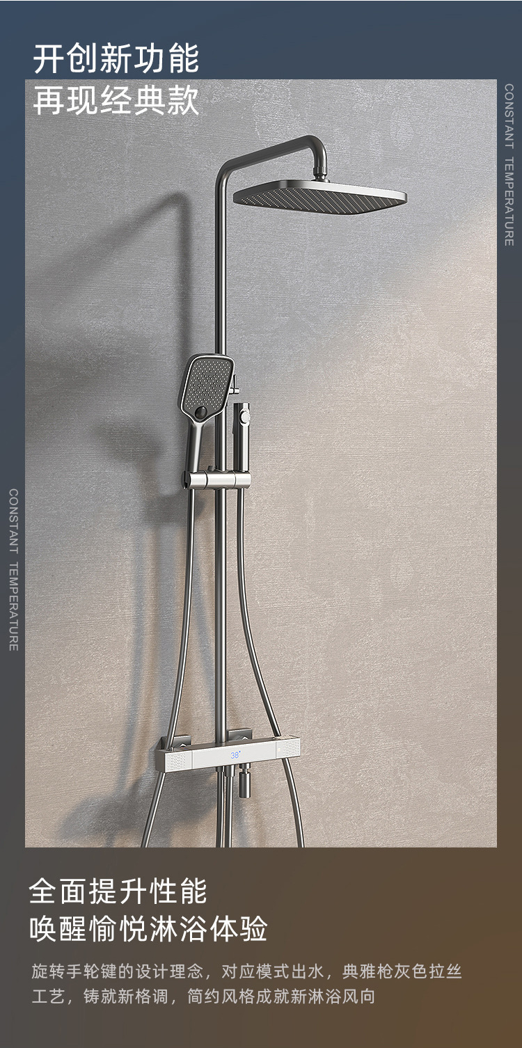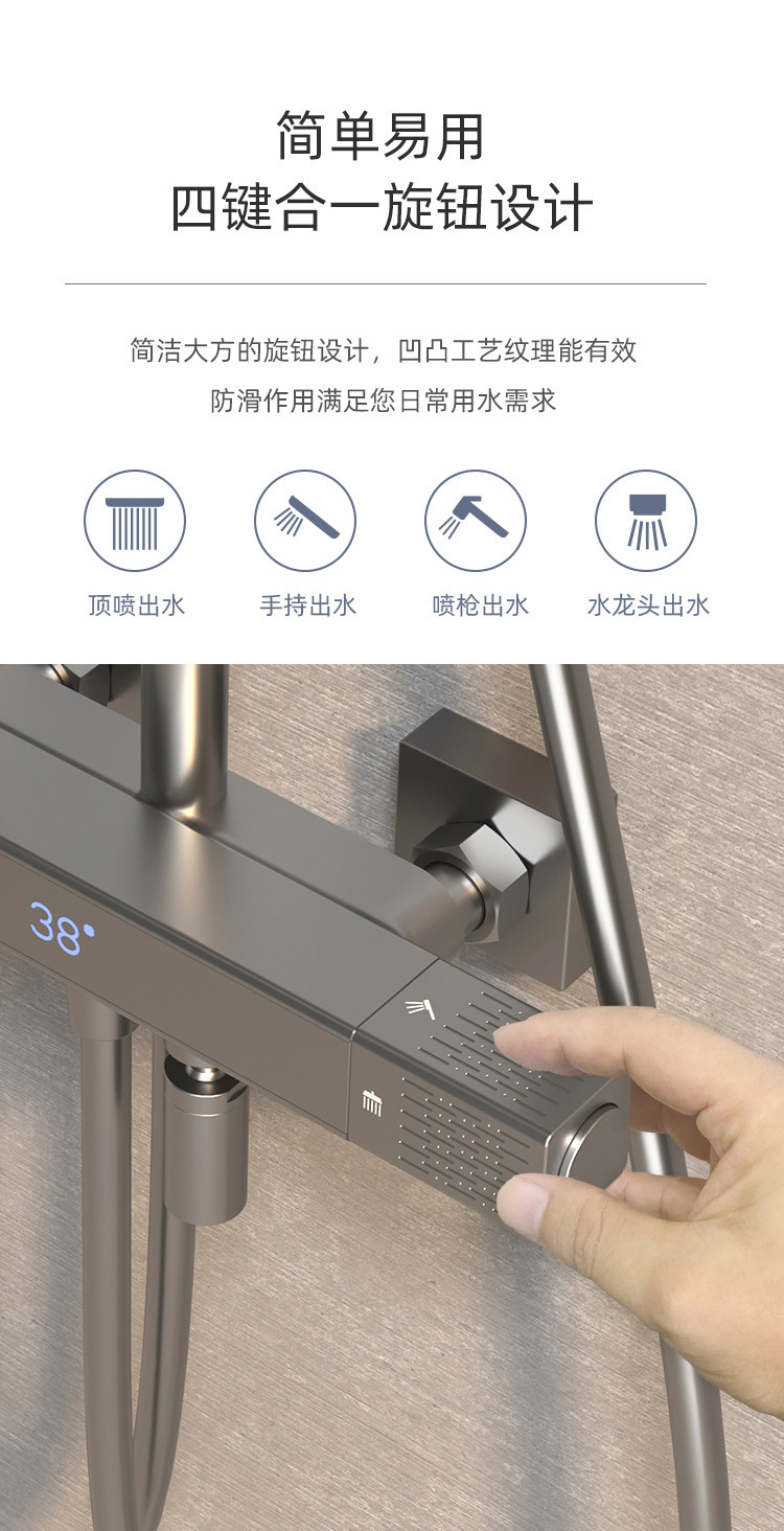 샤워 헤드 세트 샤워 헤드 가정용 욕실 지능형 회색 세트 디지털 디스플레이 샤워 헤드 샤워 그레이 플라워