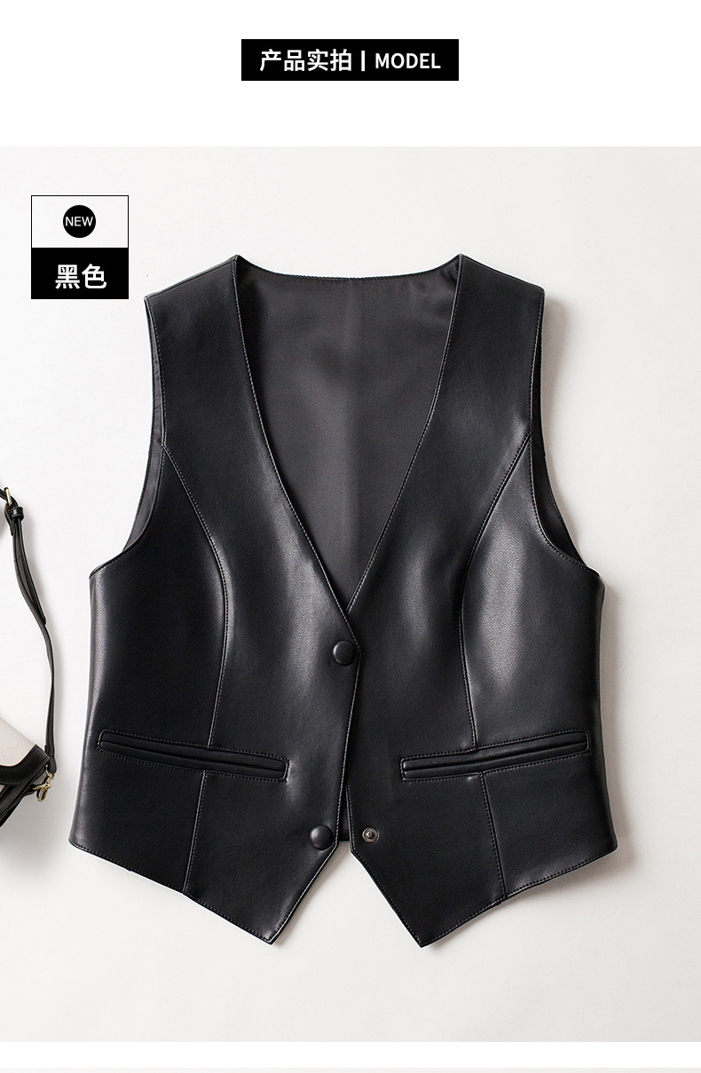 2025 신상 가죽 조끼 여성 슬림핏 한국 스타일 슬림한 PU 가죽 조끼 외투