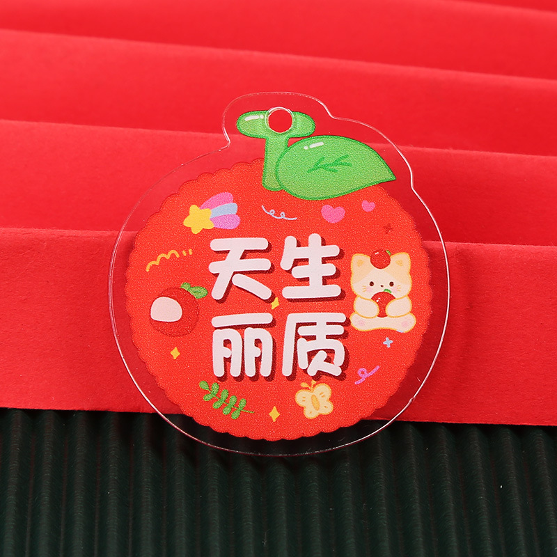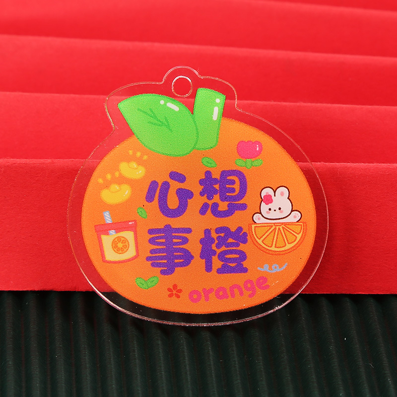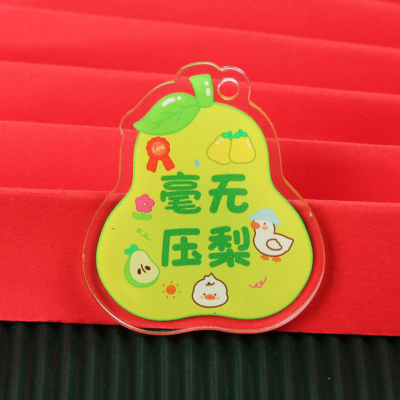 DIY 보석 액세서리 아크릴 양면 과일 브랜드 창조적 인 특수 모양의 텍스트 키 체인 펜던트 백 장식품