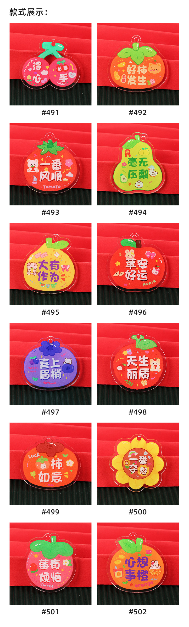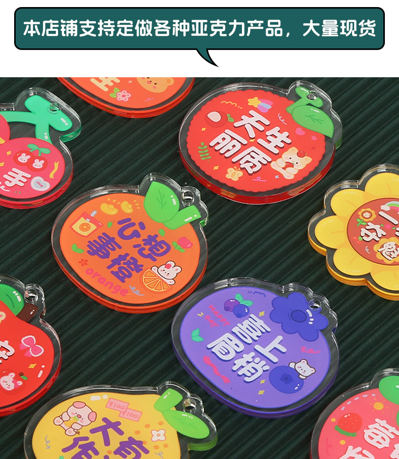 DIY 보석 액세서리 아크릴 양면 과일 브랜드 창조적 인 특수 모양의 텍스트 키 체인 펜던트 백 장식품스토어 가기