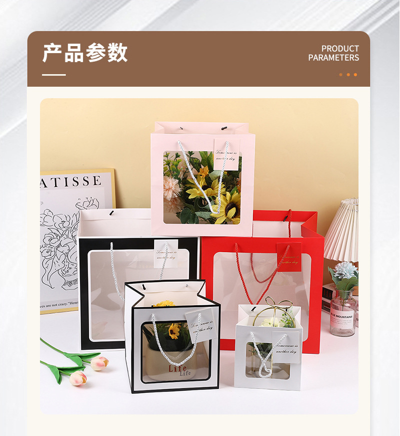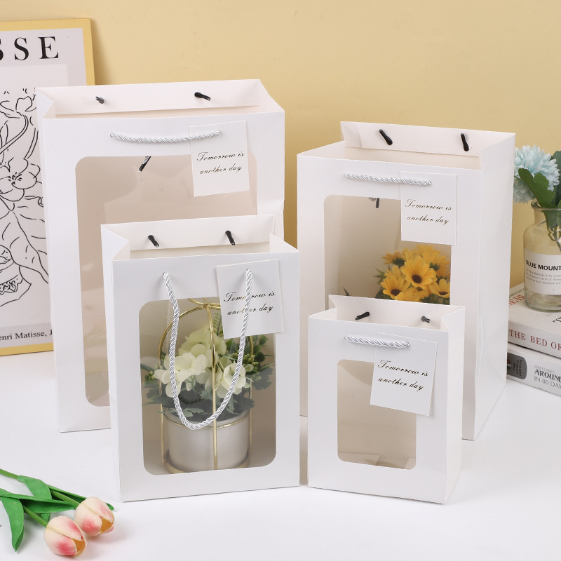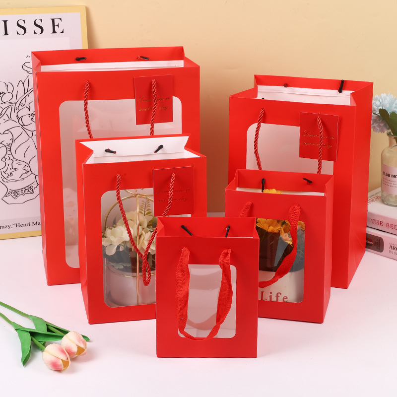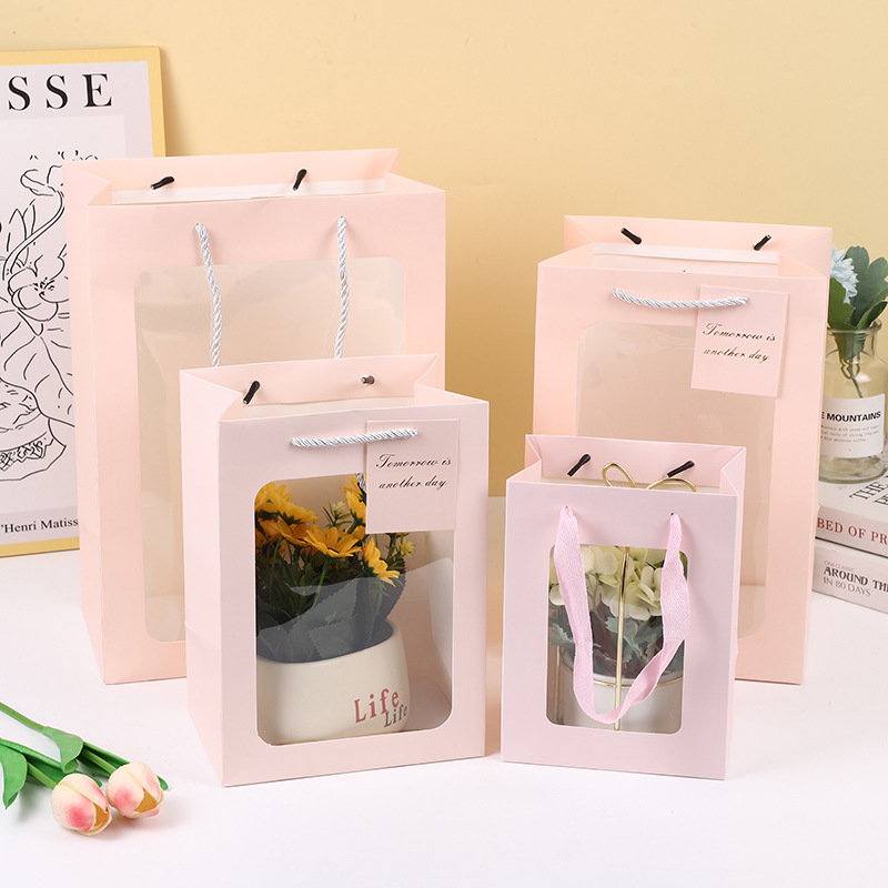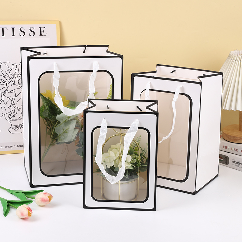 투명 창문형 토트백, 기념품 가방, 꽃다발 포장 가방, 발렌타인데이 선물, 쇼윈도 선물 가방 도매