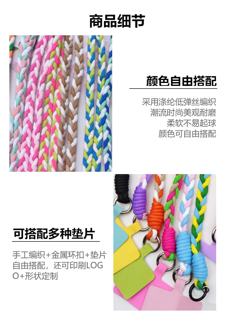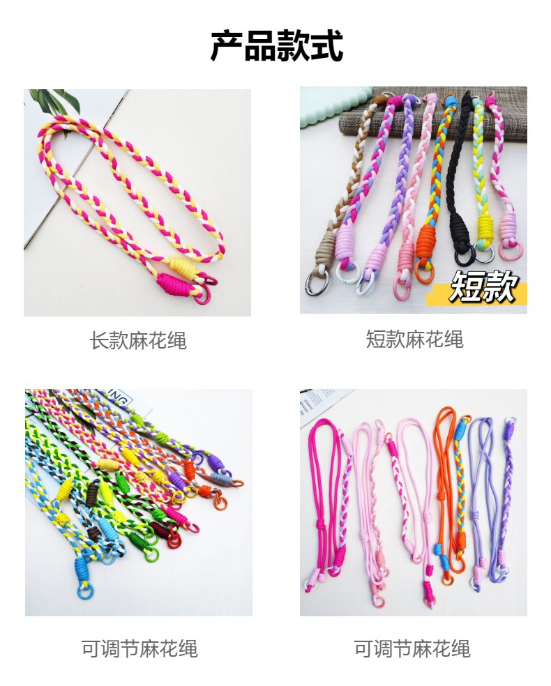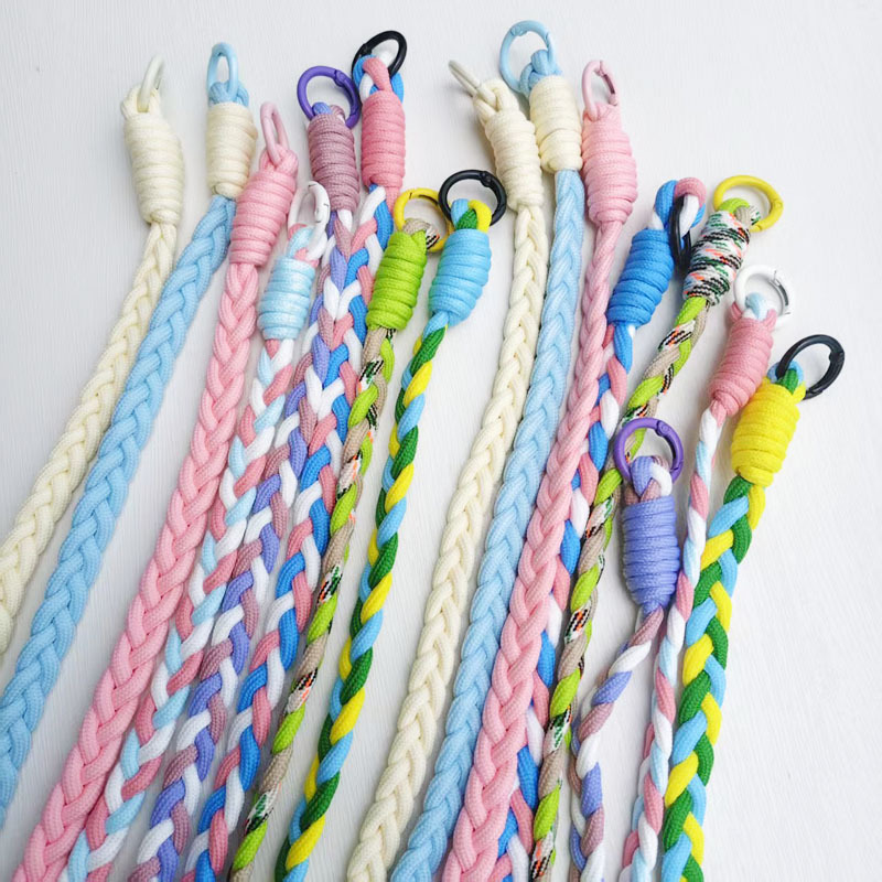 손으로 짠 꼰 로프 휴대 전화 끈 보온병 컵 긴 로프 폴리 에스테르 둥근 로프 수하물 로프 3 가닥 컬러 매칭 로프