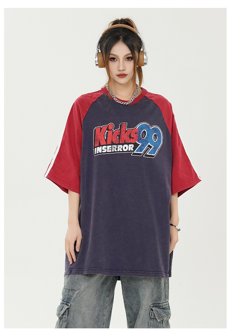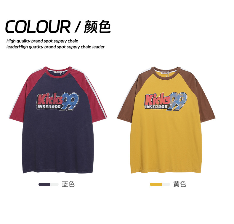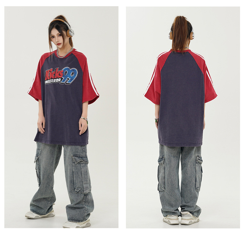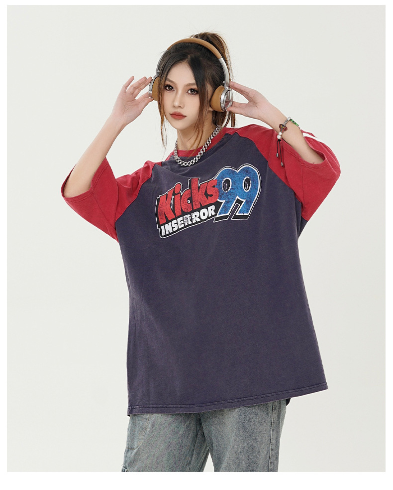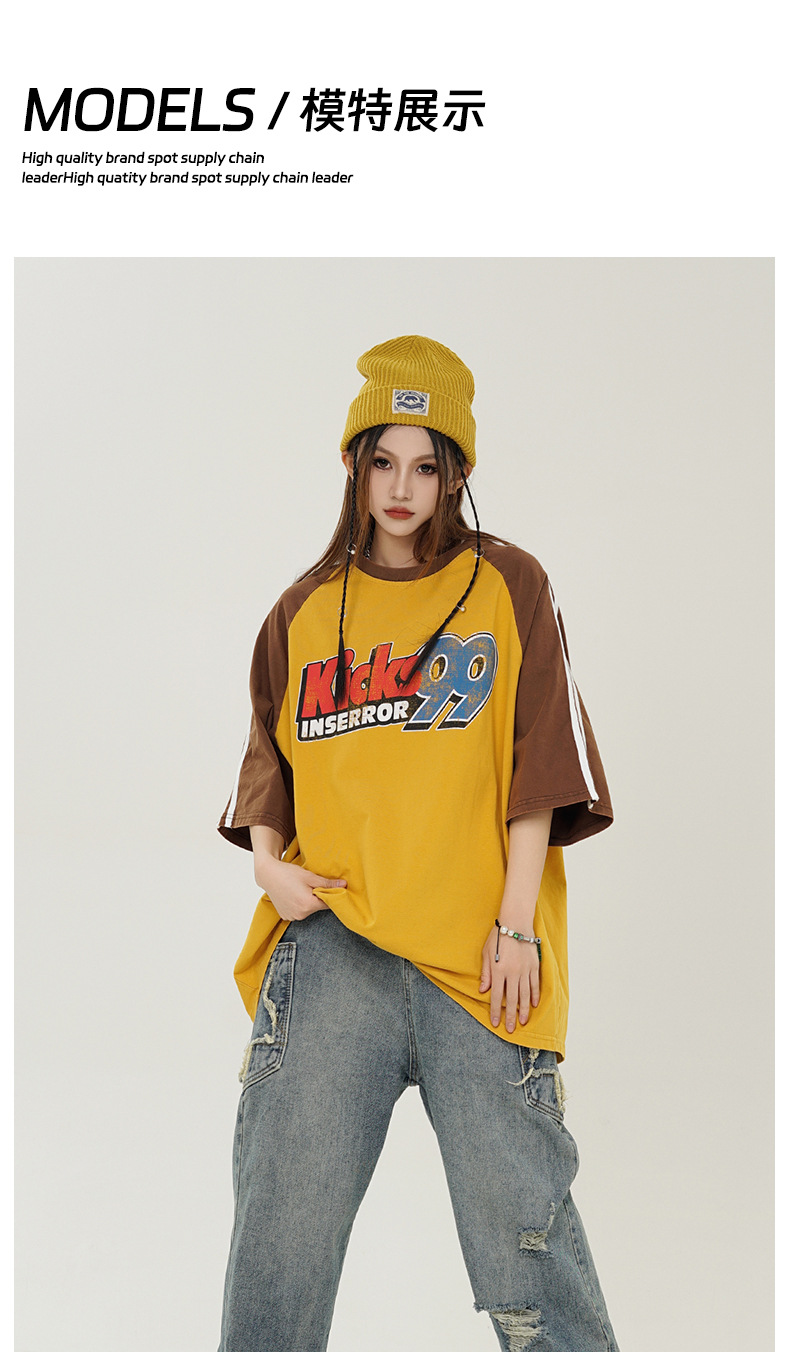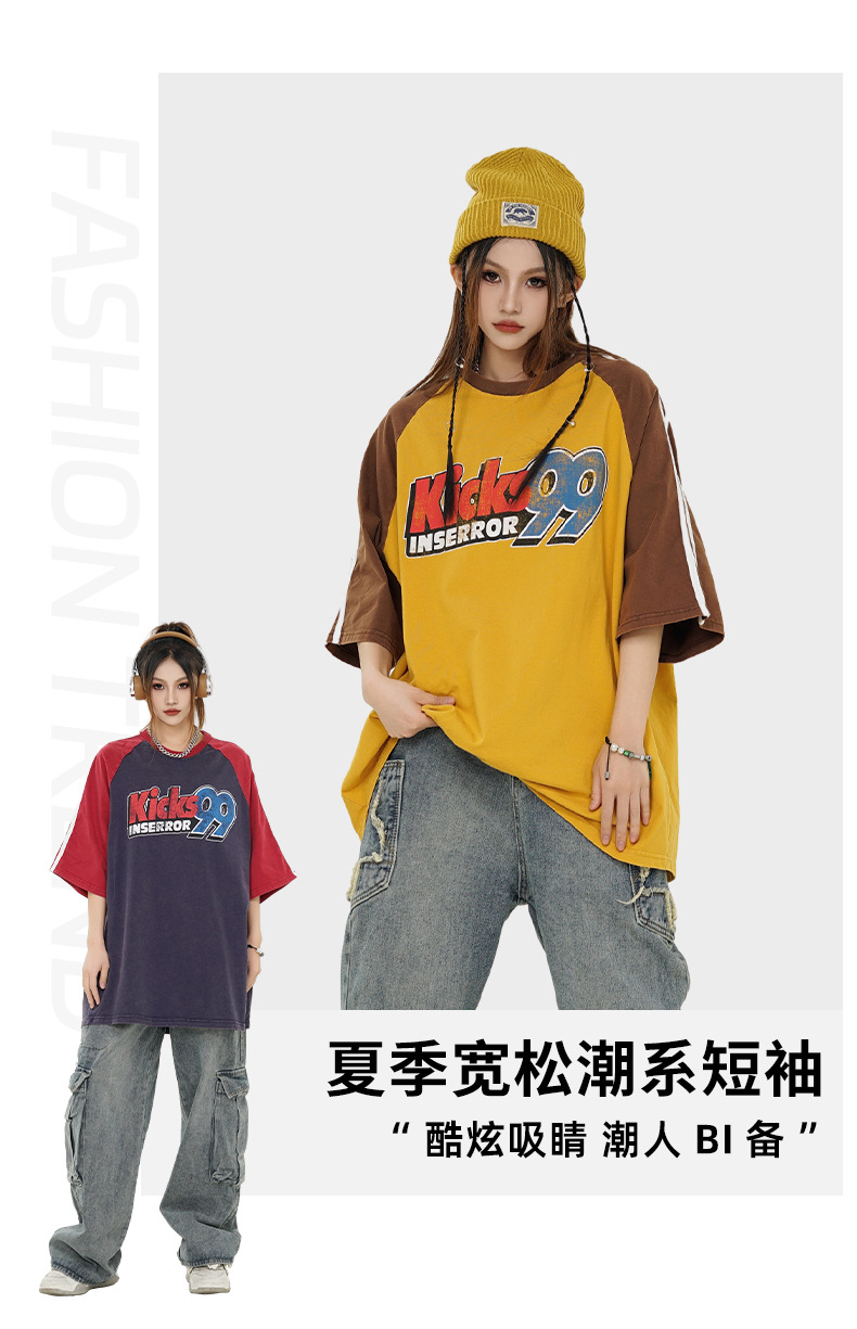 오리지널 미국 복고풍 Maillard 대비 컬러 반팔 티셔츠 여성용 빈티지 패션 브랜드 느슨한 캐주얼 커플 탑스토어 가기