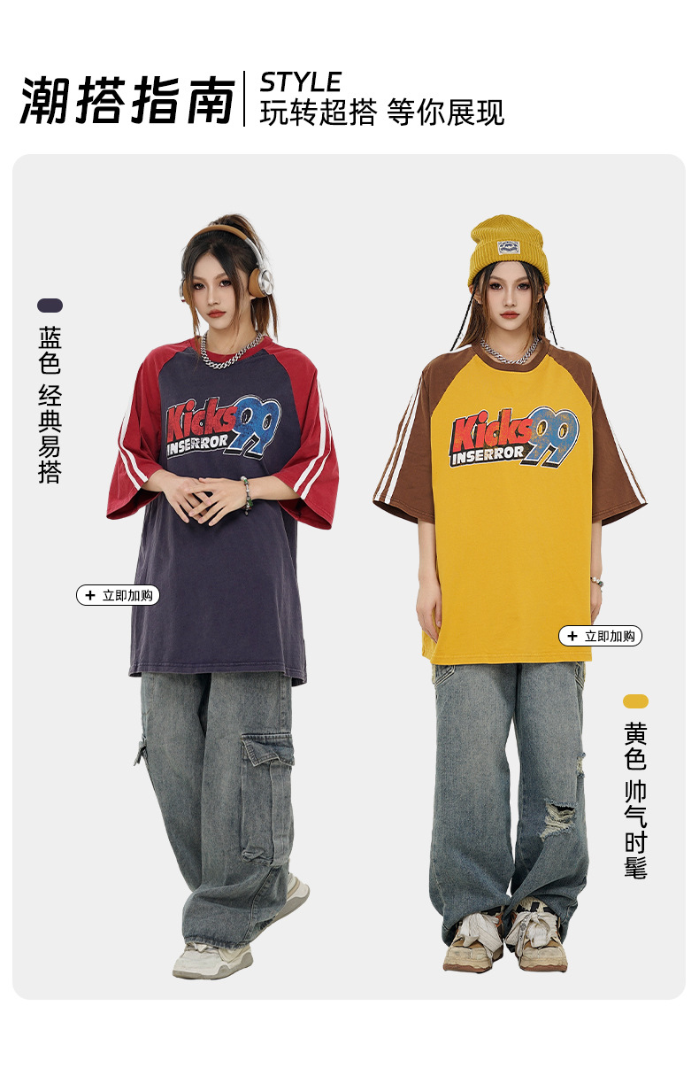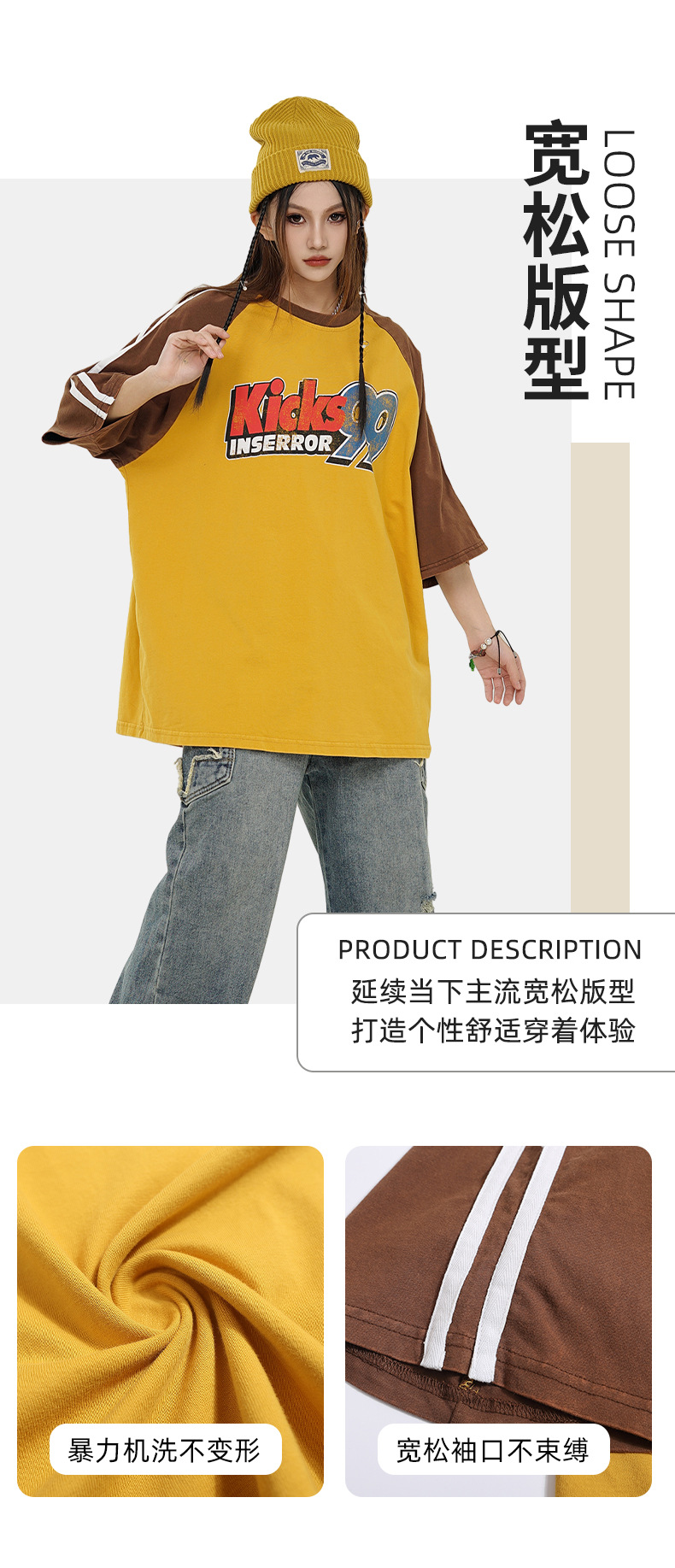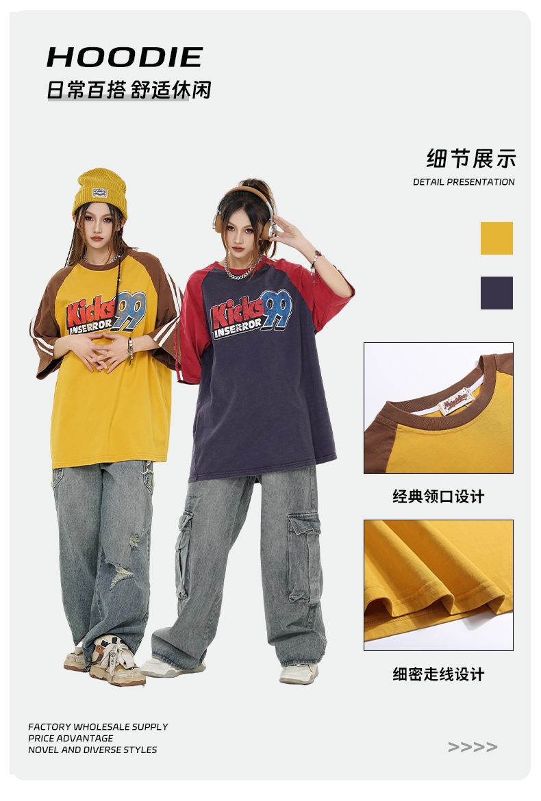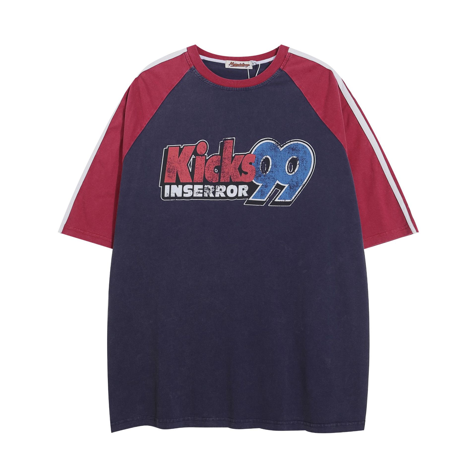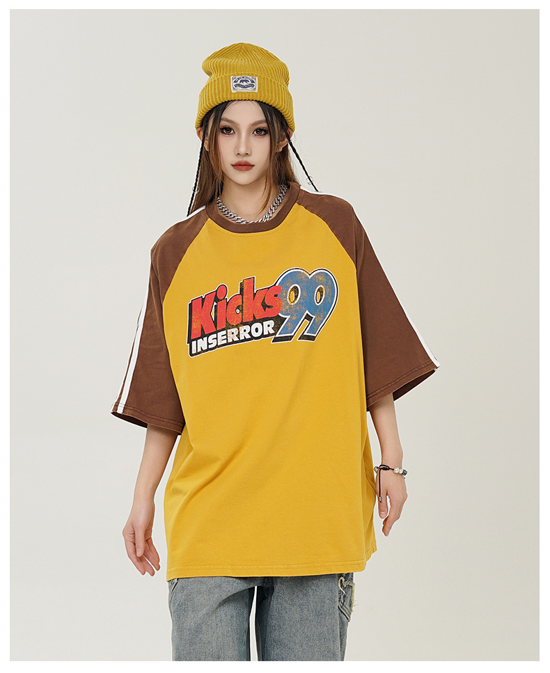 오리지널 미국 복고풍 Maillard 대비 컬러 반팔 티셔츠 여성용 빈티지 패션 브랜드 느슨한 캐주얼 커플 탑스토어 가기