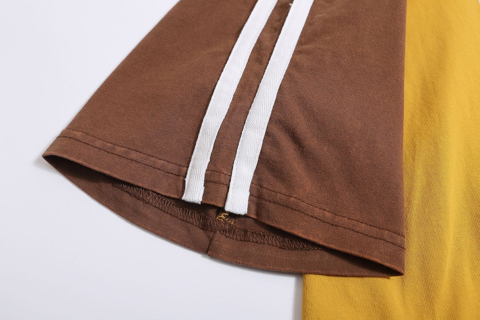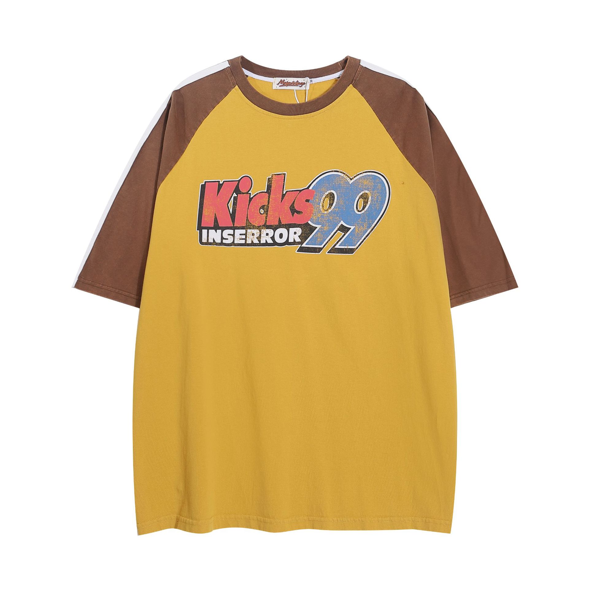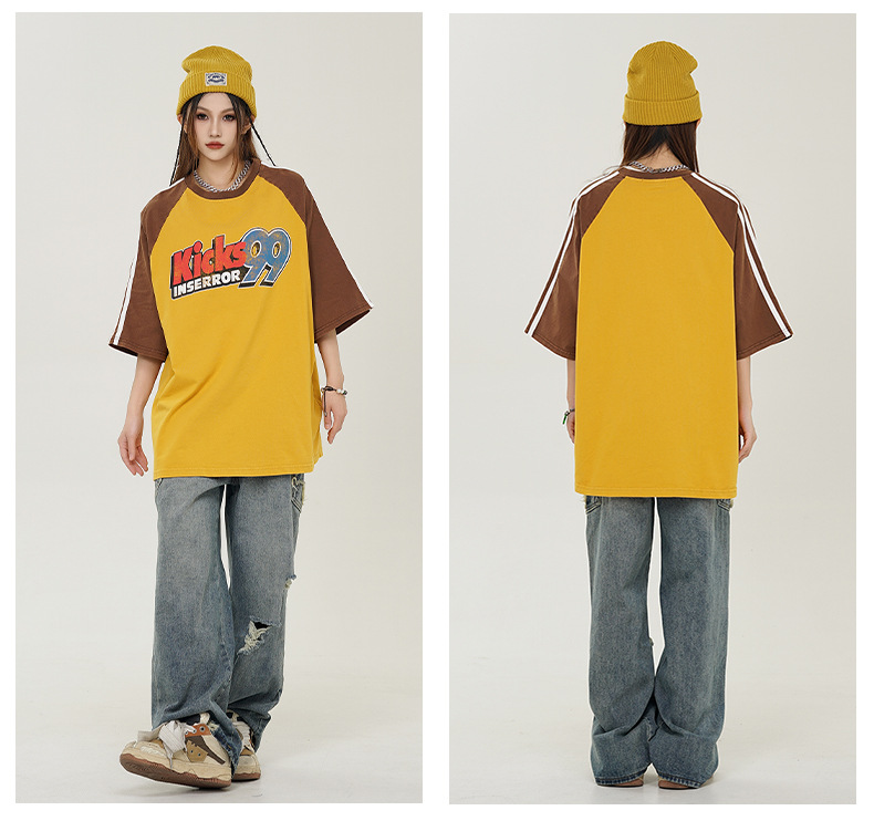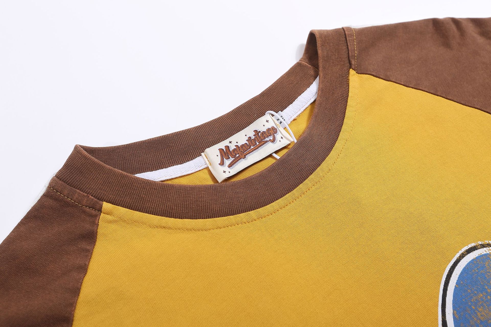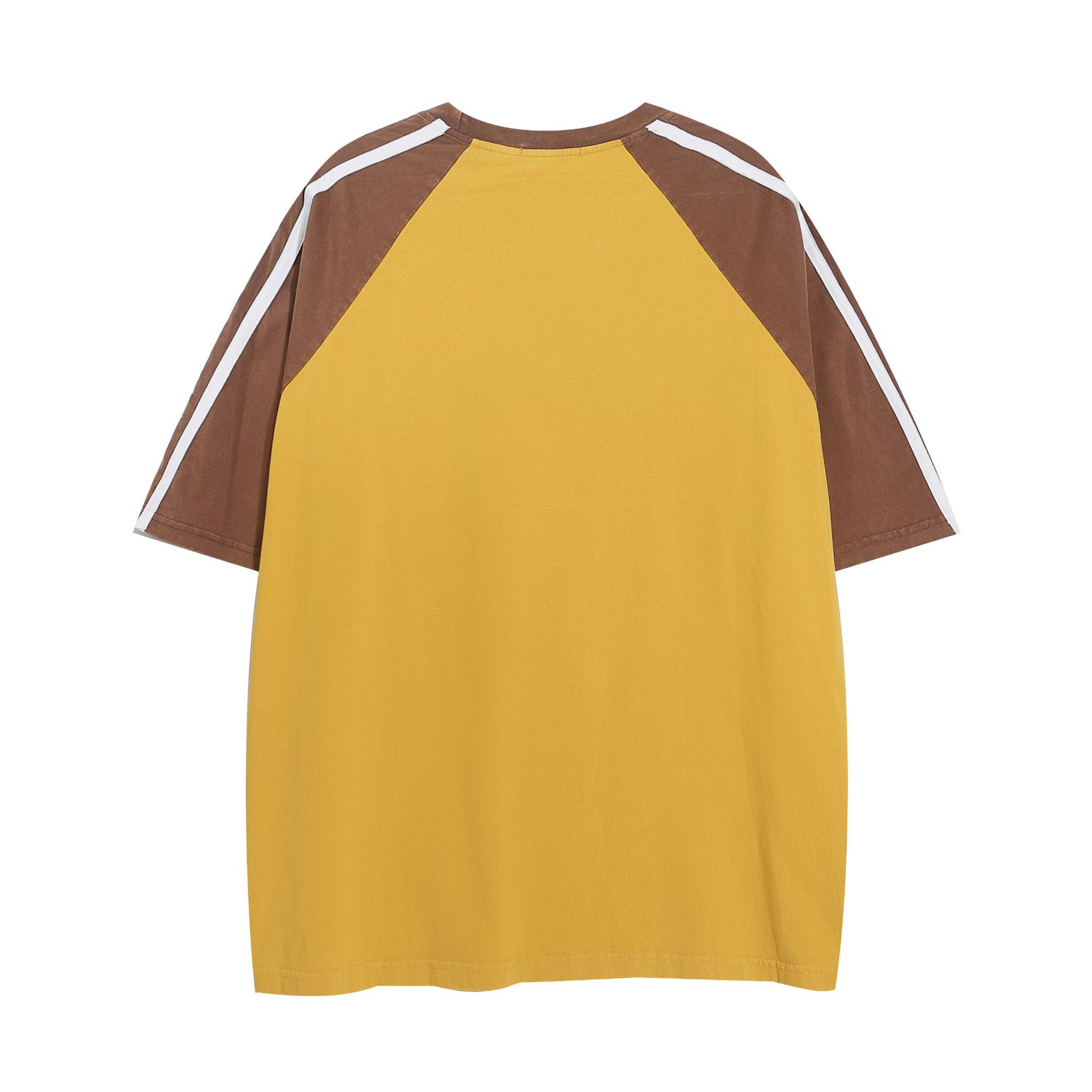 오리지널 미국 복고풍 Maillard 대비 컬러 반팔 티셔츠 여성용 빈티지 패션 브랜드 느슨한 캐주얼 커플 탑
