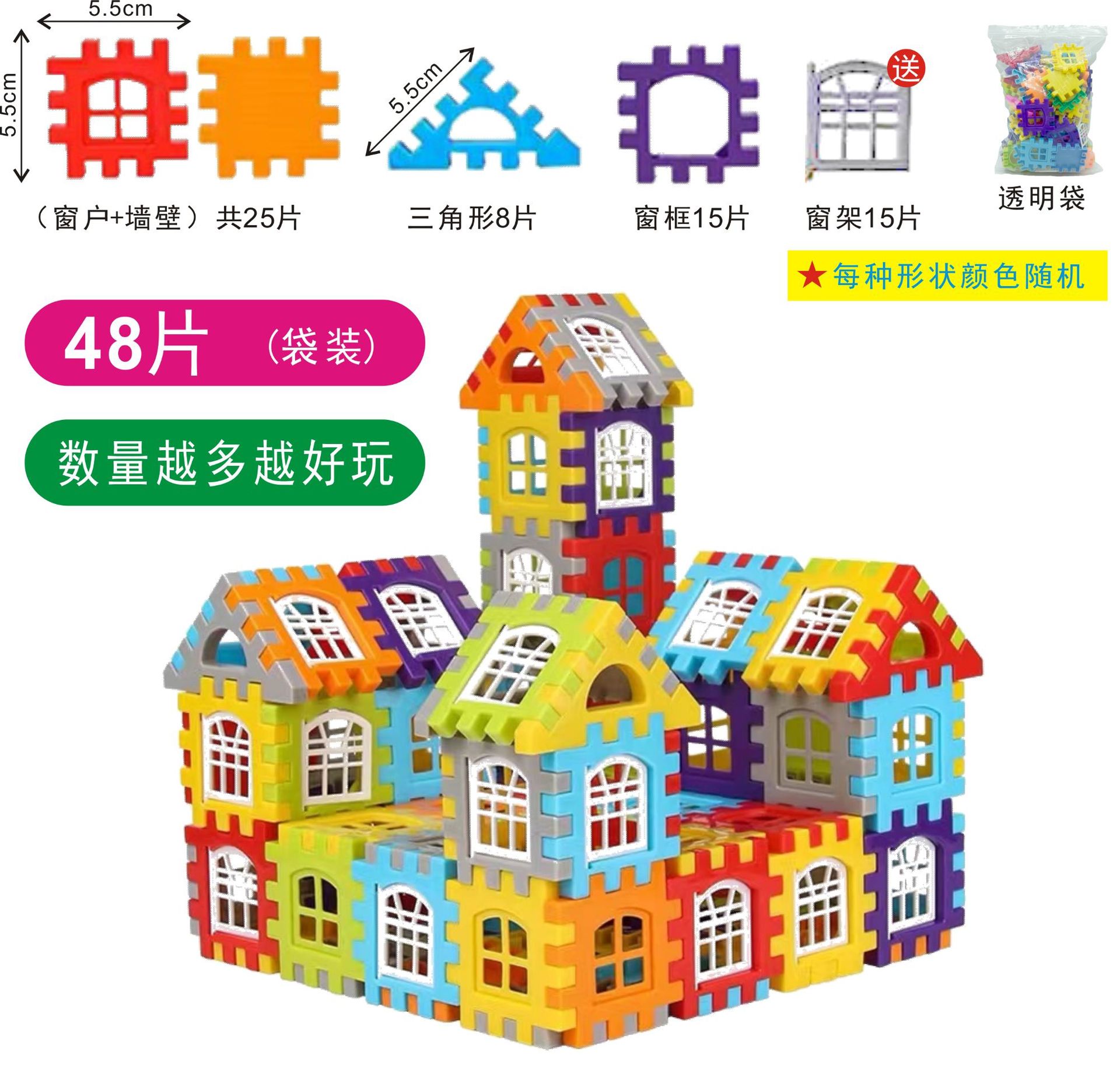 집 빌딩 블록 어린이 조립 장난감 퍼즐 대형 입자 블록 벽 창 모델 퍼즐 소년과 소녀 선물스토어 가기
