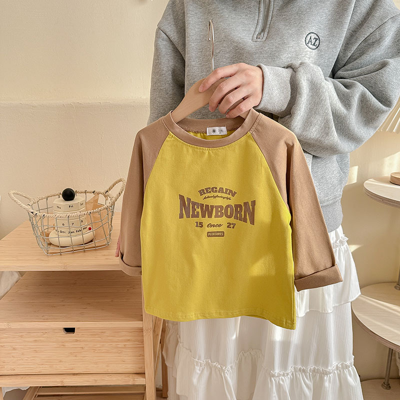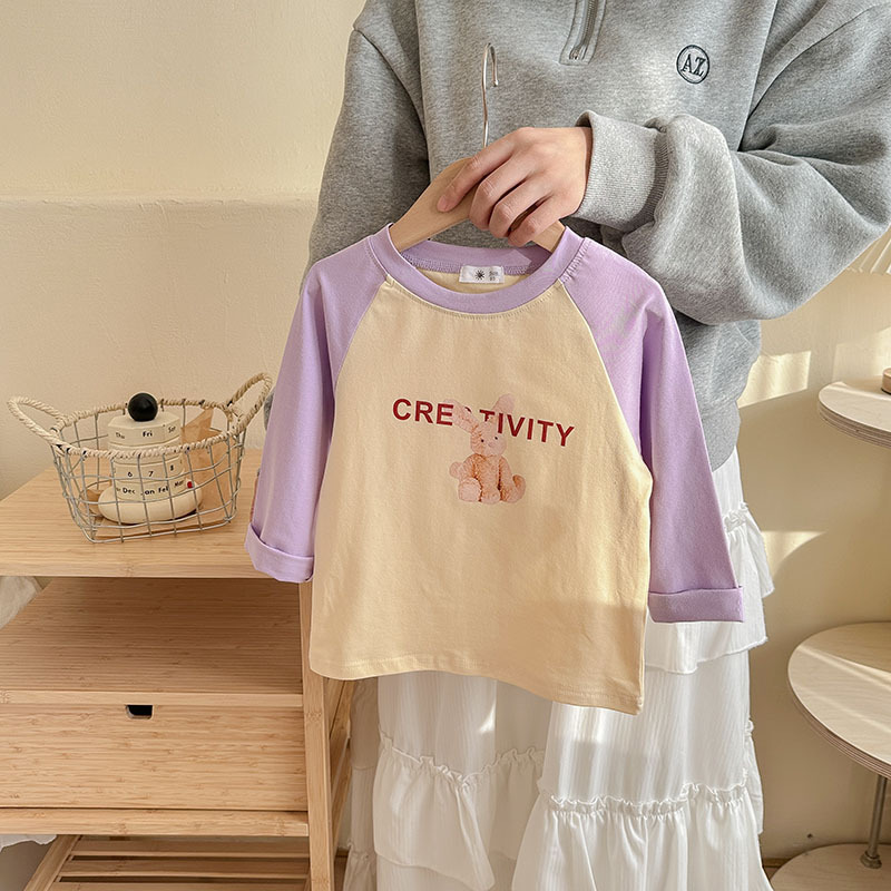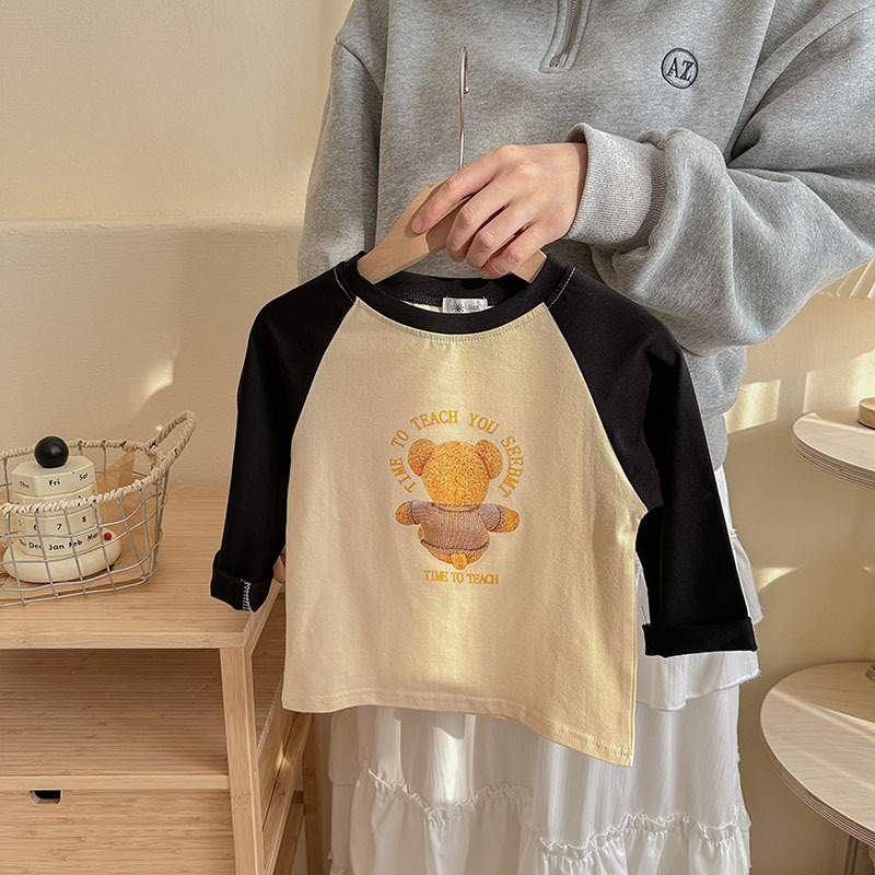 어린이 긴팔 티셔츠 봄과 가을 2024 새로운 한국식 라글란 소매 소년 소녀 만화 서양식 둥근 목 바닥 셔츠스토어 가기