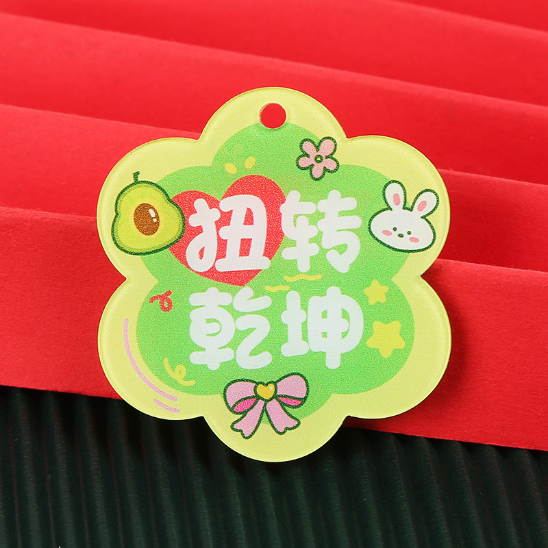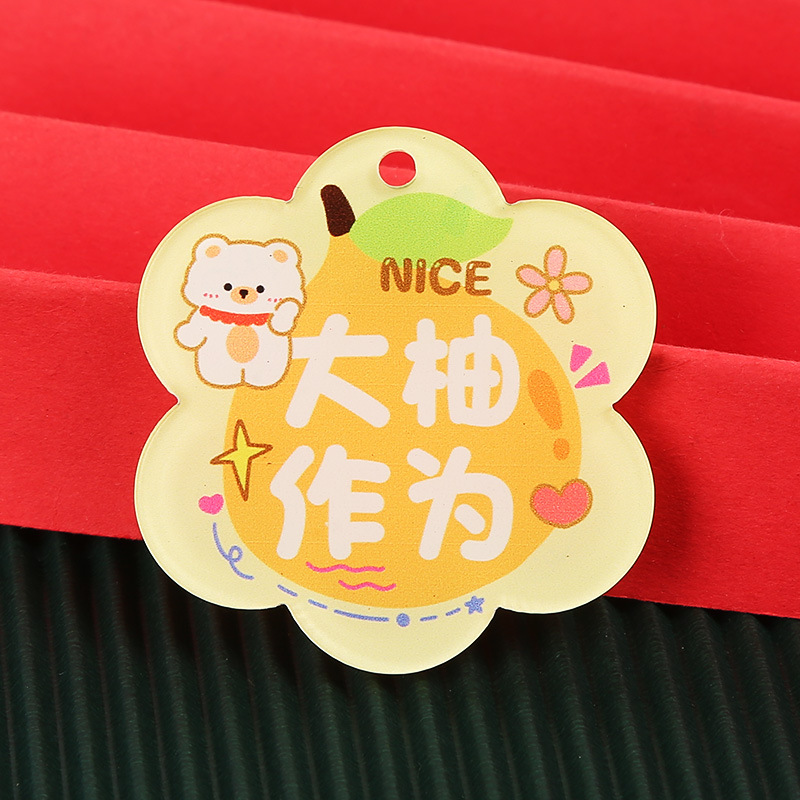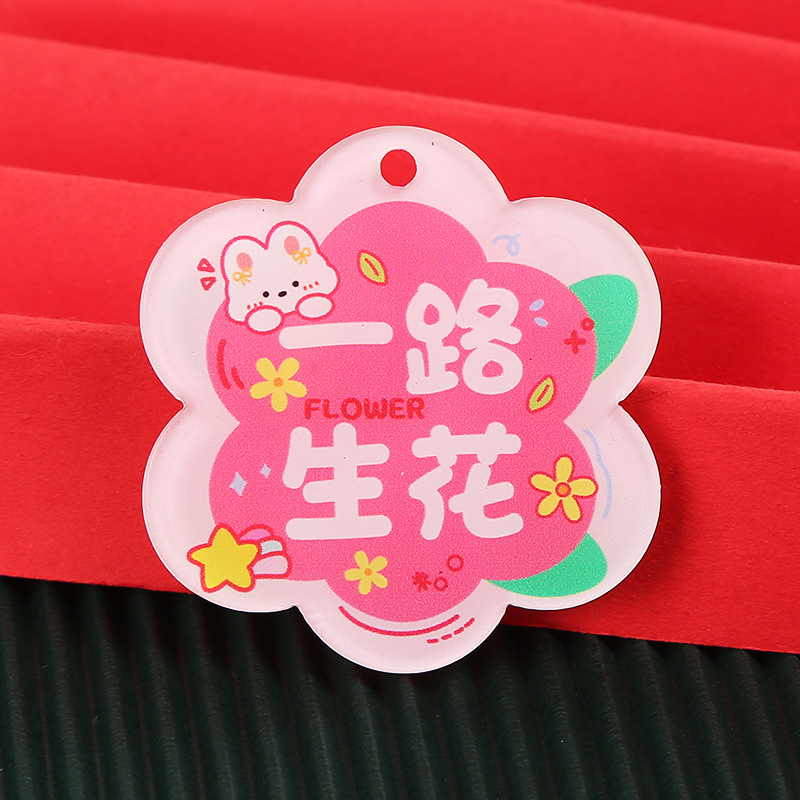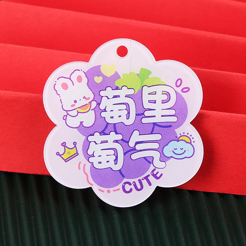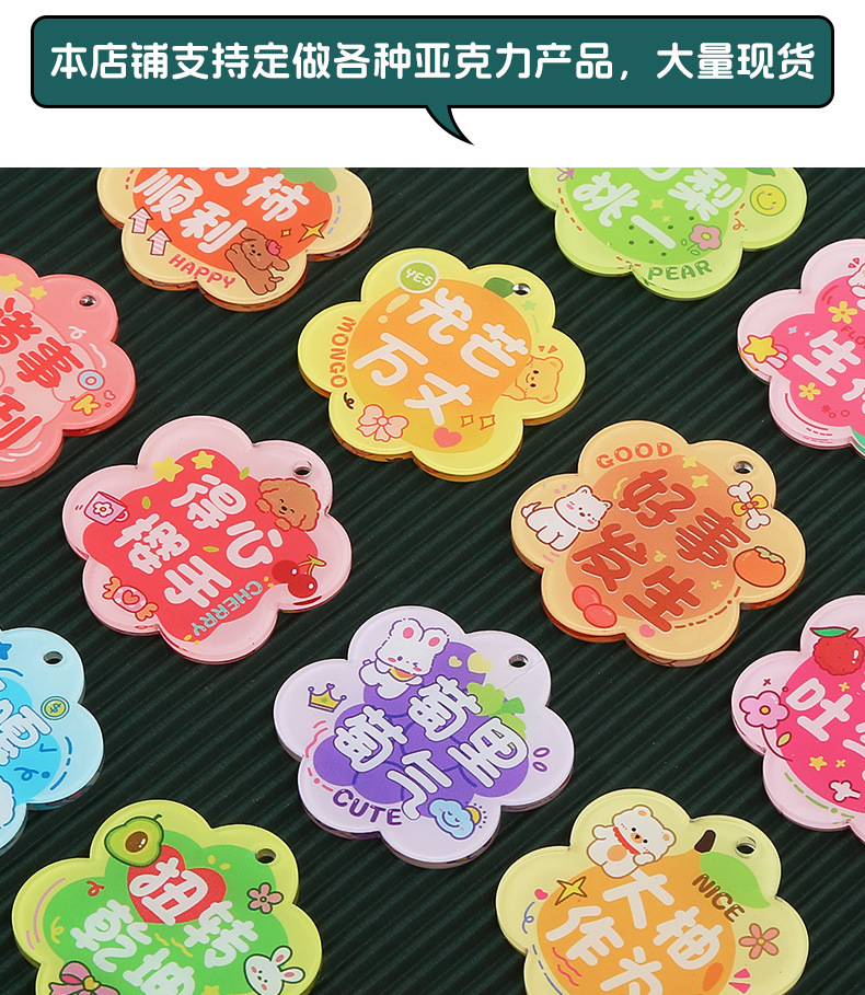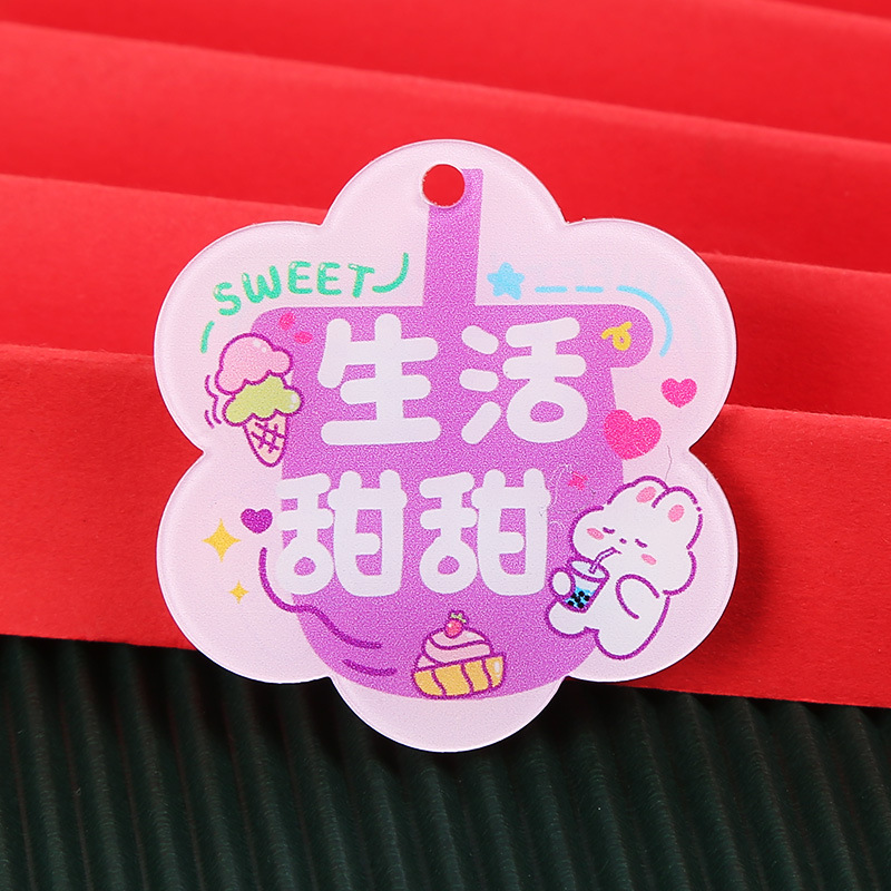창조적 인 귀여운 키 체인 꽃 모양 캐릭터 카드 아크릴 키 체인 텍스트 펜던트 액세서리 양면 텍스트 카드스토어 가기