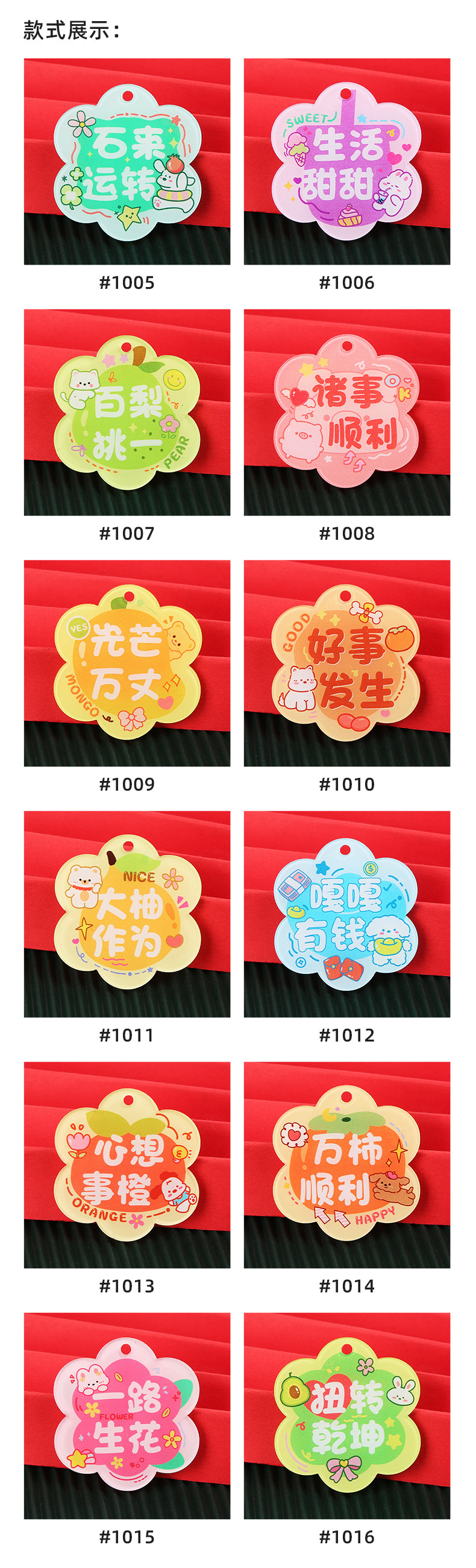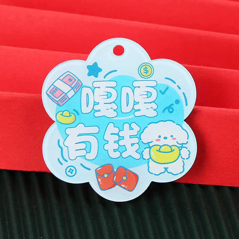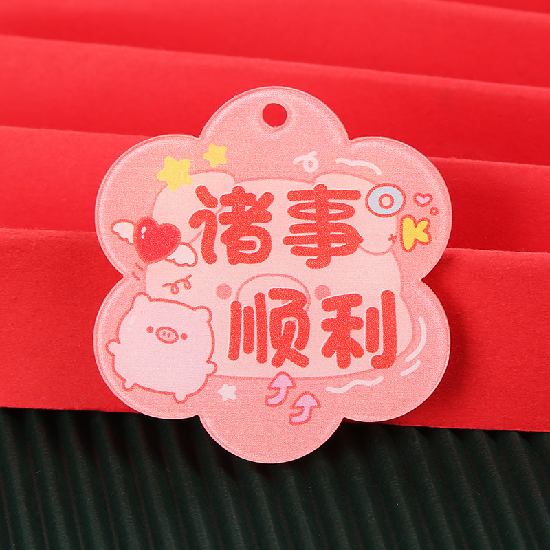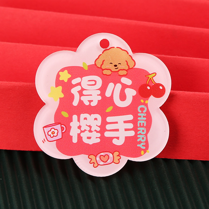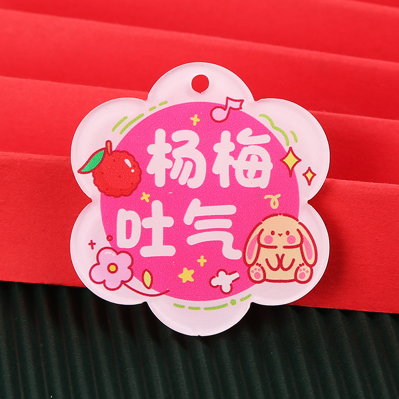 창조적 인 귀여운 키 체인 꽃 모양 캐릭터 카드 아크릴 키 체인 텍스트 펜던트 액세서리 양면 텍스트 카드스토어 가기
