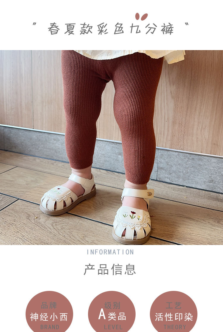 어린이 레깅스 봄과 가을 면화 소녀 아홉 번째 바지 양말 한국 복고풍 단색 아기 소녀의 큰 엉덩이 레깅스