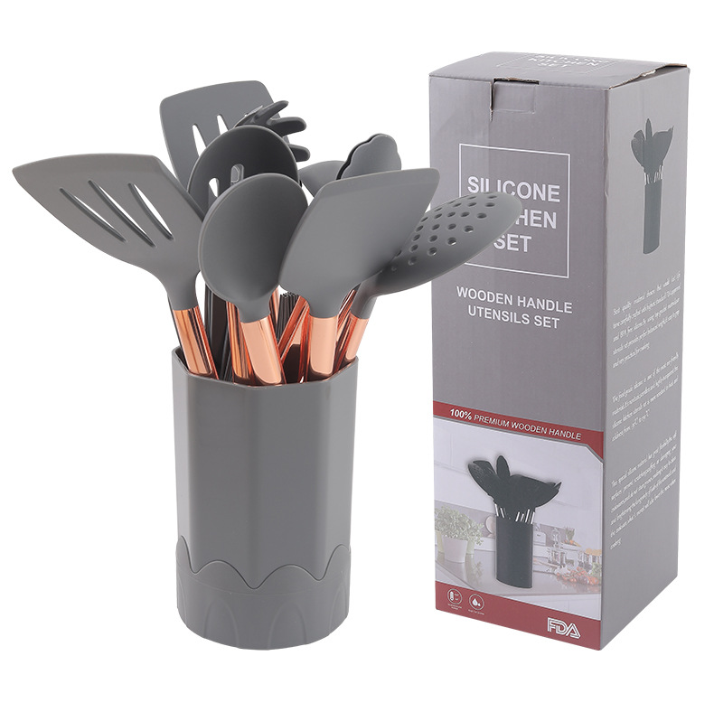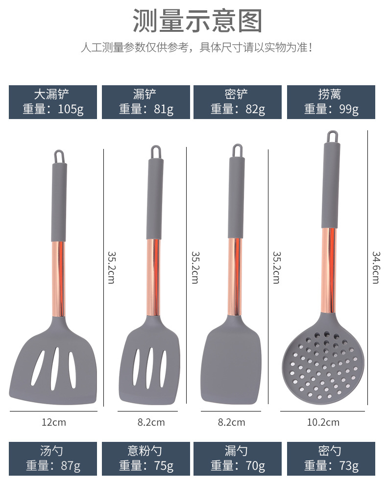 맞춤형 로즈 골드 스테인레스 스틸 손잡이 주방 용품 14 세트 주걱, 스푼, 비 스틱 팬 베이킹 및 바베큐 요리 도구