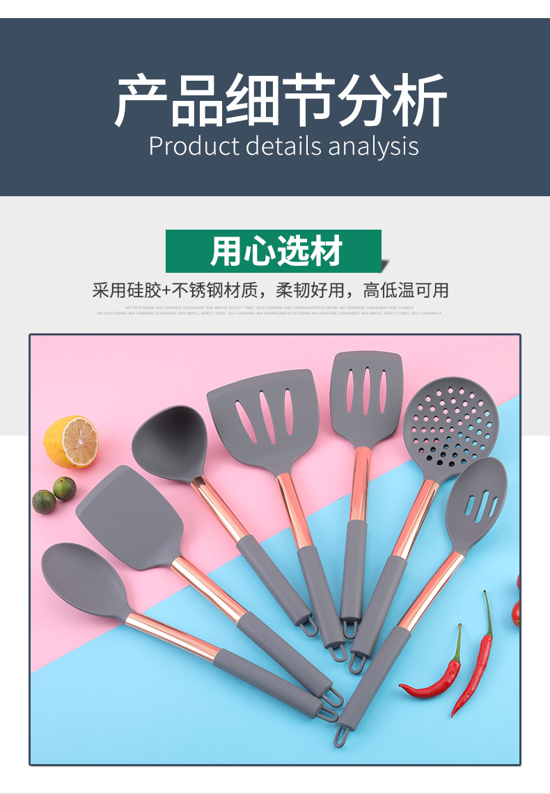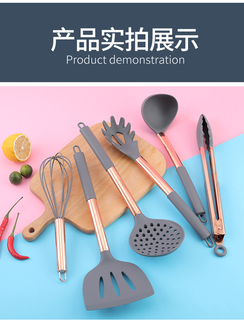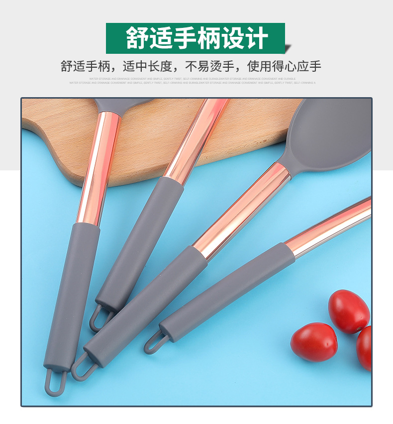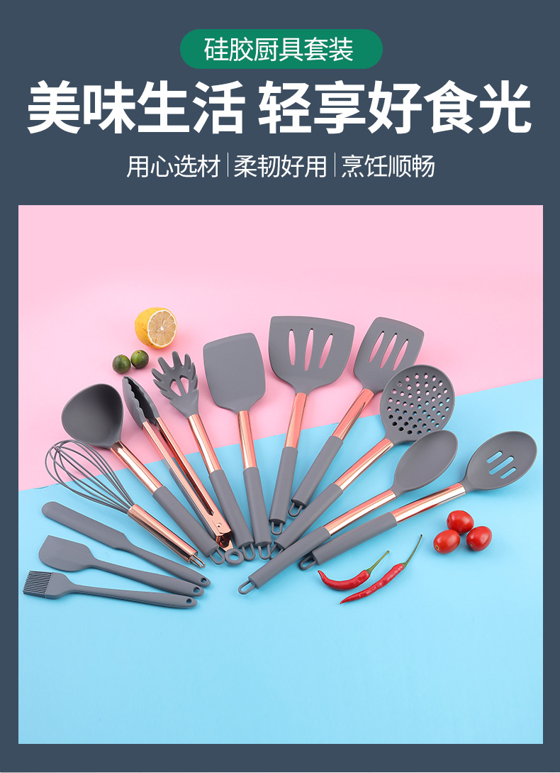 맞춤형 로즈 골드 스테인레스 스틸 손잡이 주방 용품 14 세트 주걱, 스푼, 비 스틱 팬 베이킹 및 바베큐 요리 도구스토어 가기