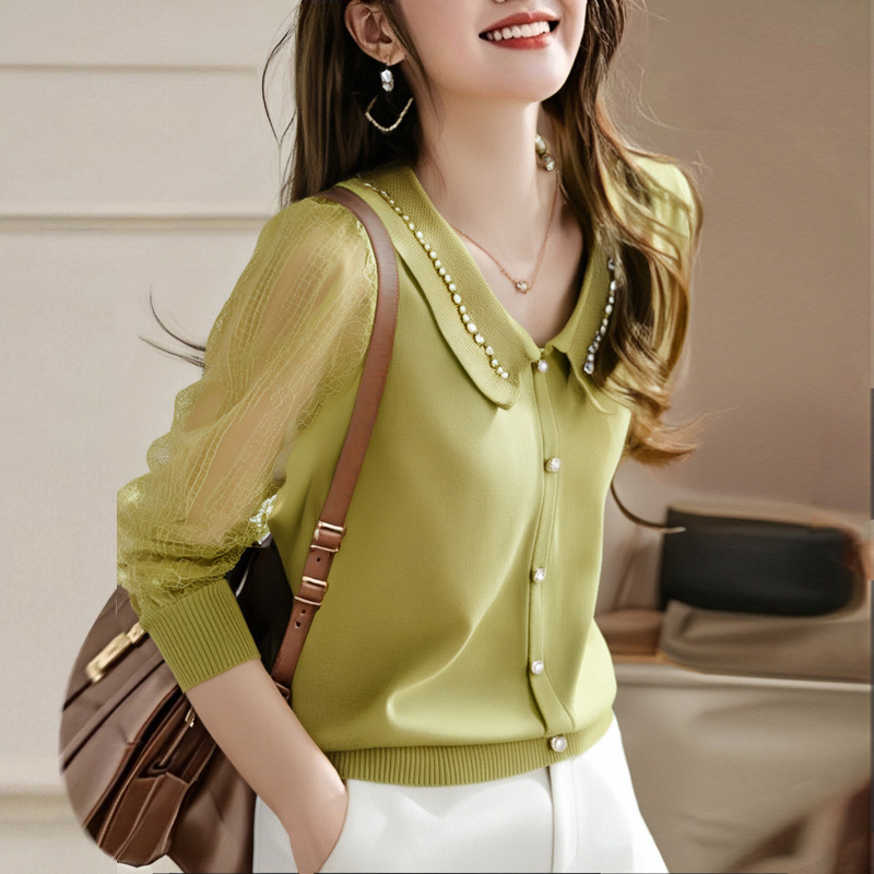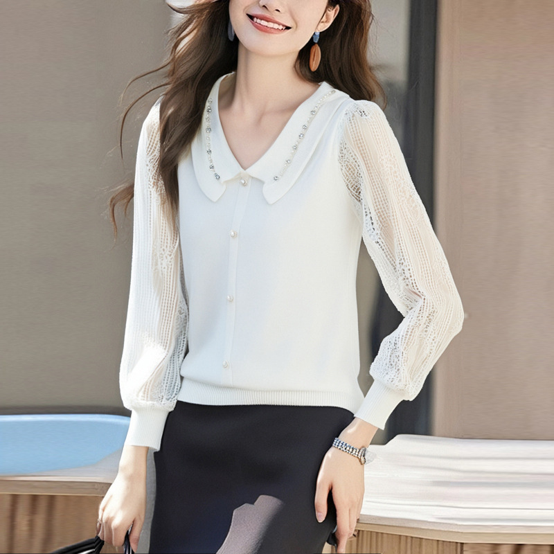 유행 봄과 가을 새로운 긴 소매 인형 칼라 레이스 스웨터 짧은 스웨터 여성용 바닥 스웨터 얇은 내부 착용