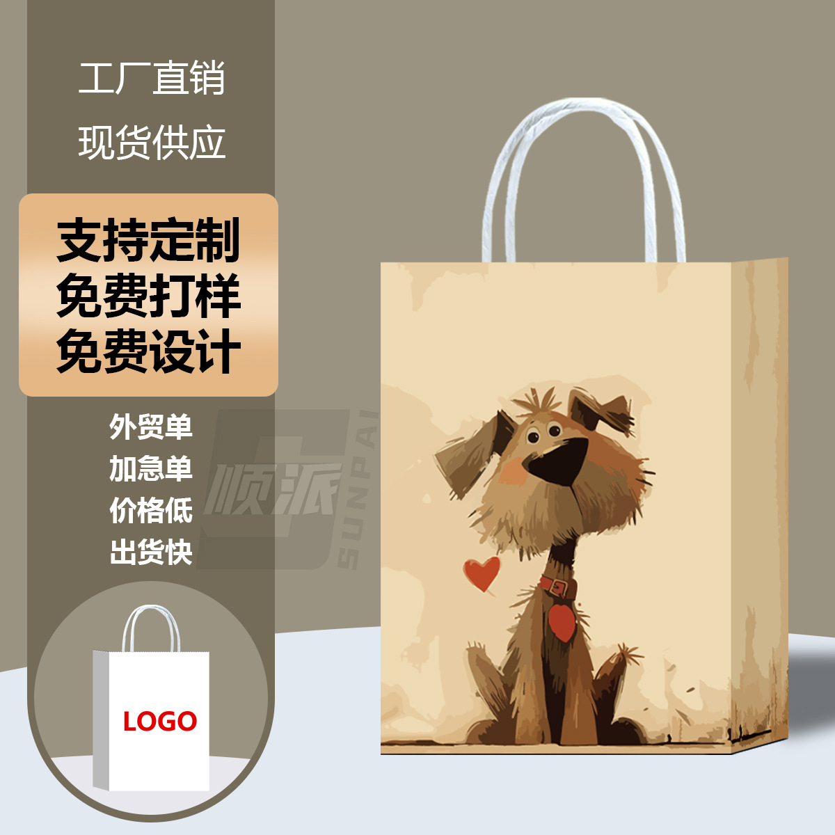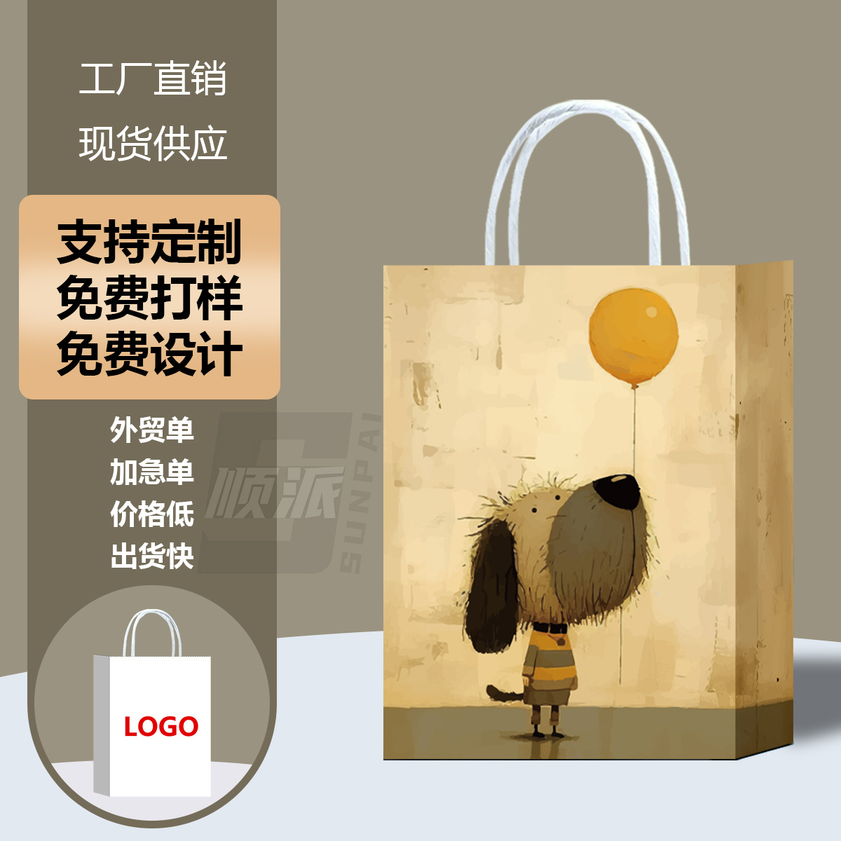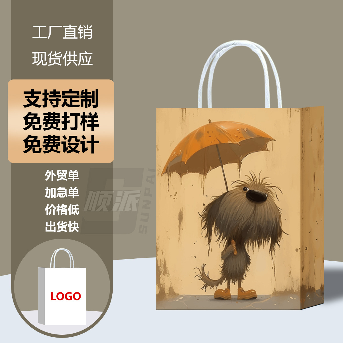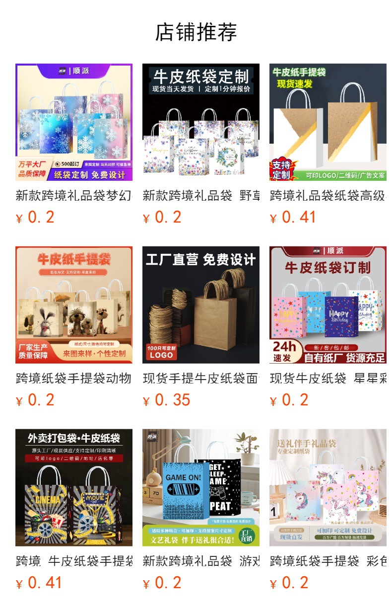 새로운 아마존 동물 발 인쇄 선물 종이 가방 쇼핑 의류 선물 가방 만화 선물 흰색 카드 선물 가방스토어 가기