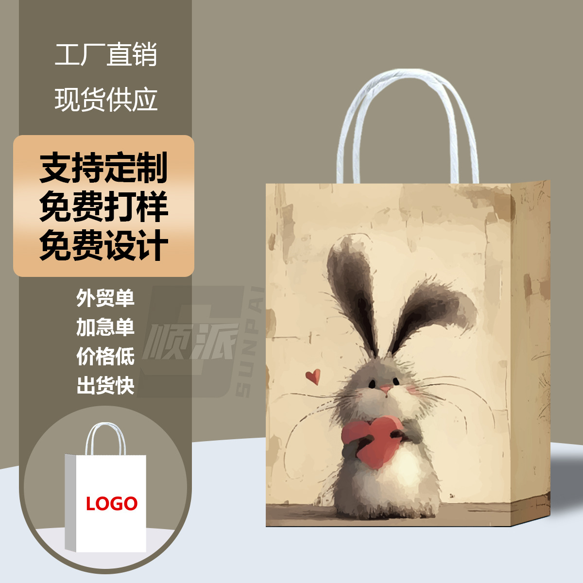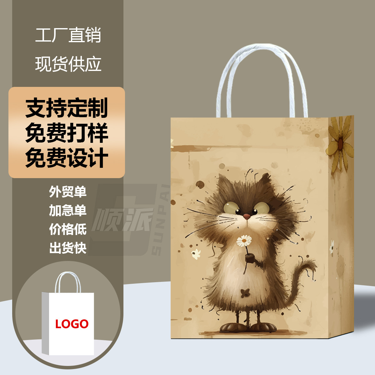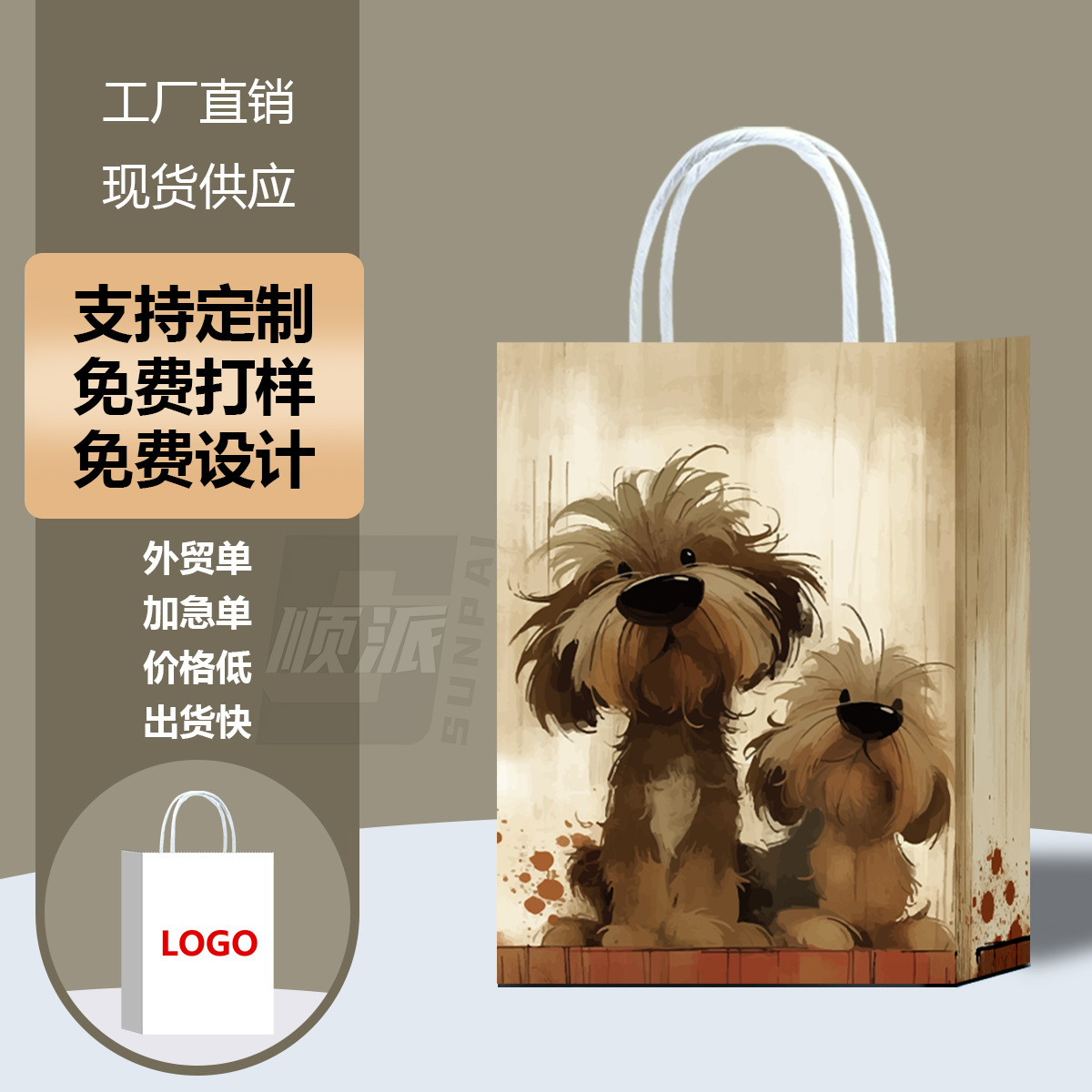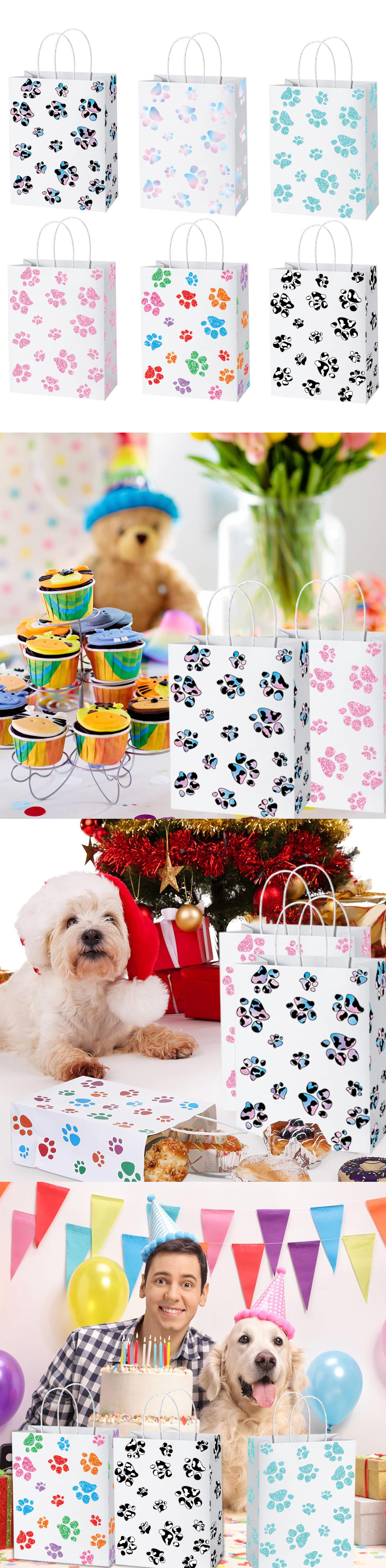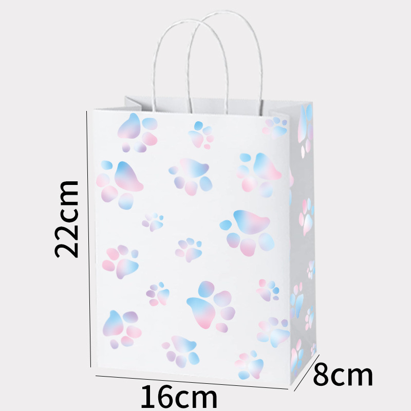 새로운 아마존 동물 발 인쇄 선물 종이 가방 쇼핑 의류 선물 가방 만화 선물 흰색 카드 선물 가방