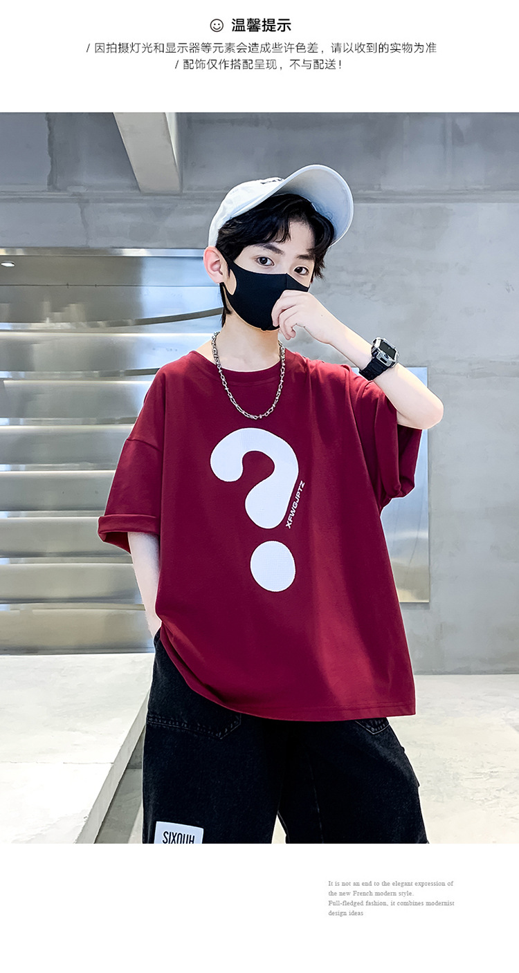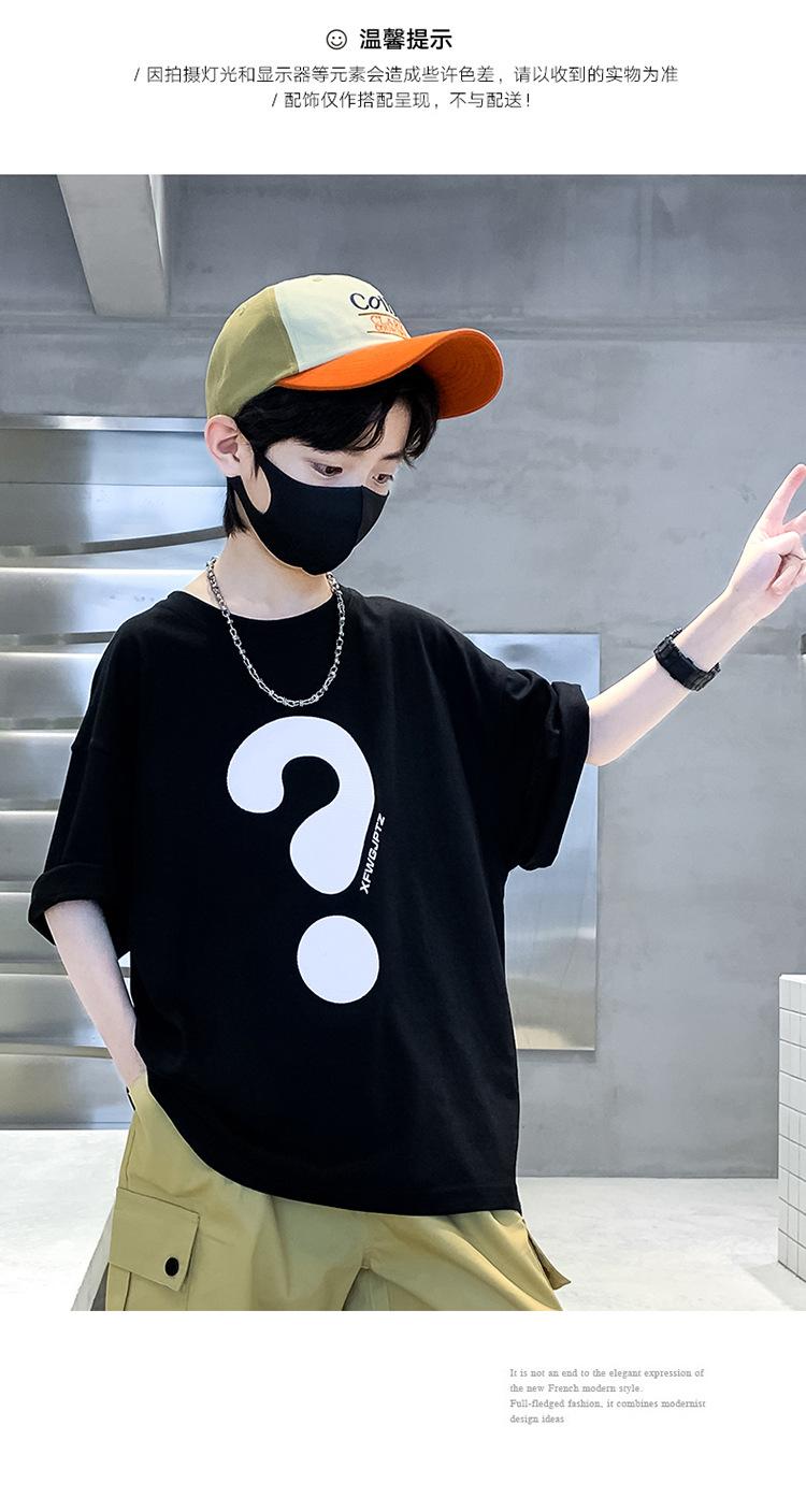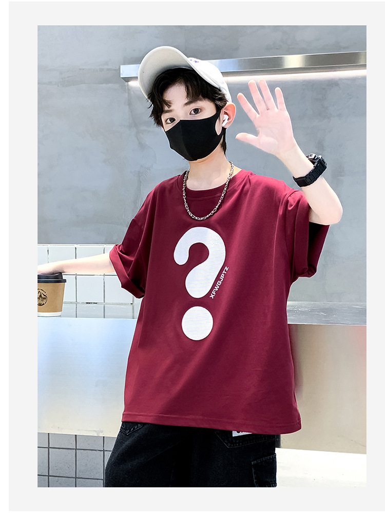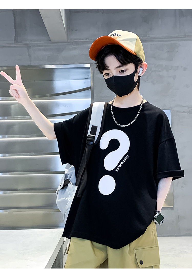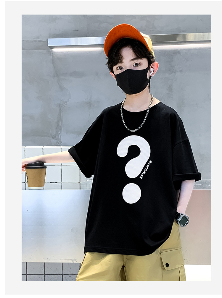 [100% 순면] 200g 소년 여름 새 물음표 인쇄 티셔츠 어린이 반소매 패션