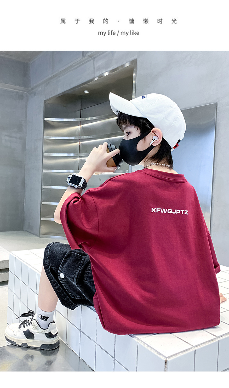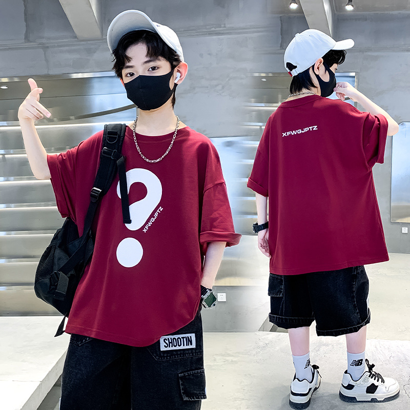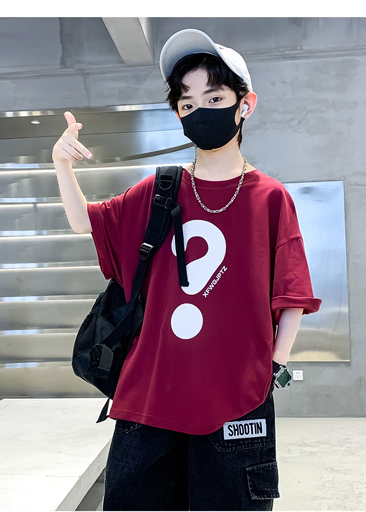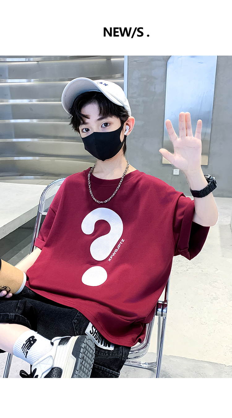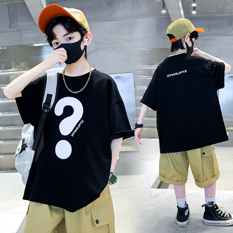 [100% 순면] 200g 소년 여름 새 물음표 인쇄 티셔츠 어린이 반소매 패션