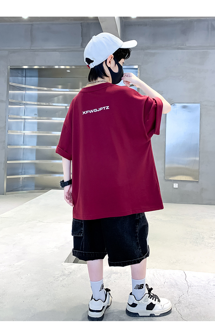 [100% 순면] 200g 소년 여름 새 물음표 인쇄 티셔츠 어린이 반소매 패션스토어 가기