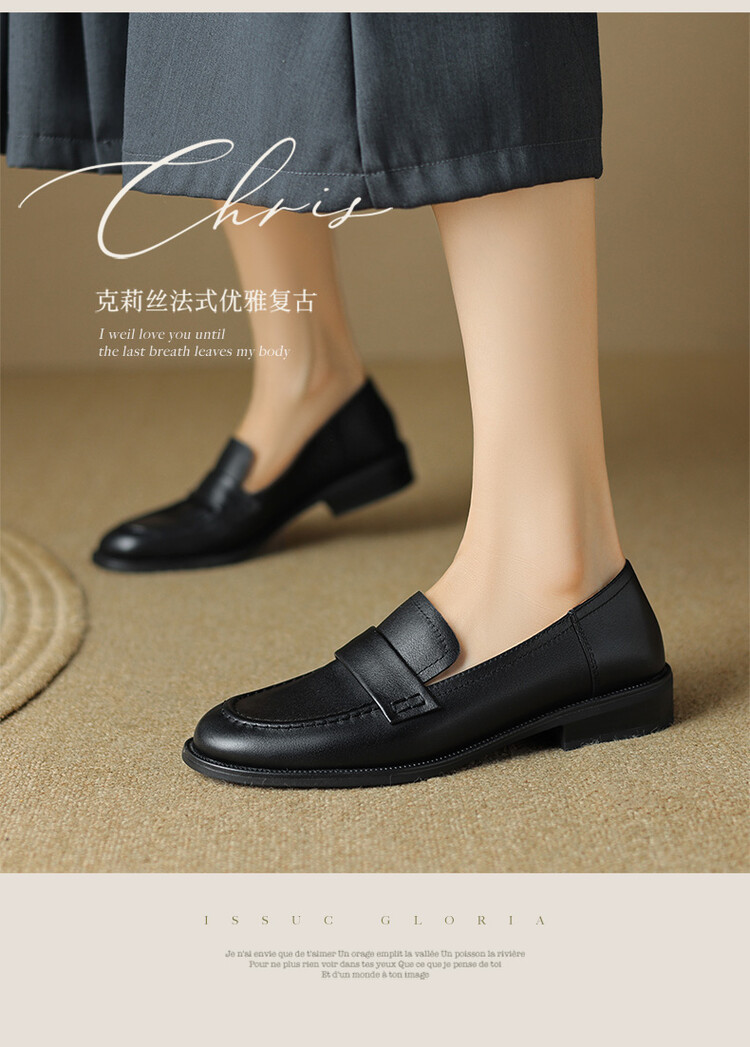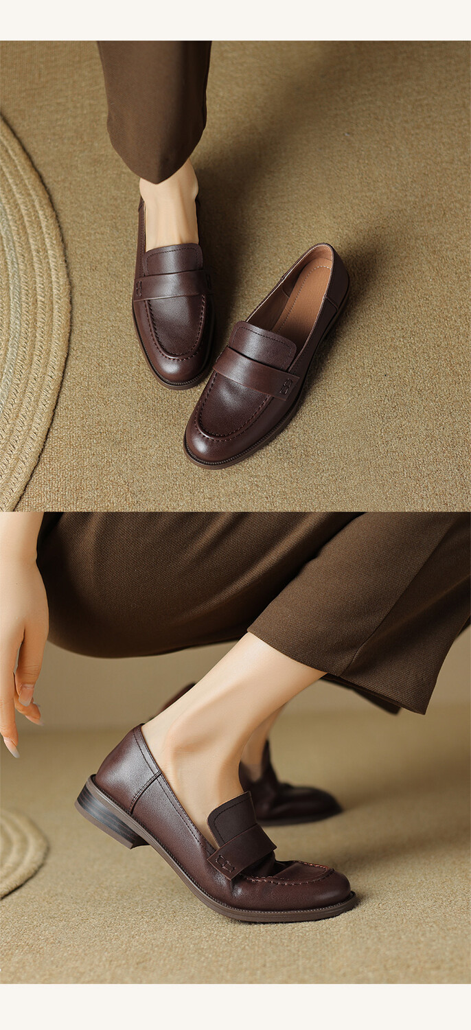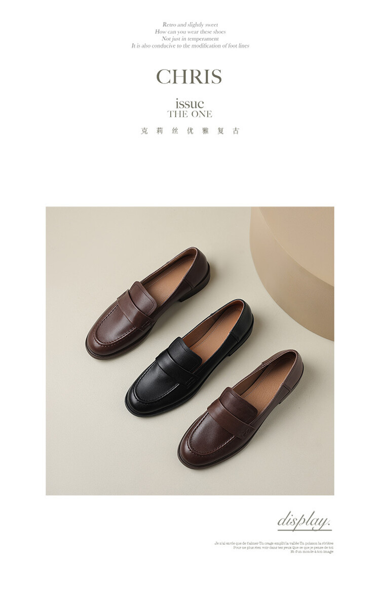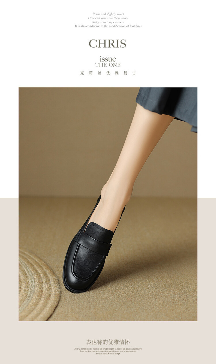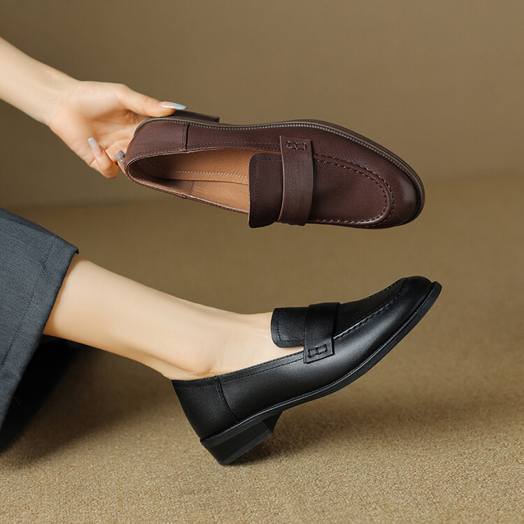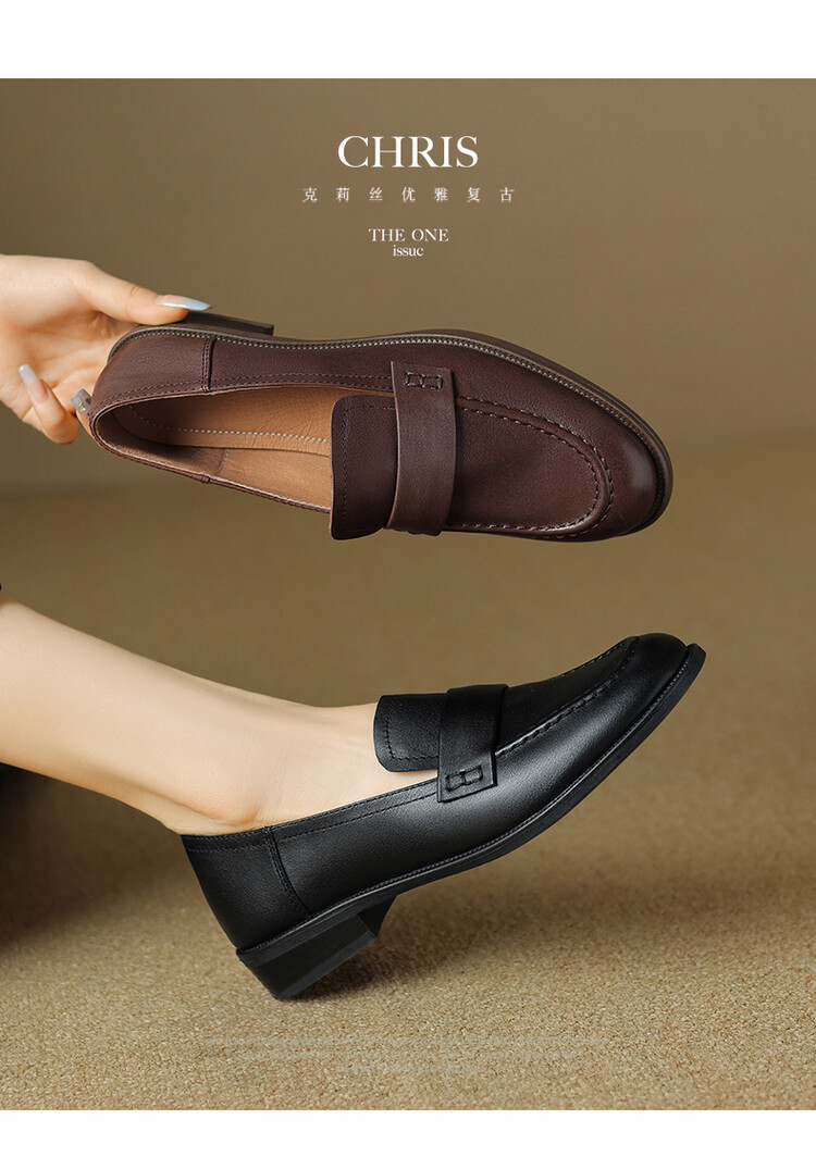 봄과 가을 새로운 패션 부드러운 바닥 로퍼 여성 영국 스타일 2024 새로운 라운드 토 청키 힐 캐주얼 가죽 신발 단층 신발스토어 가기