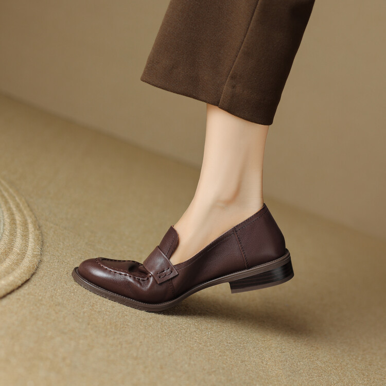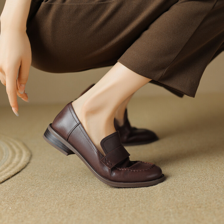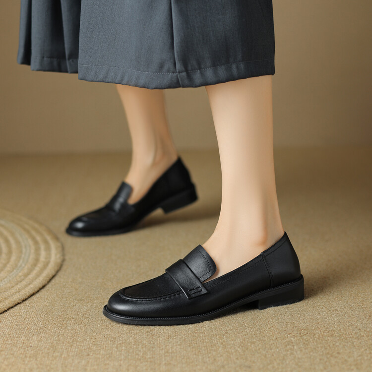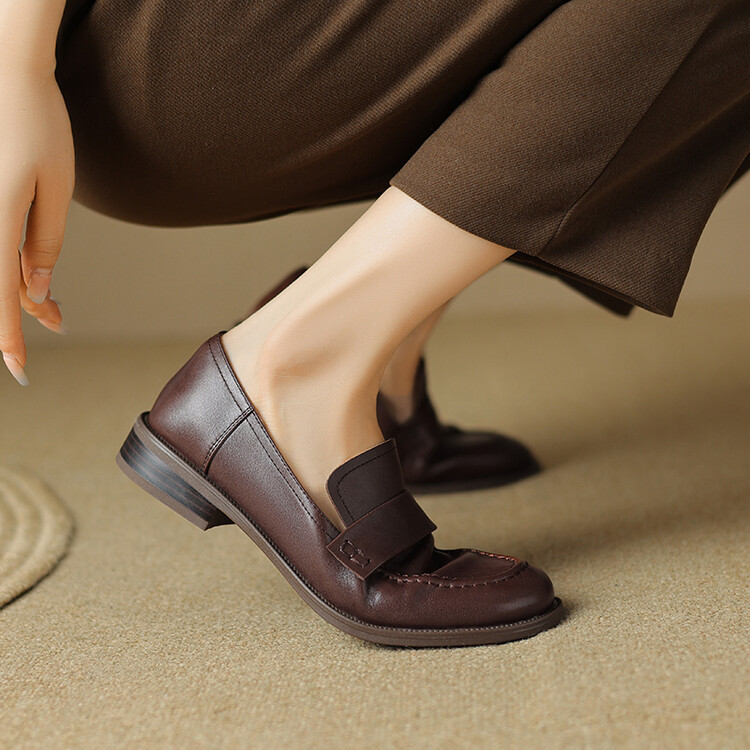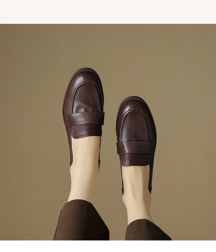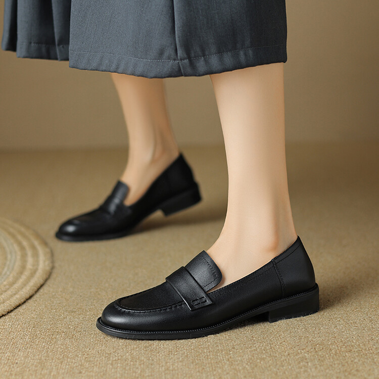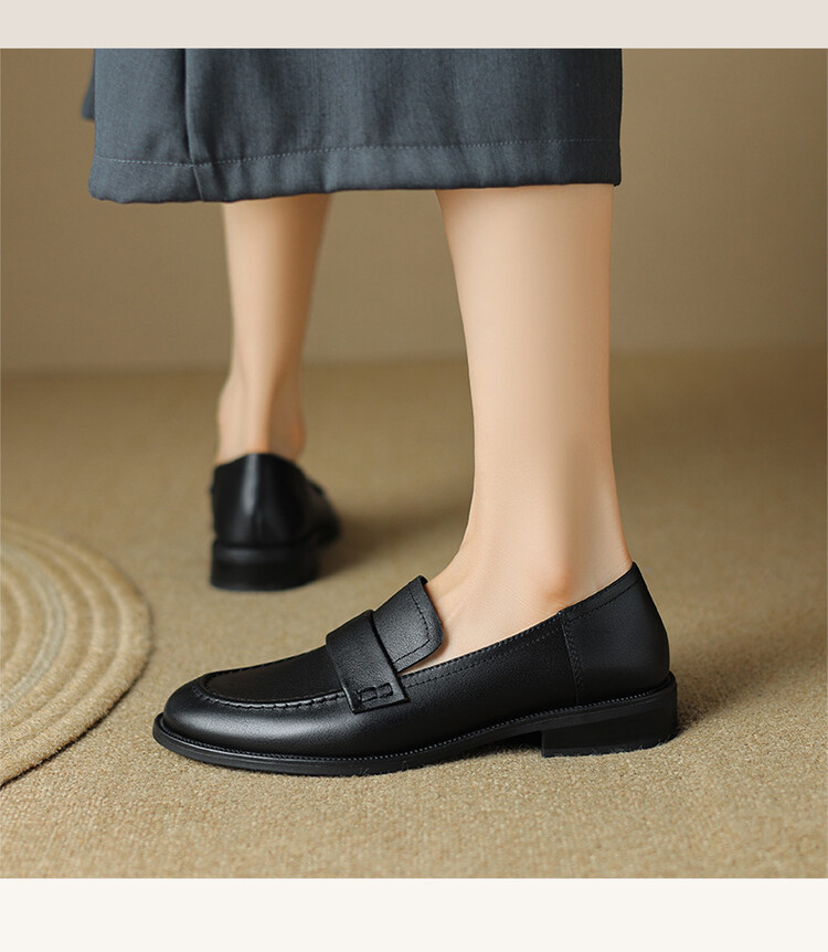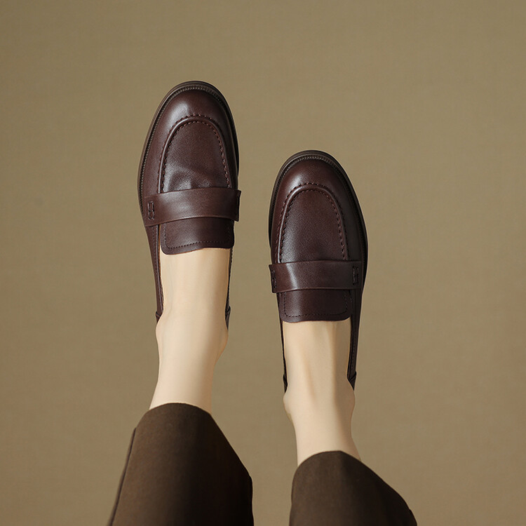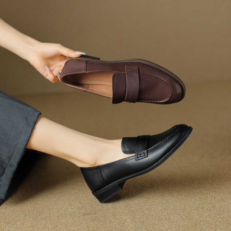 봄과 가을 새로운 패션 부드러운 바닥 로퍼 여성 영국 스타일 2024 새로운 라운드 토 청키 힐 캐주얼 가죽 신발 단층 신발스토어 가기