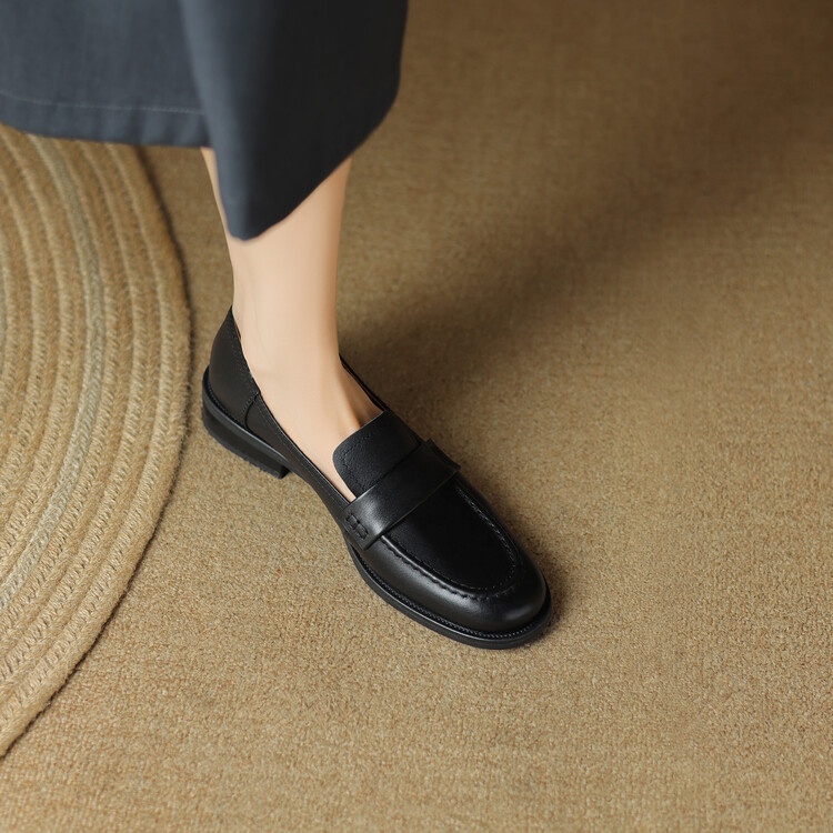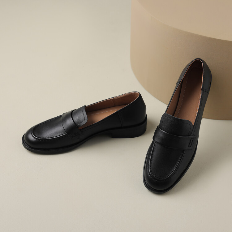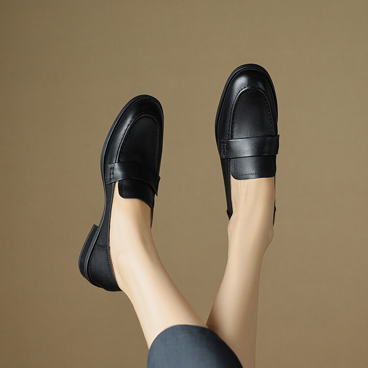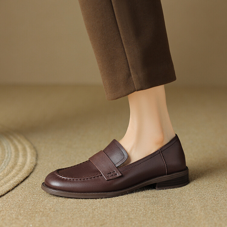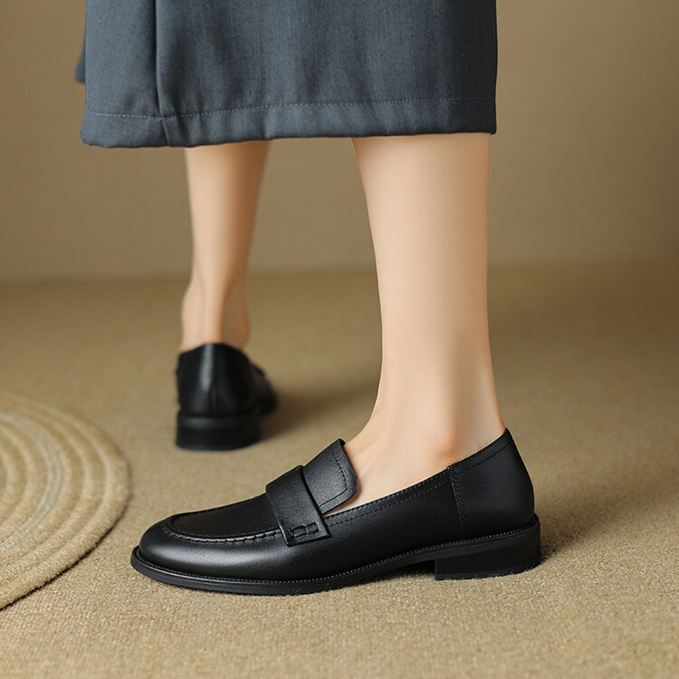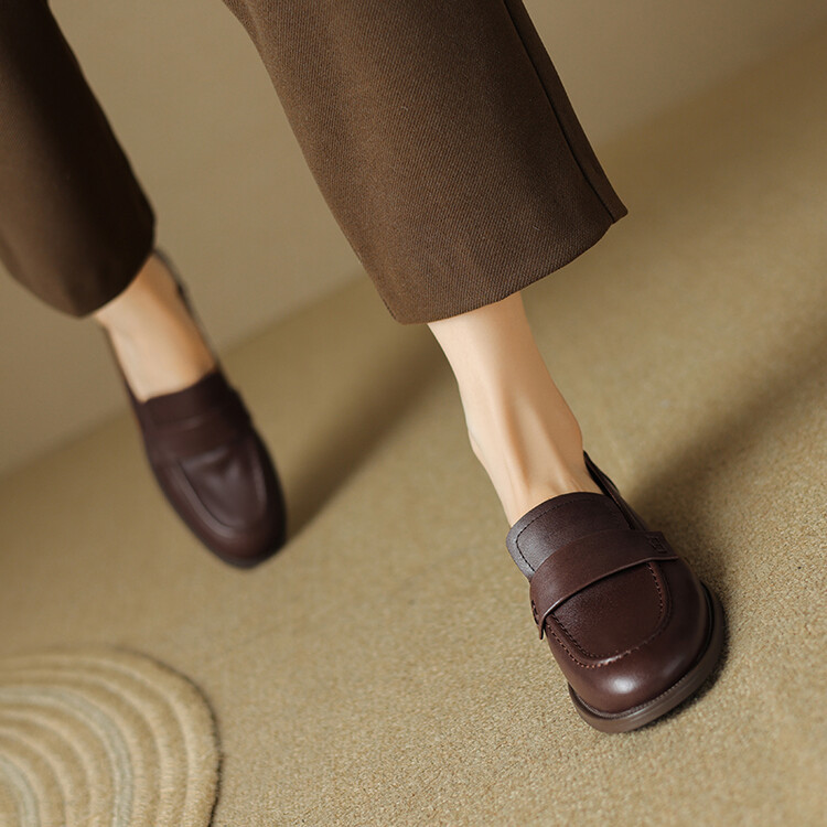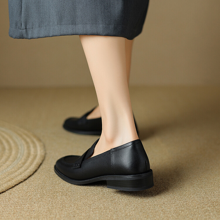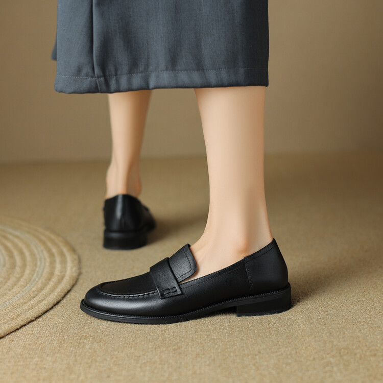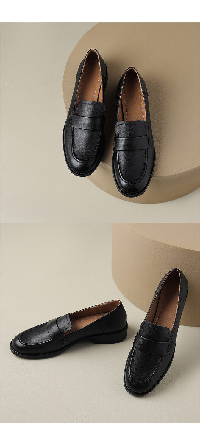 봄과 가을 새로운 패션 부드러운 바닥 로퍼 여성 영국 스타일 2024 새로운 라운드 토 청키 힐 캐주얼 가죽 신발 단층 신발스토어 가기