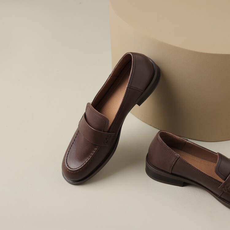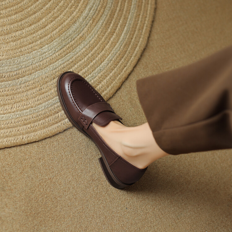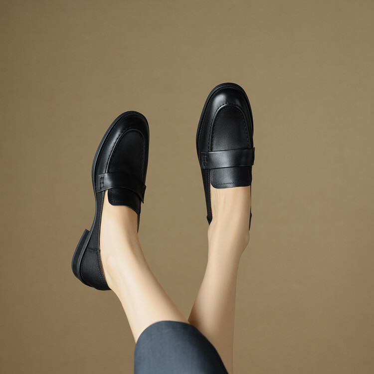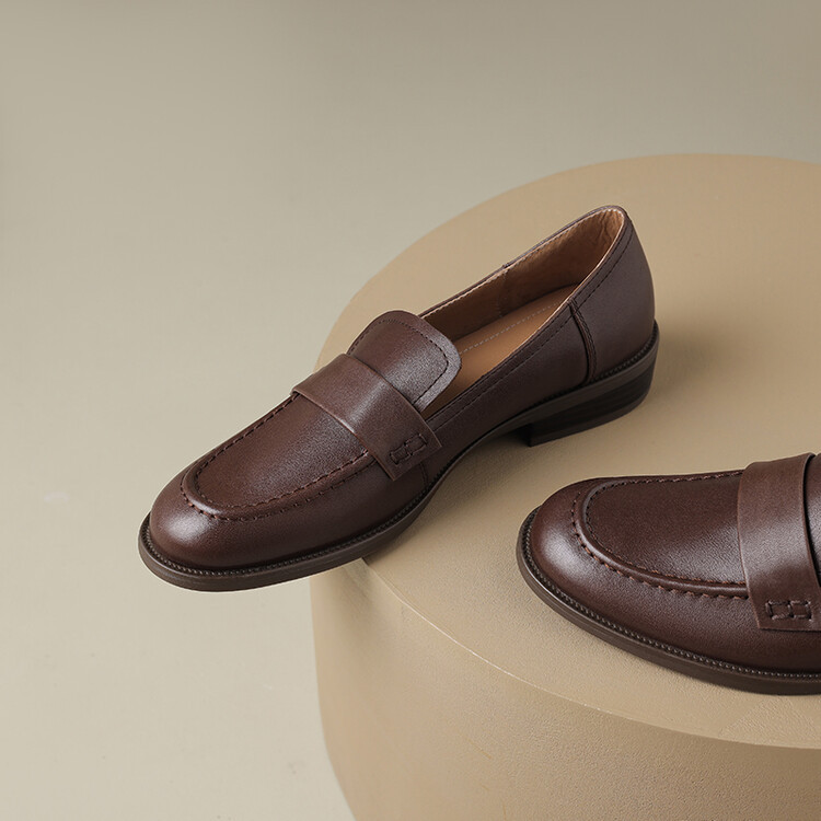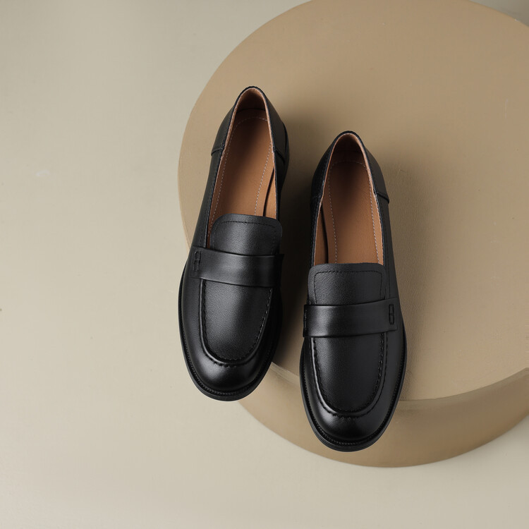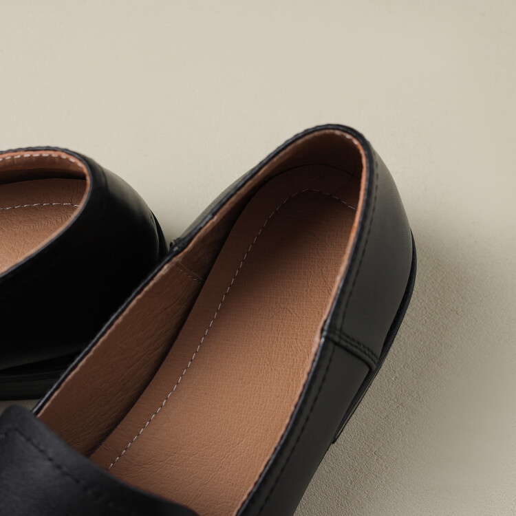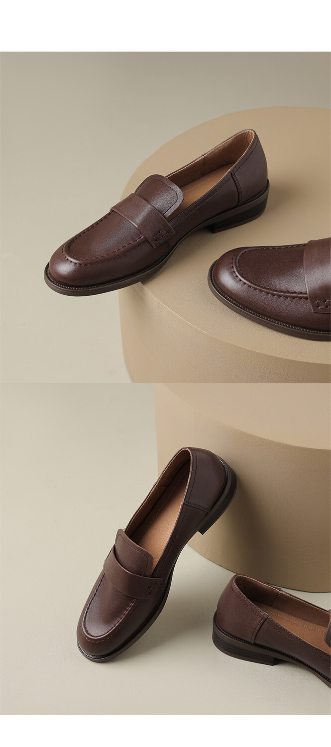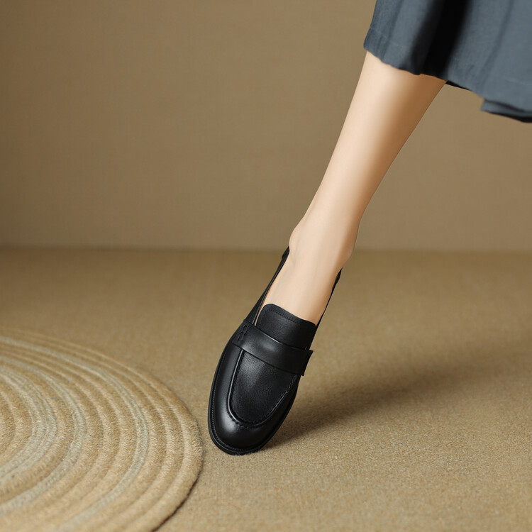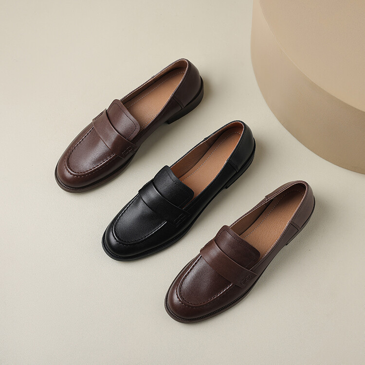 봄과 가을 새로운 패션 부드러운 바닥 로퍼 여성 영국 스타일 2024 새로운 라운드 토 청키 힐 캐주얼 가죽 신발 단층 신발스토어 가기