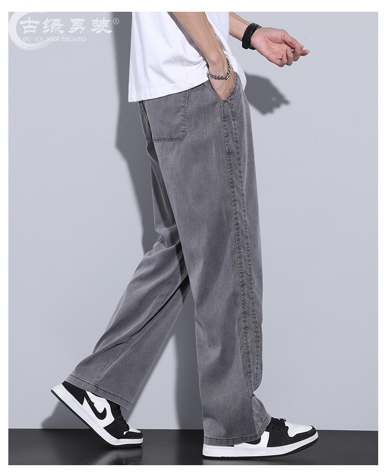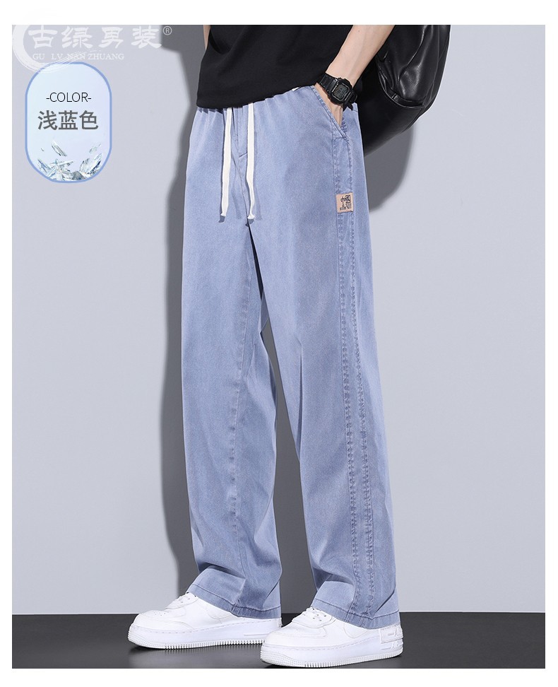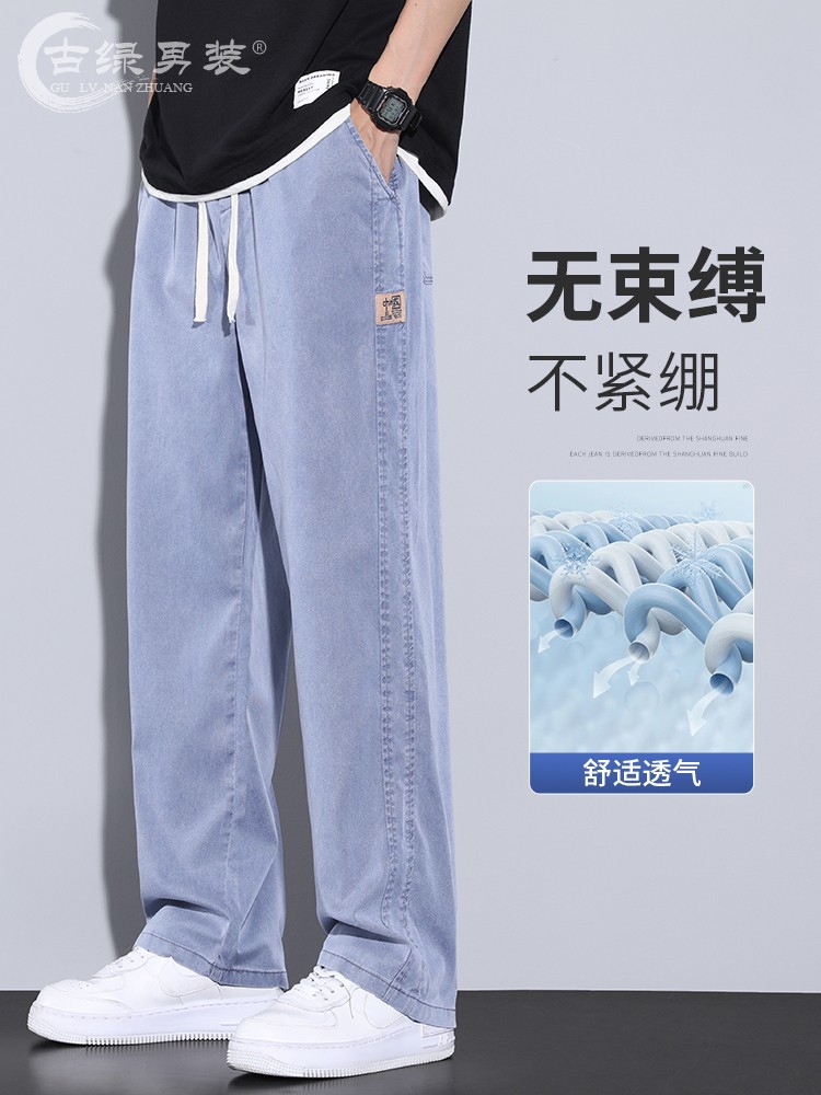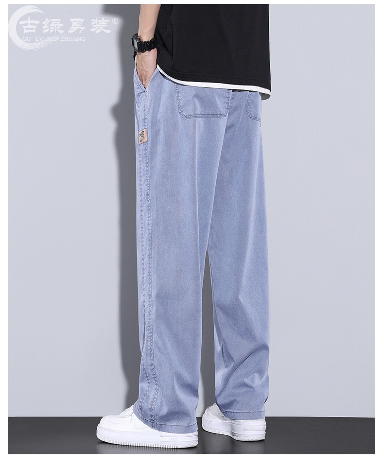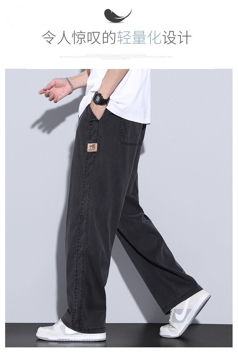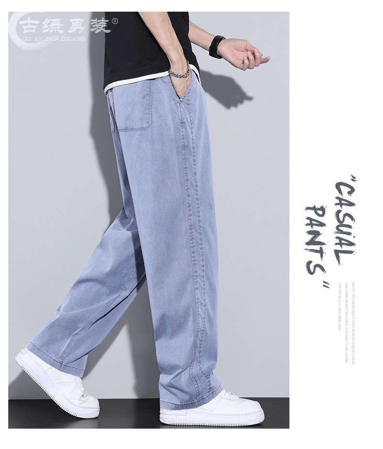 텐셀 청바지 남성 여름 스트레이트 루즈 와이드 레그 바닥 길이 바지 여름 초박형 아이스 실크 캐주얼 바지