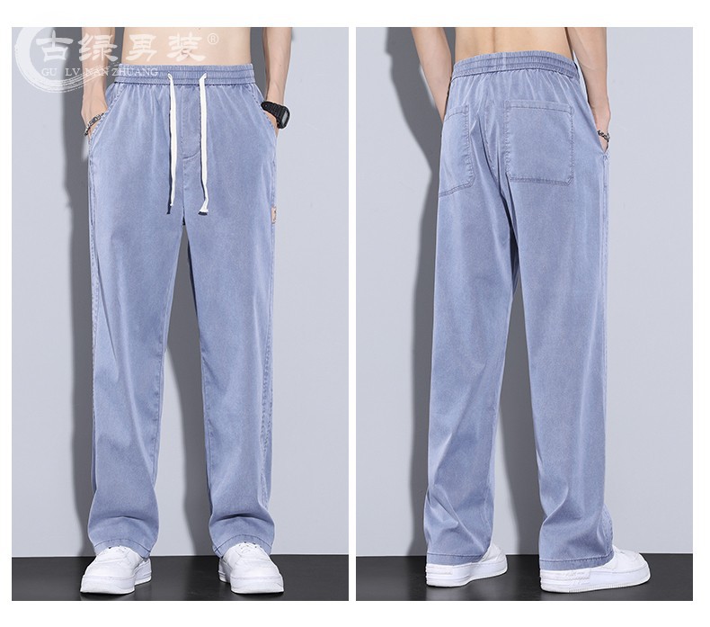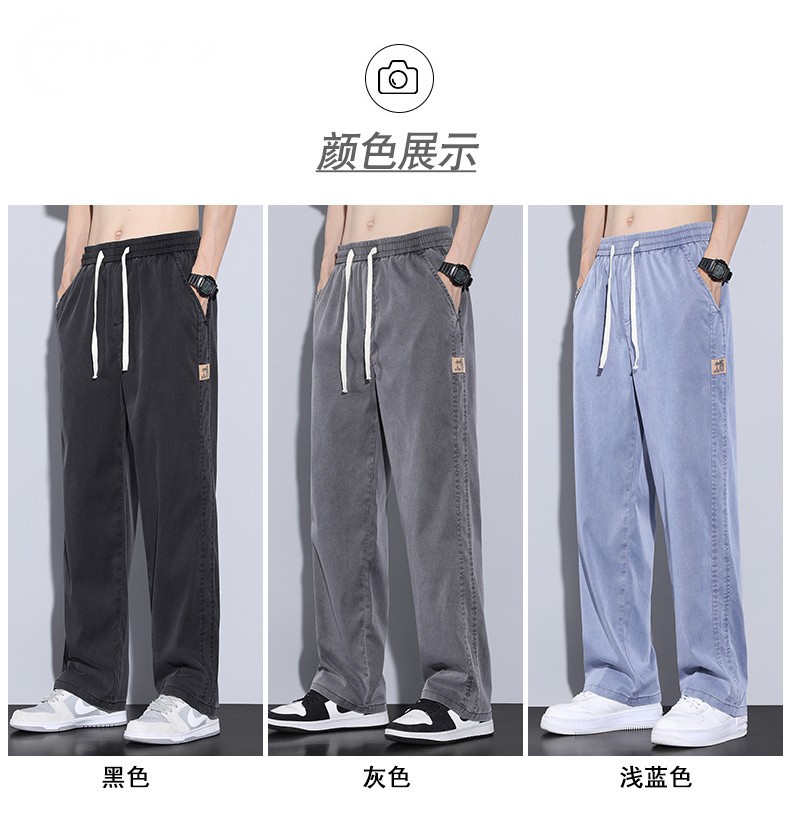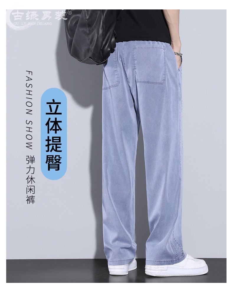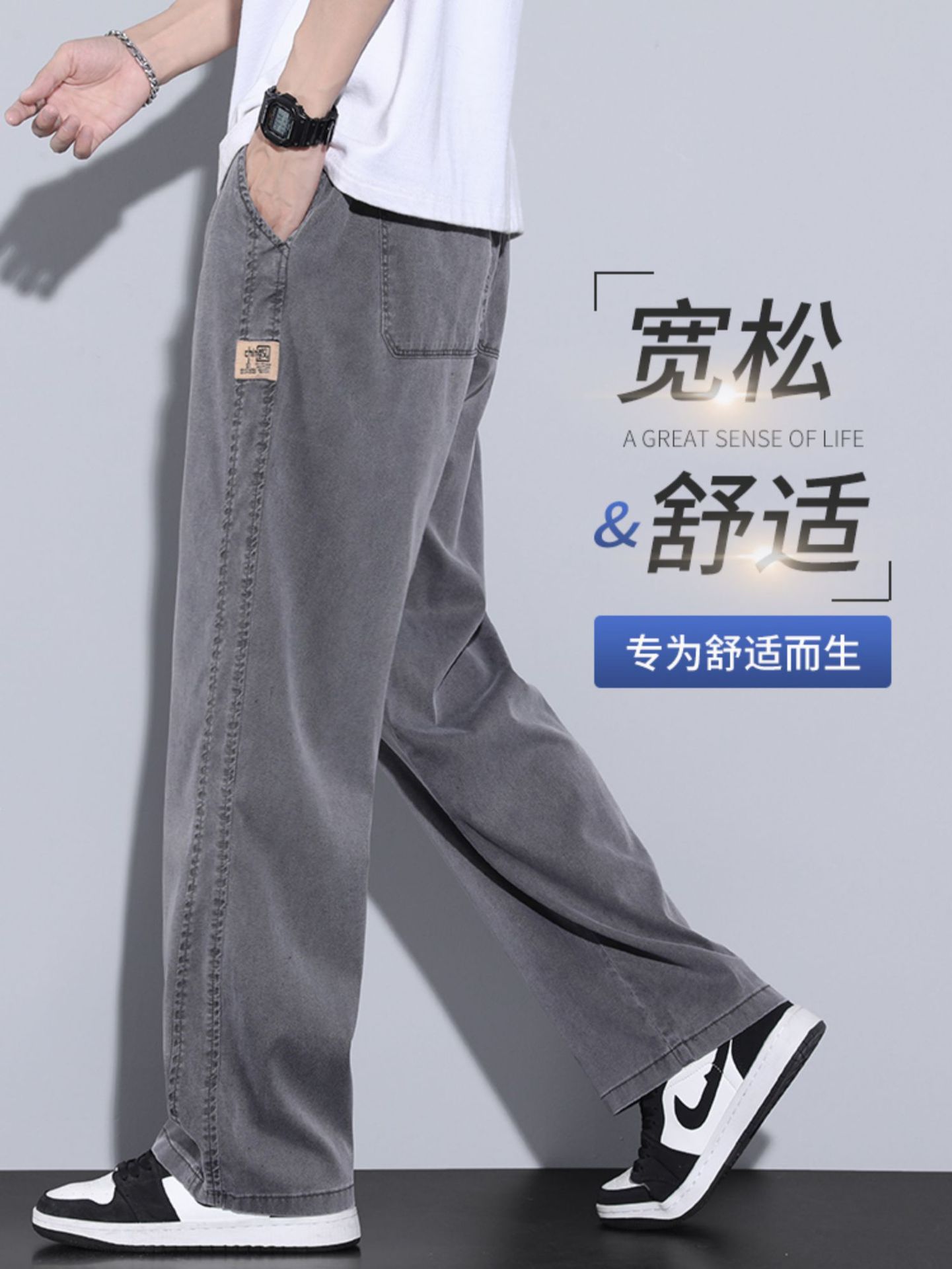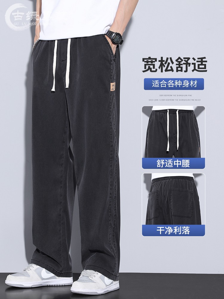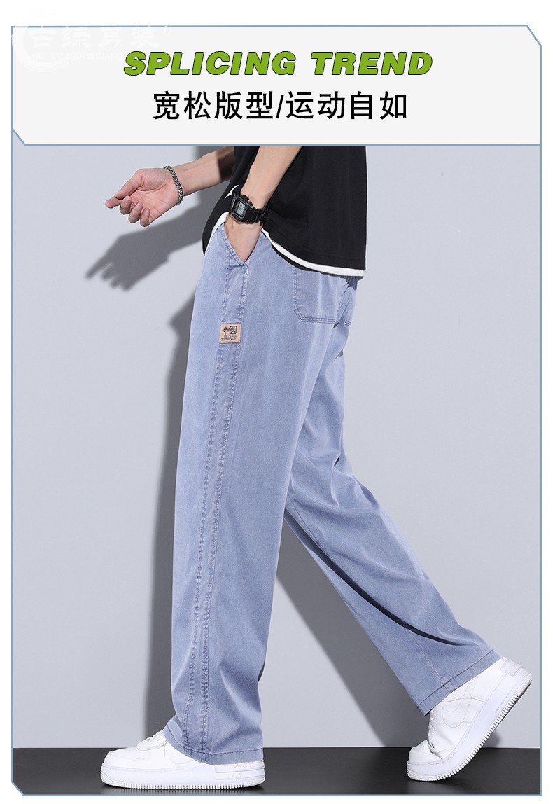 텐셀 청바지 남성 여름 스트레이트 루즈 와이드 레그 바닥 길이 바지 여름 초박형 아이스 실크 캐주얼 바지