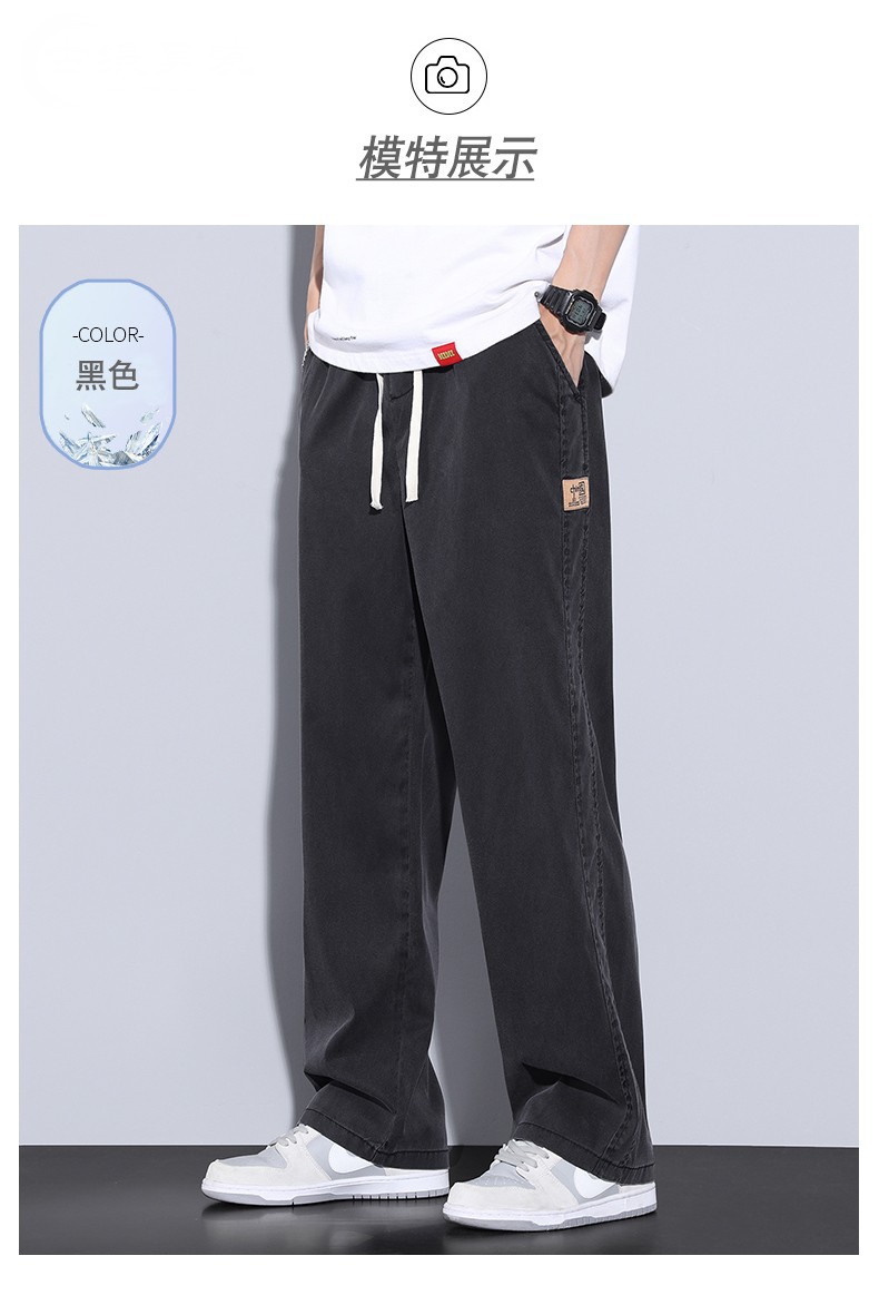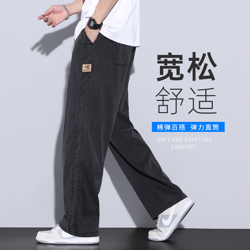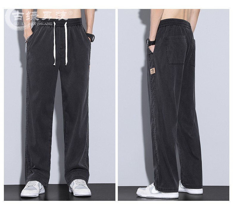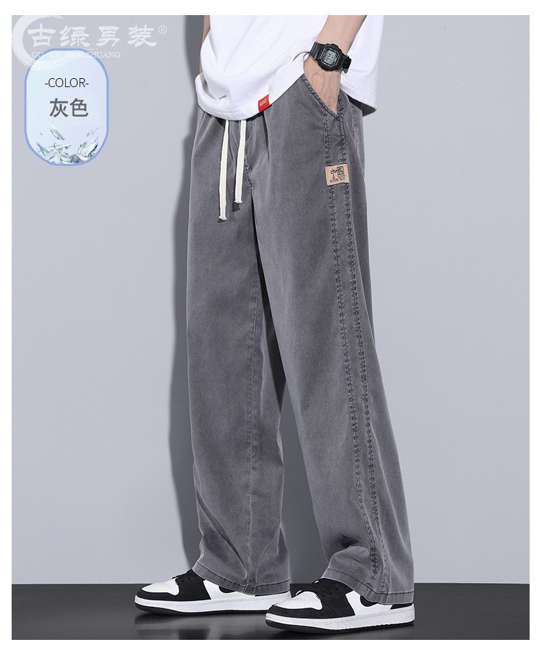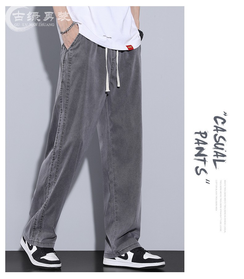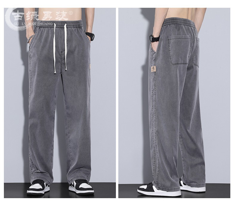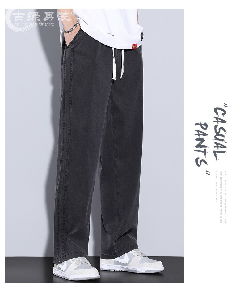 텐셀 청바지 남성 여름 스트레이트 루즈 와이드 레그 바닥 길이 바지 여름 초박형 아이스 실크 캐주얼 바지