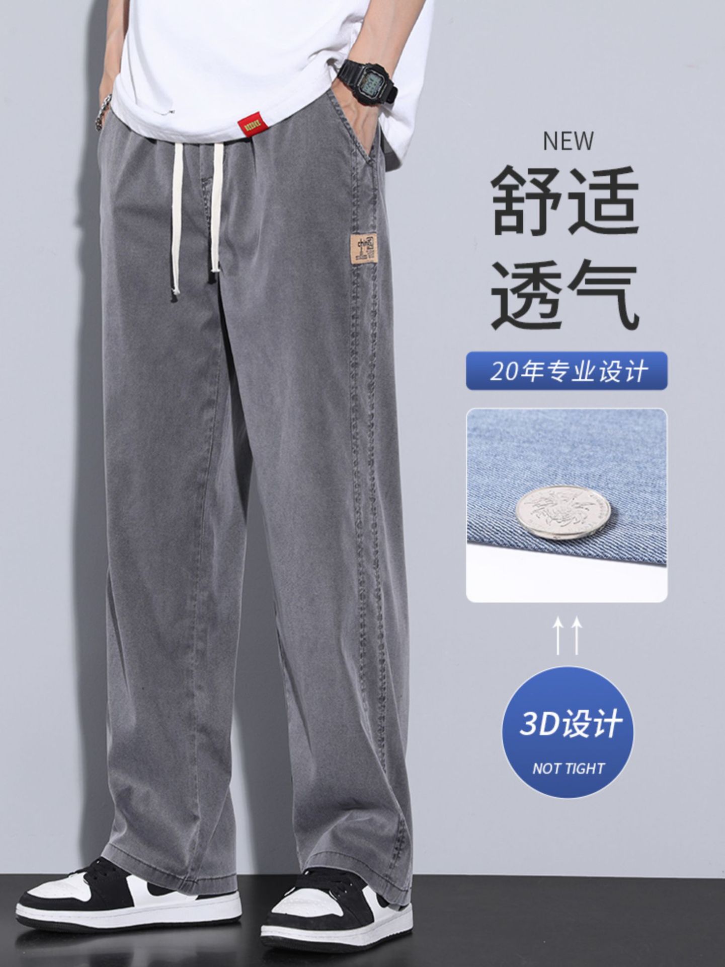 텐셀 청바지 남성 여름 스트레이트 루즈 와이드 레그 바닥 길이 바지 여름 초박형 아이스 실크 캐주얼 바지스토어 가기