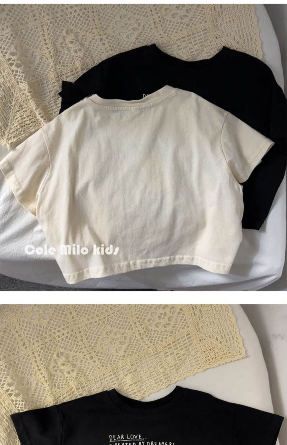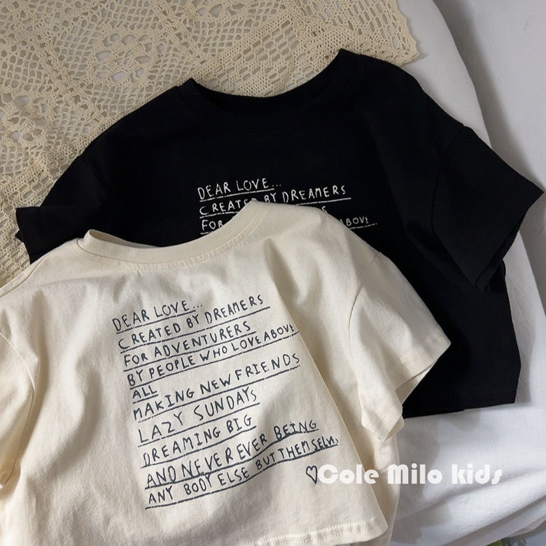 여름 어린이 코튼 반팔 티셔츠 둥근 목 소년 소녀 서양식 프린트 바닥 셔츠 아기 반소매 한국식 트렌디 T