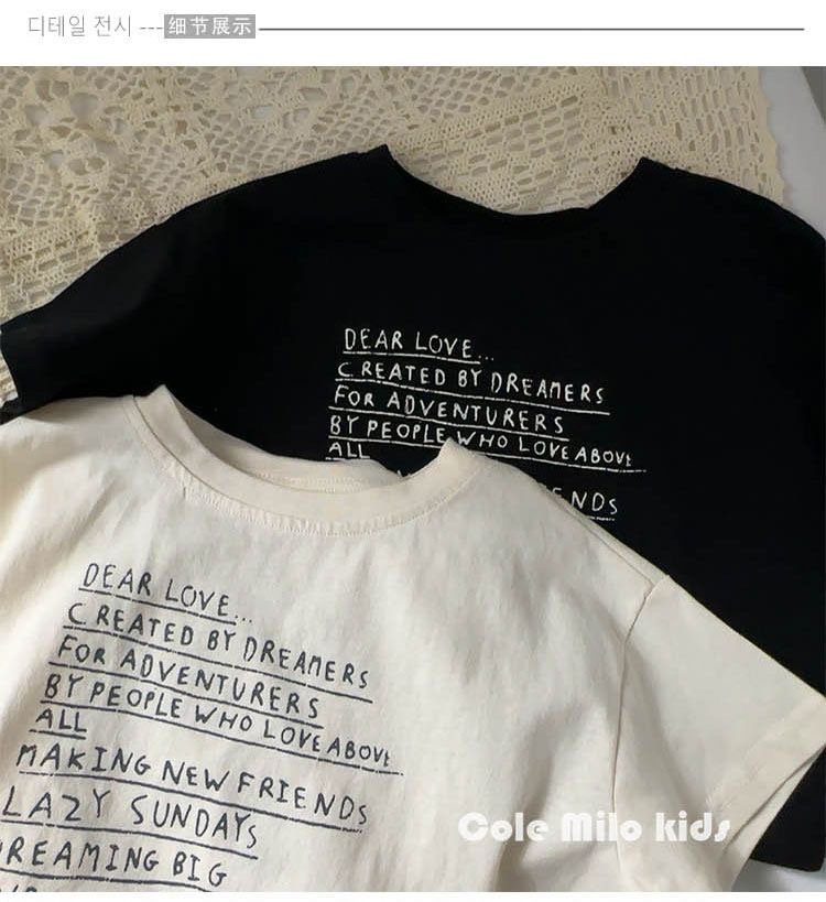 여름 어린이 코튼 반팔 티셔츠 둥근 목 소년 소녀 서양식 프린트 바닥 셔츠 아기 반소매 한국식 트렌디 T스토어 가기
