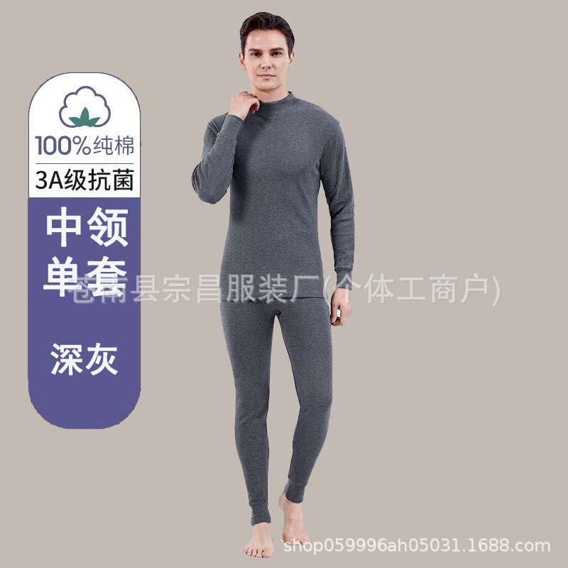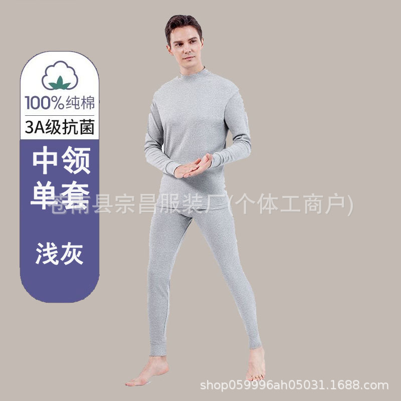 100% 코튼 남성 라운드 넥 가을 옷과 가을 바지 하이 웨이스트 얇은 양복 바닥 중간 칼라 열 속옷 도매 대리점스토어 가기