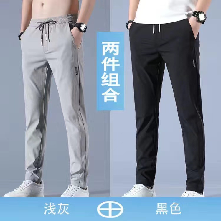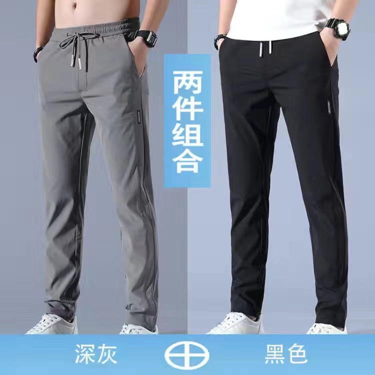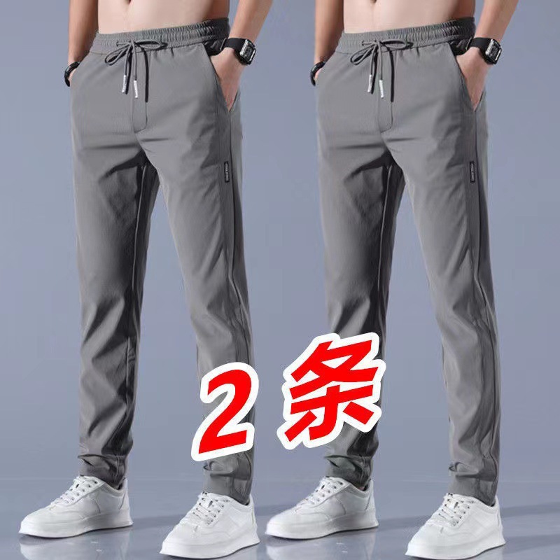 여름 얇은 스포츠 바지 빠른 건조 바지 남자 아이스 실크 봄과 가을 야외 느슨한 플러스 사이즈 작업복 등산 캐주얼 바지