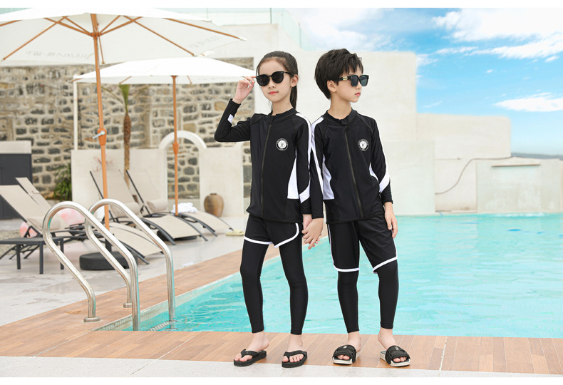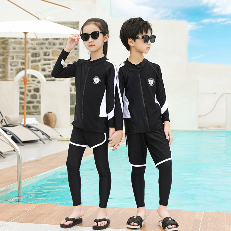 수영복 중형 및 대형 소년 소녀 긴팔 바지 새로운 태양 보호 빠른 건조 스플릿 다이빙 세트 수영복
